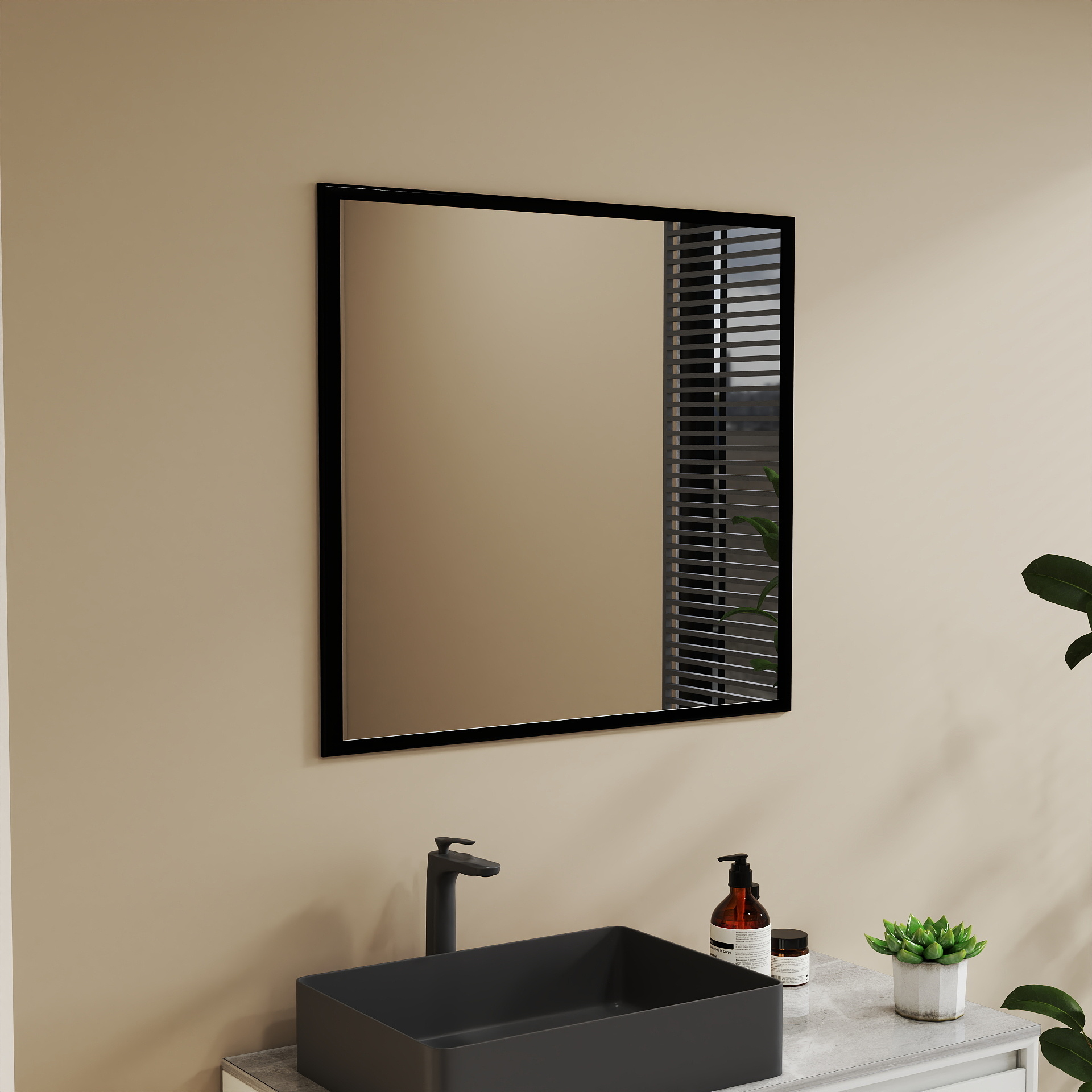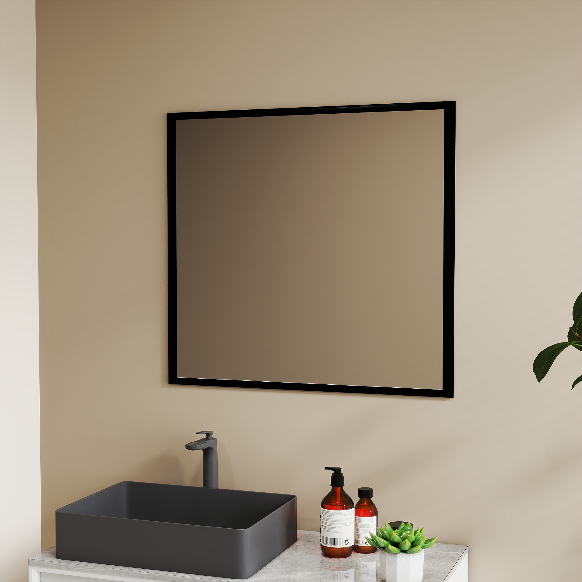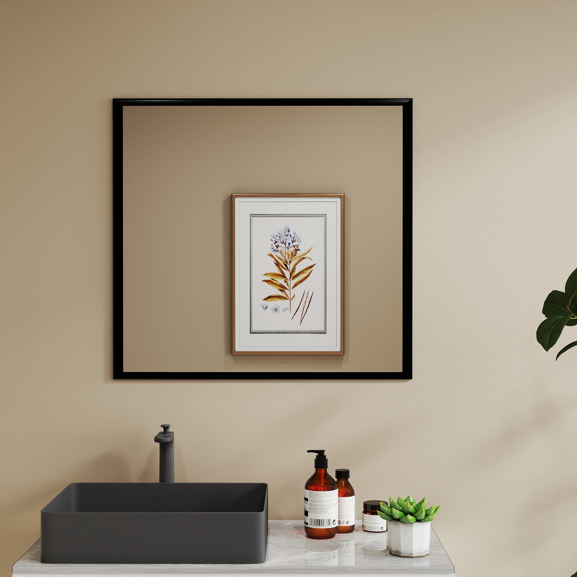 32-inch square black aluminum mirror frame can be used in the bathroom and hallway, which is convenient for wall hanging.