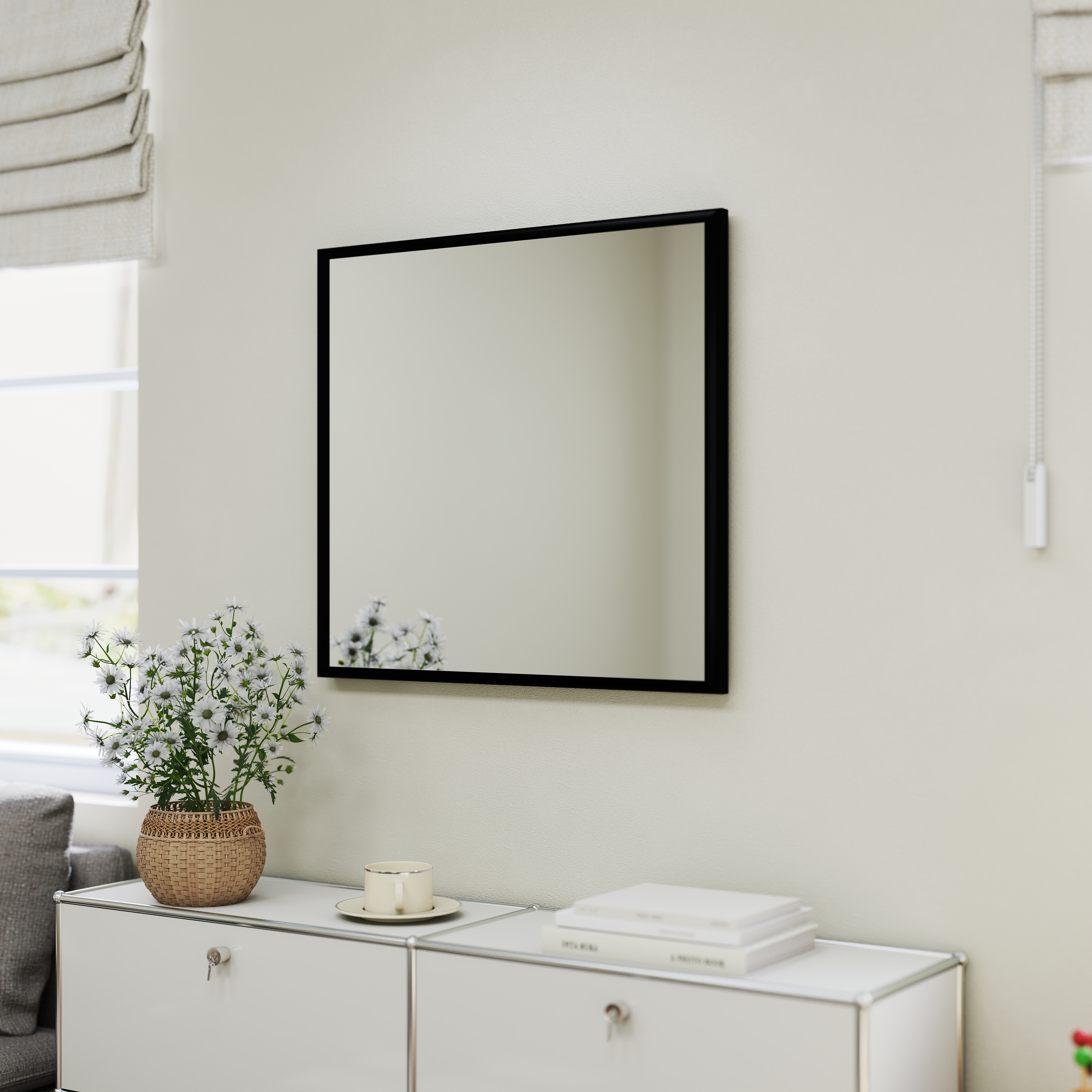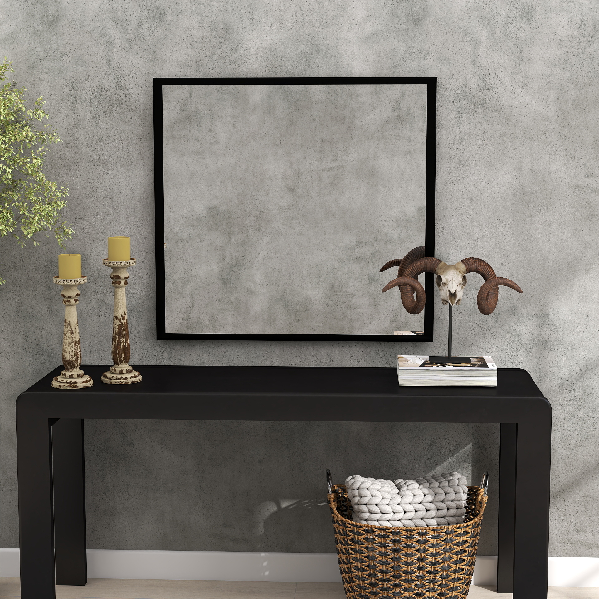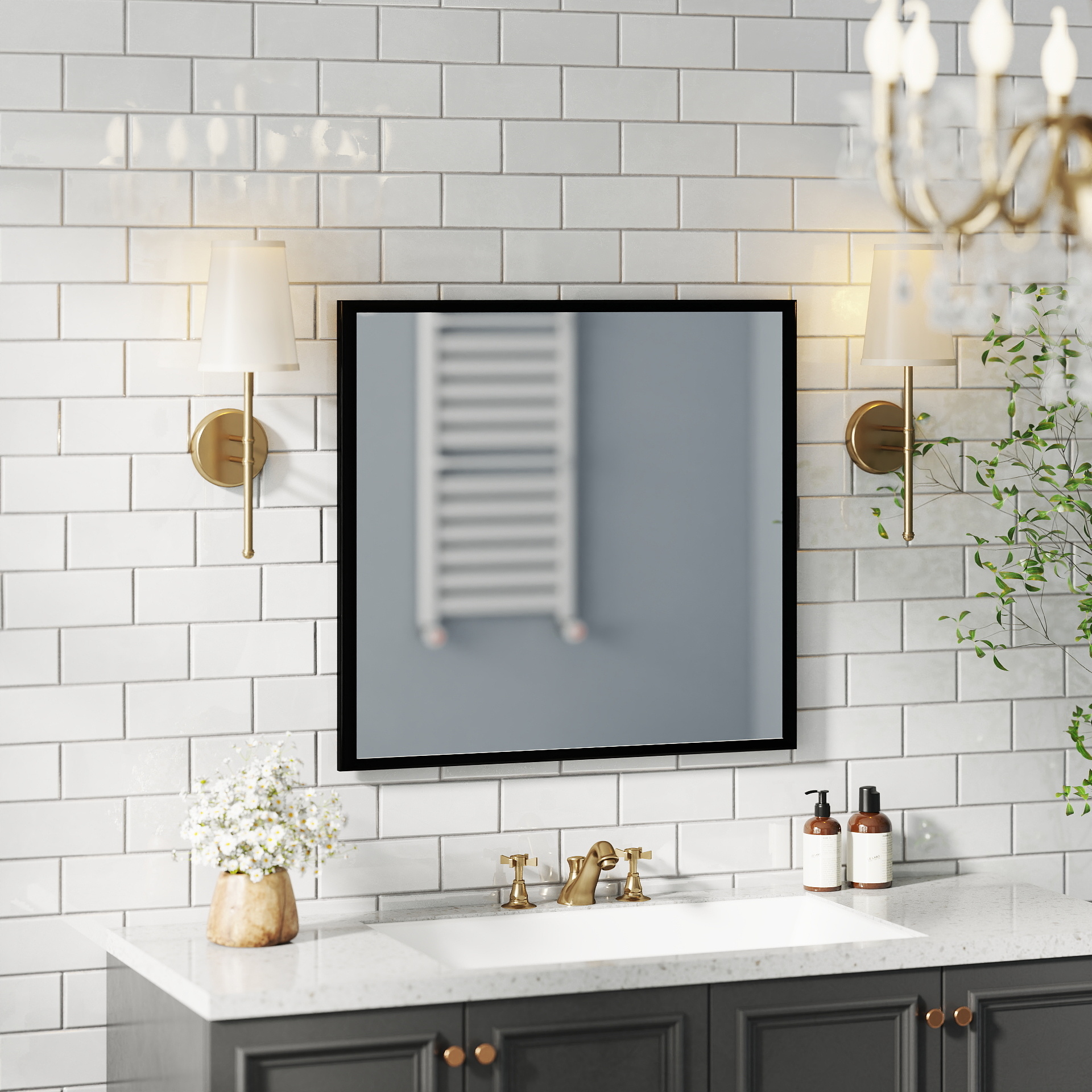 32-inch square black aluminum mirror frame can be used in the bathroom and hallway, which is convenient for wall hanging.