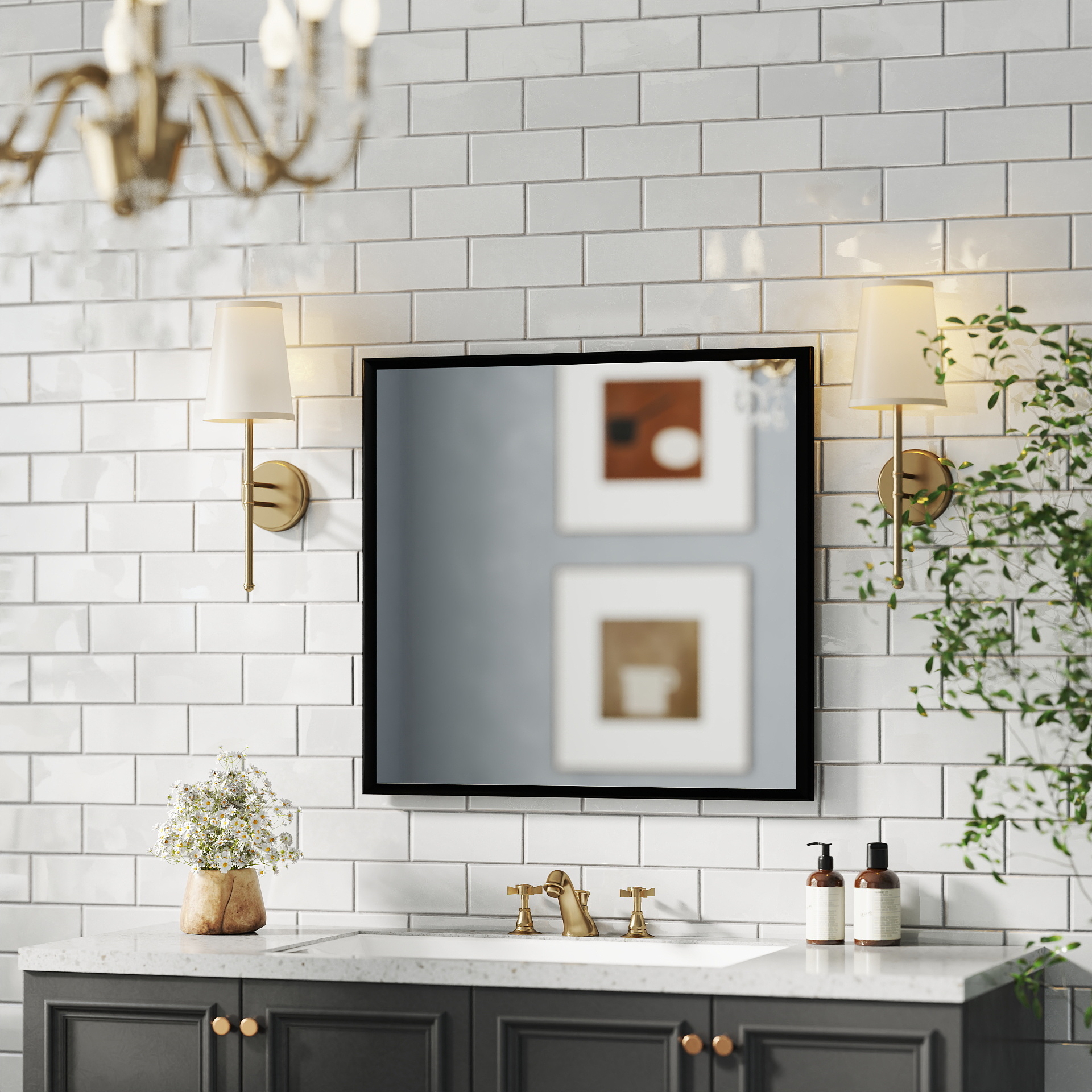 A-HOME 32-inch square black aluminum mirror frame can be used in the bathroom and hallway, which is convenient for wall hanging. Designed to provide practical task lighting around a vanity or bathroom mirror while supporting everyday grooming routines. Material: Aluminium. Product dimensions and weight: length 35, width 33, height 3.1, weight 11.1.