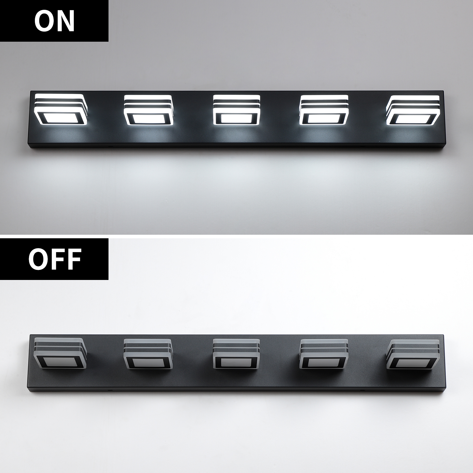 32" Modern Black 5-Light LED Vanity Light, Square Acrylic Lampshades Wall Mount Fixture for Bathroom, Mirror Lighting