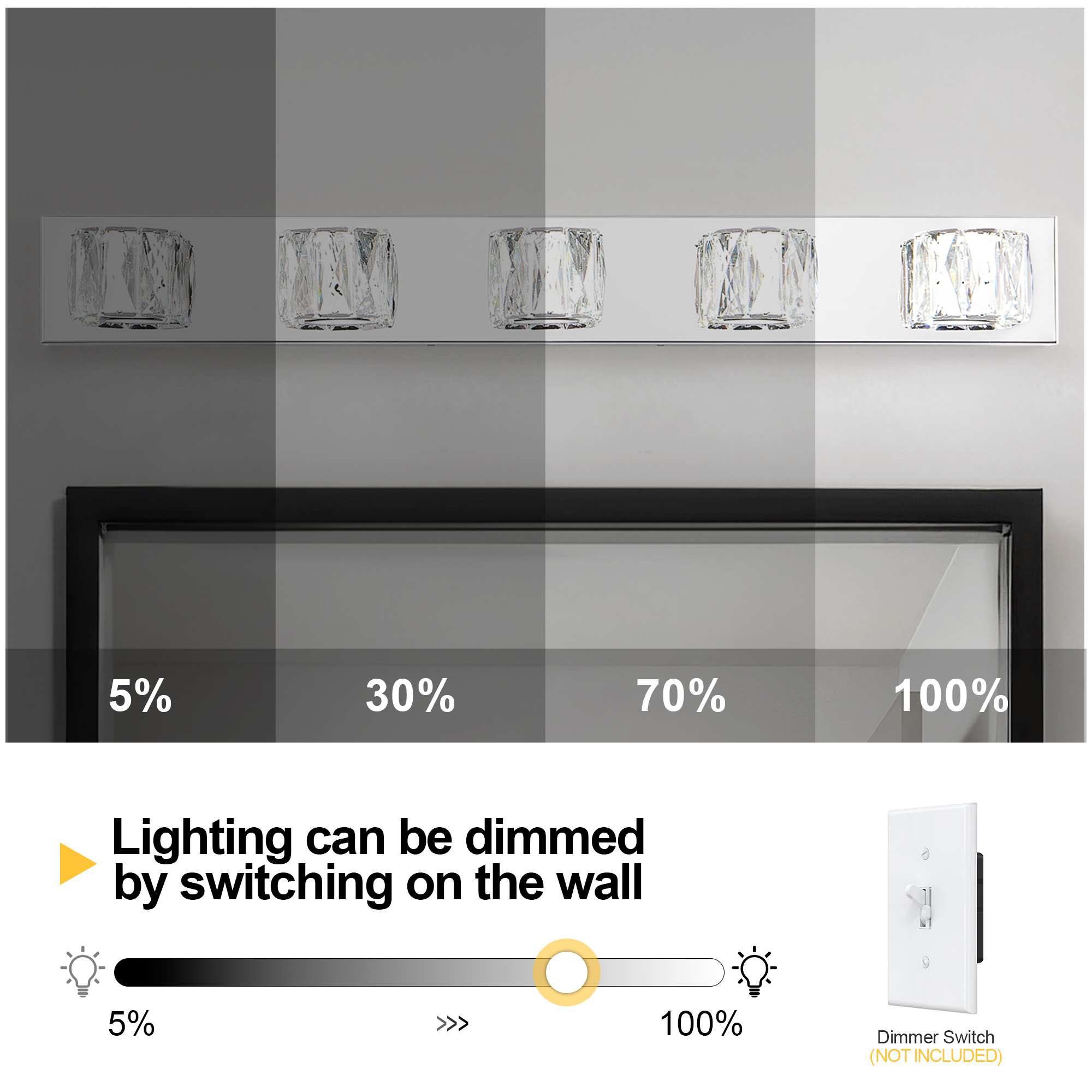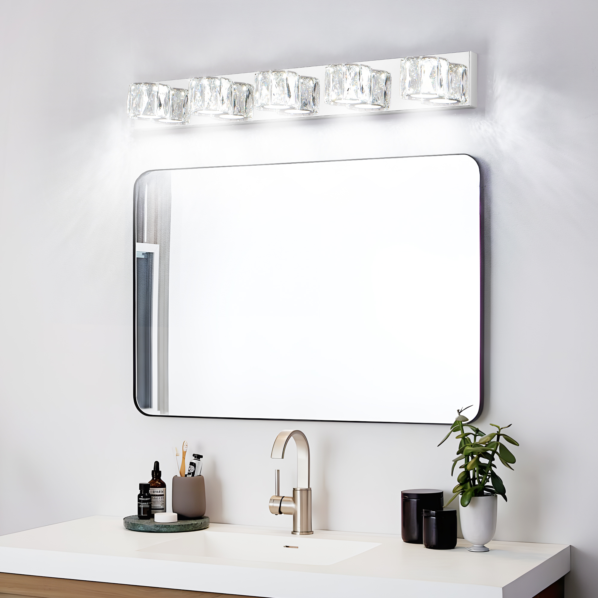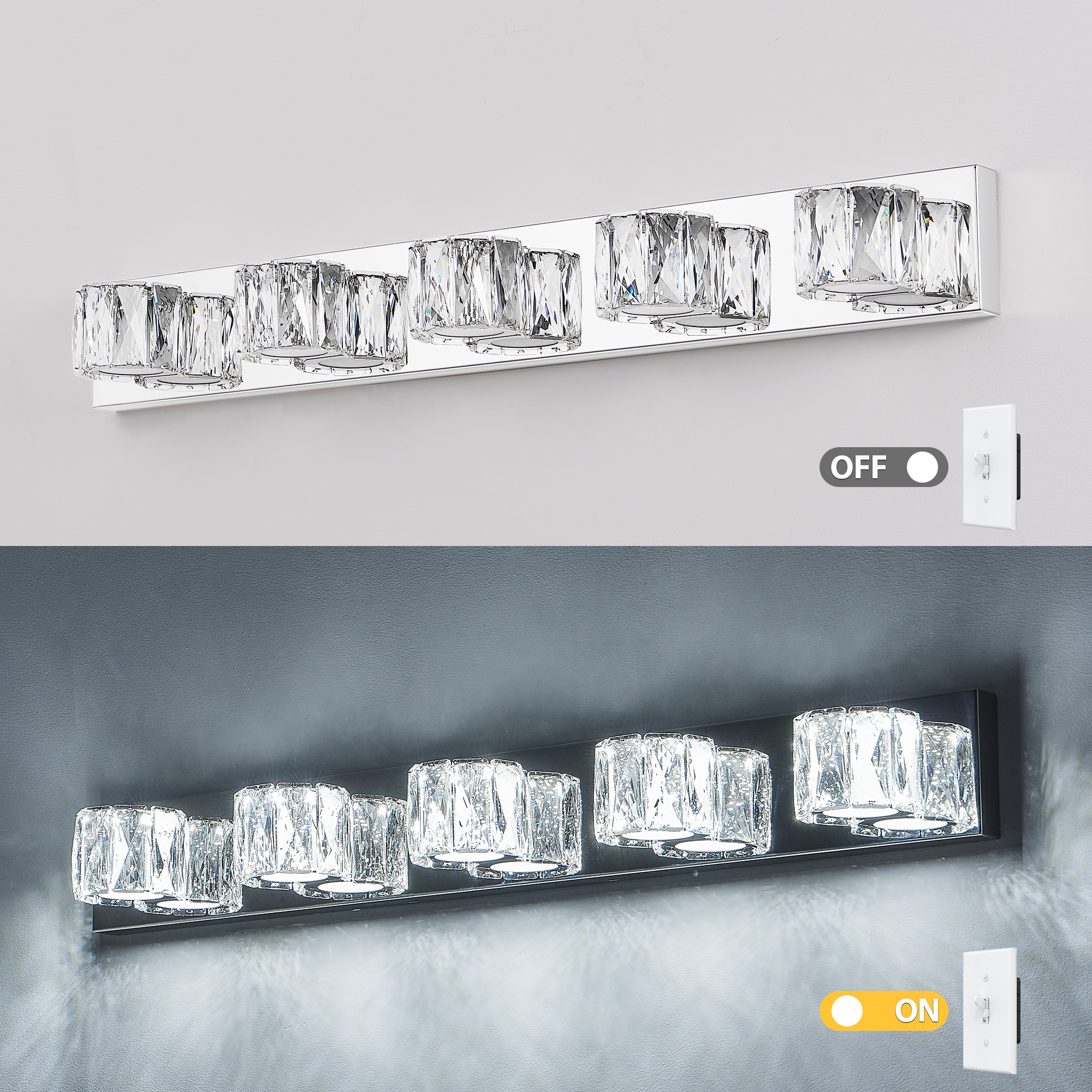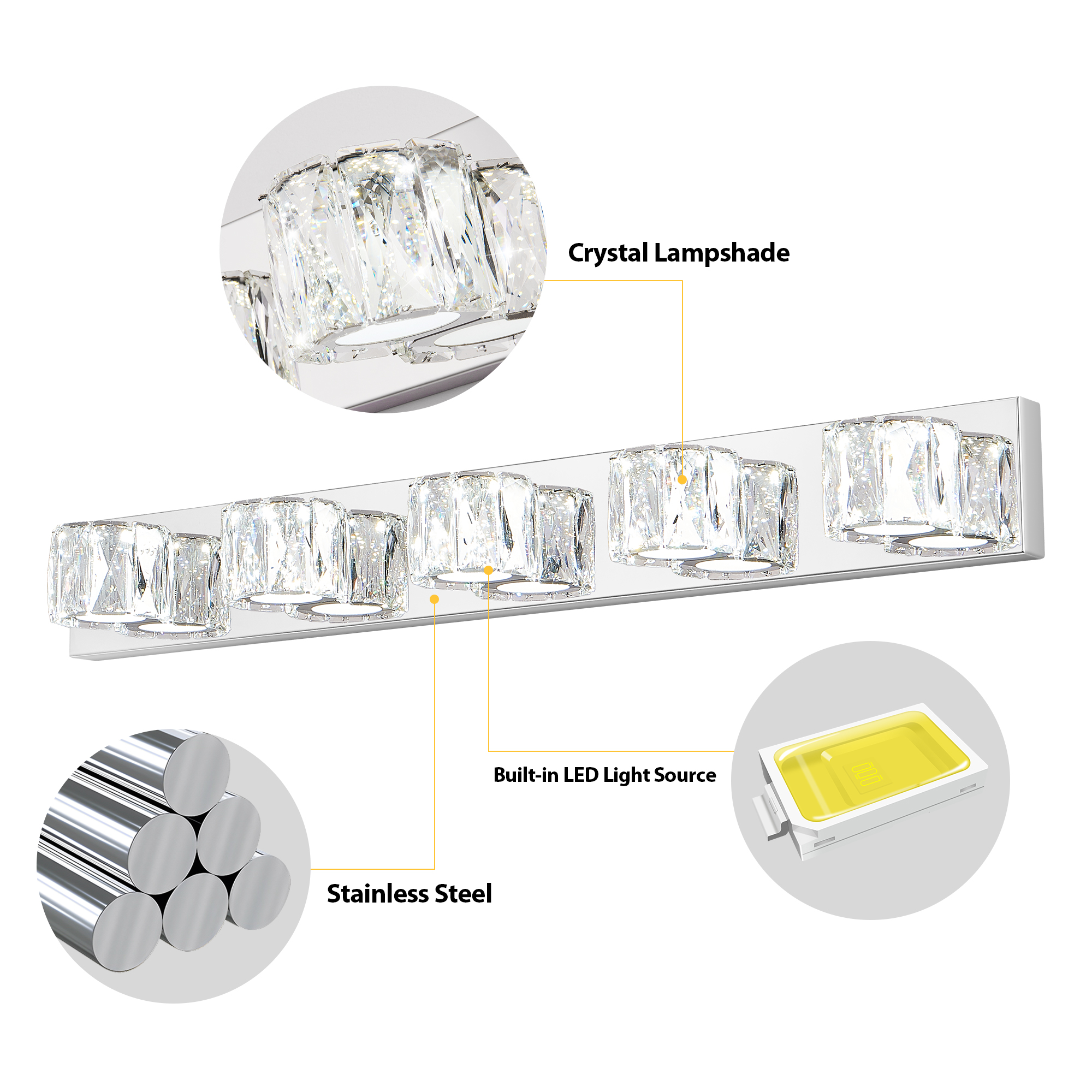 NEOSGO 35" Modern Crystal 5-Light LED Wall Sconce – Elegant Chrome Bathroom Vanity Light with Clear Crystal Shades for Bathroom, Bedroom, or Hallway is intended to provide focused wall lighting while also adding decorative detail to the surrounding space. This style is especially useful near mirrors, over bathroom vanities, along hallways, in bedrooms, or in accent areas that benefit from directed light rather than relying only on ceiling fixtures. Based on the product presentation, it offers a practical mix of daily illumination and visual styling, which helps the room feel more complete and intentionally designed. It is a good option for customers who want better task lighting together with a more refined finished look on the wall. Overall size is approximately 36.61 x 6.69 x 6.69 inches with a listed weight of 8. The current listing includes 12 product images, which help clarify the product shape, proportions, and visual placement in a real room setting.
