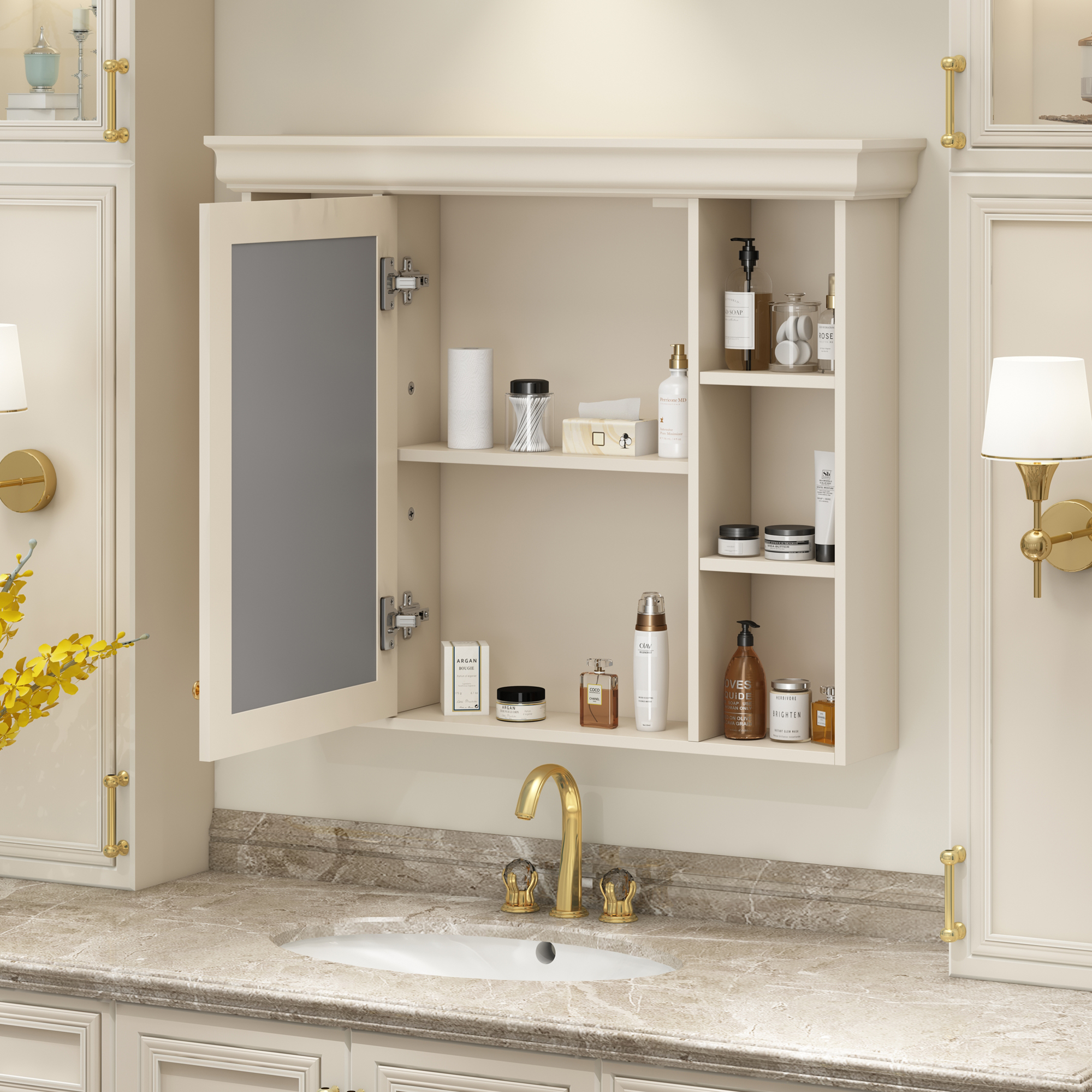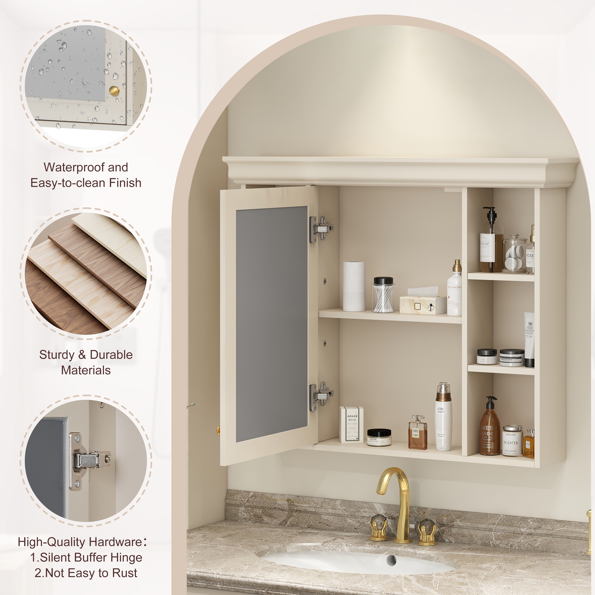 MRS 35'' x 28'' Wall Mounted Bathroom Storage Cabinet with Mirror Door, Modern Bathroom Wall Cabinet with Mirror, Medicine Cabinet with 6 Open Shelves. Designed to provide practical task lighting around a vanity or bathroom mirror while supporting everyday grooming routines. Material: MDF+glass. Product dimensions and weight: length 39.76, width 20.24, height 7.24, weight 38.84.