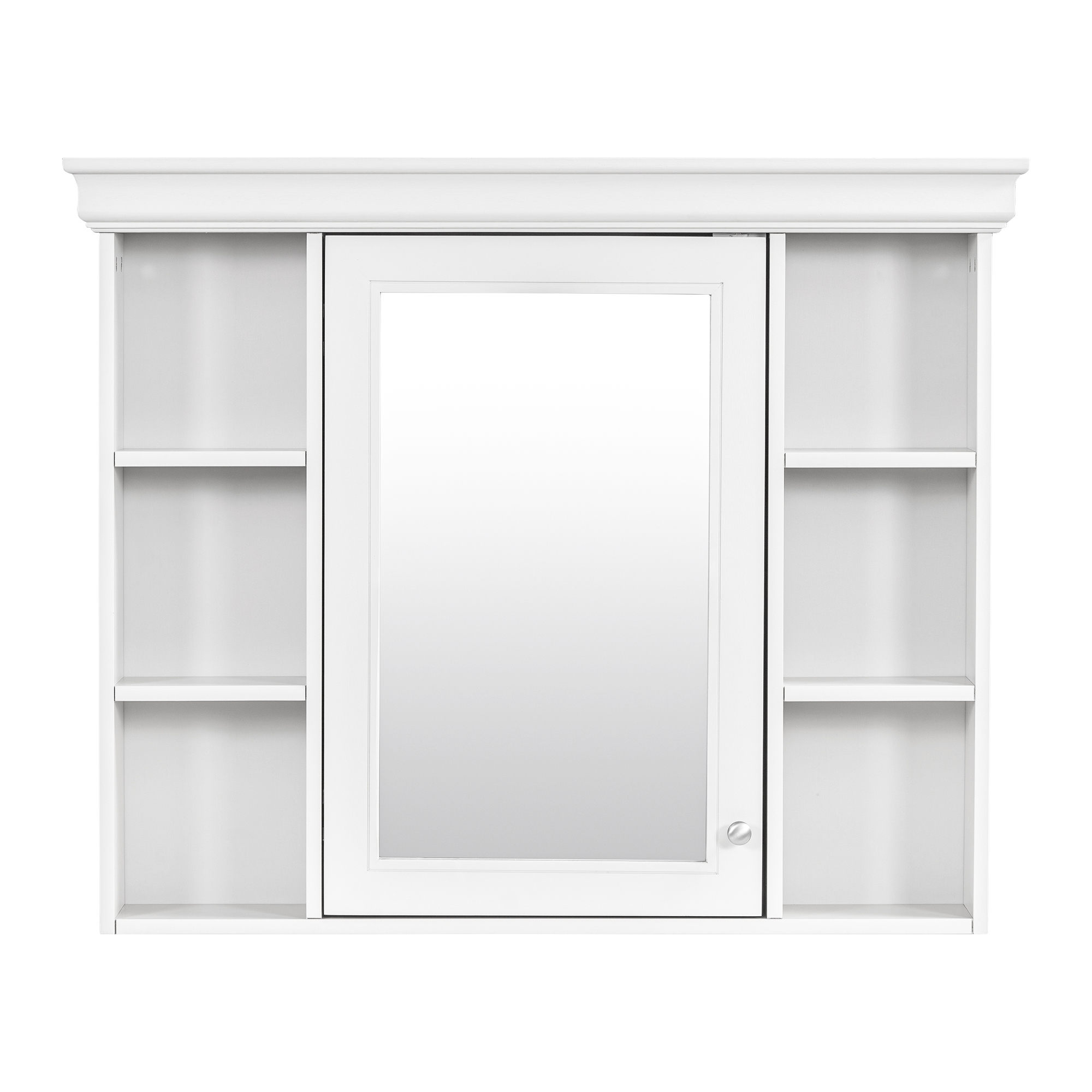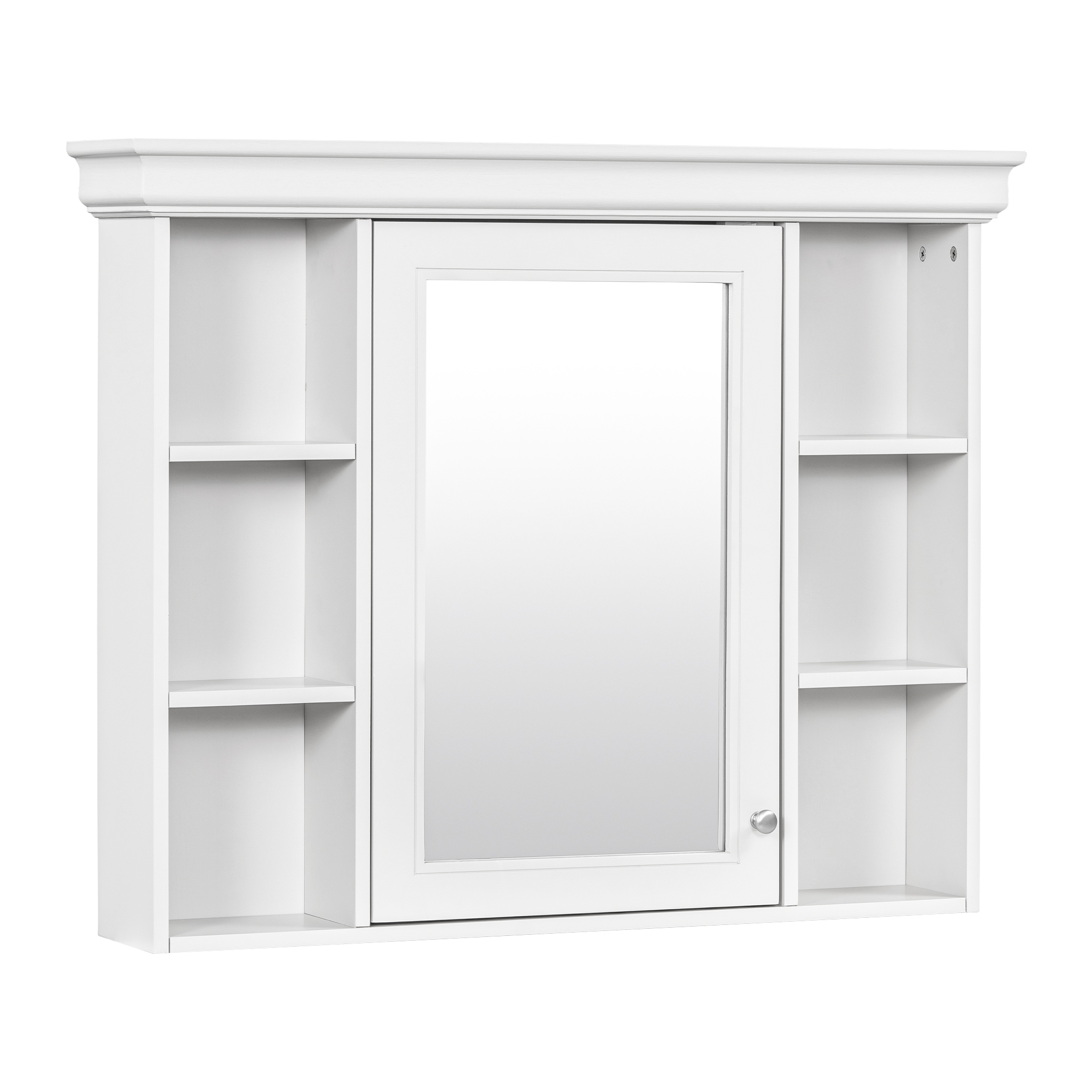 MRS 35'' x 28'' White Wall Mounted Bathroom Storage Cabinet with Mirror Door, Modern Bathroom Wall Cabinet with Mirror, Medicine Cabinet with 6 Open Shelves. Designed to provide practical task lighting around a vanity or bathroom mirror while supporting everyday grooming routines. Material: MDF+glass. Product dimensions and weight: length 39.76, width 20.24, height 7.24, weight 38.84.