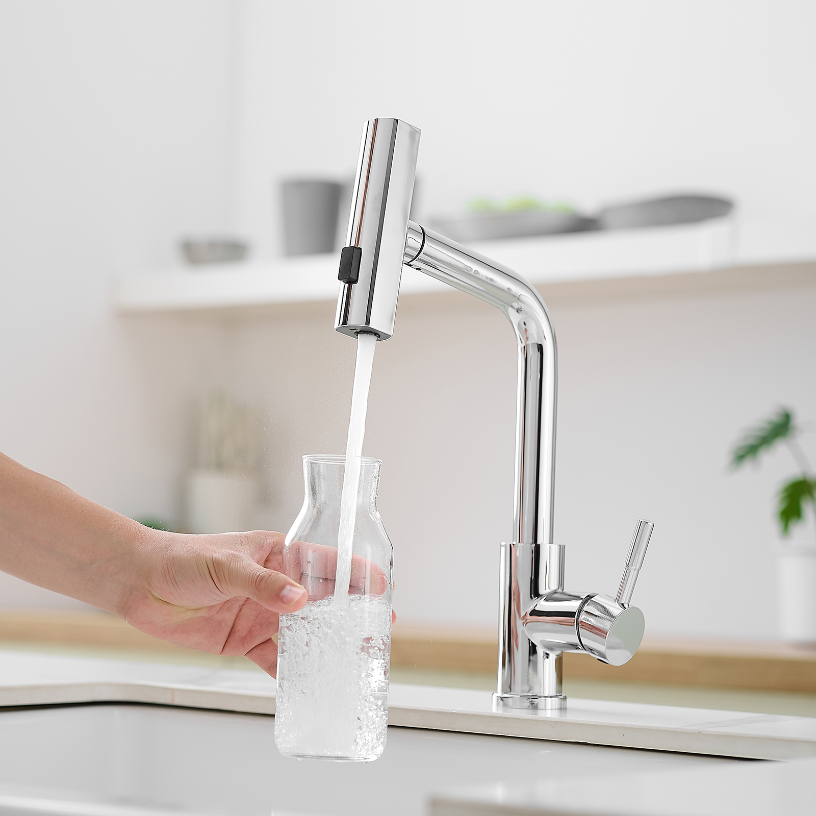 FLG 360° Rotation Pull-Down Kitchen Faucet with 3 Spray Modes -Chrome /Stainless Steel High-Arc Sink Faucet. Designed as a practical decorative lighting piece that supports everyday use while helping complete the look of the space. Material: Stainless Steel. Product dimensions and weight: length 17.5, width 13.6, height 2.8, weight 4.3.