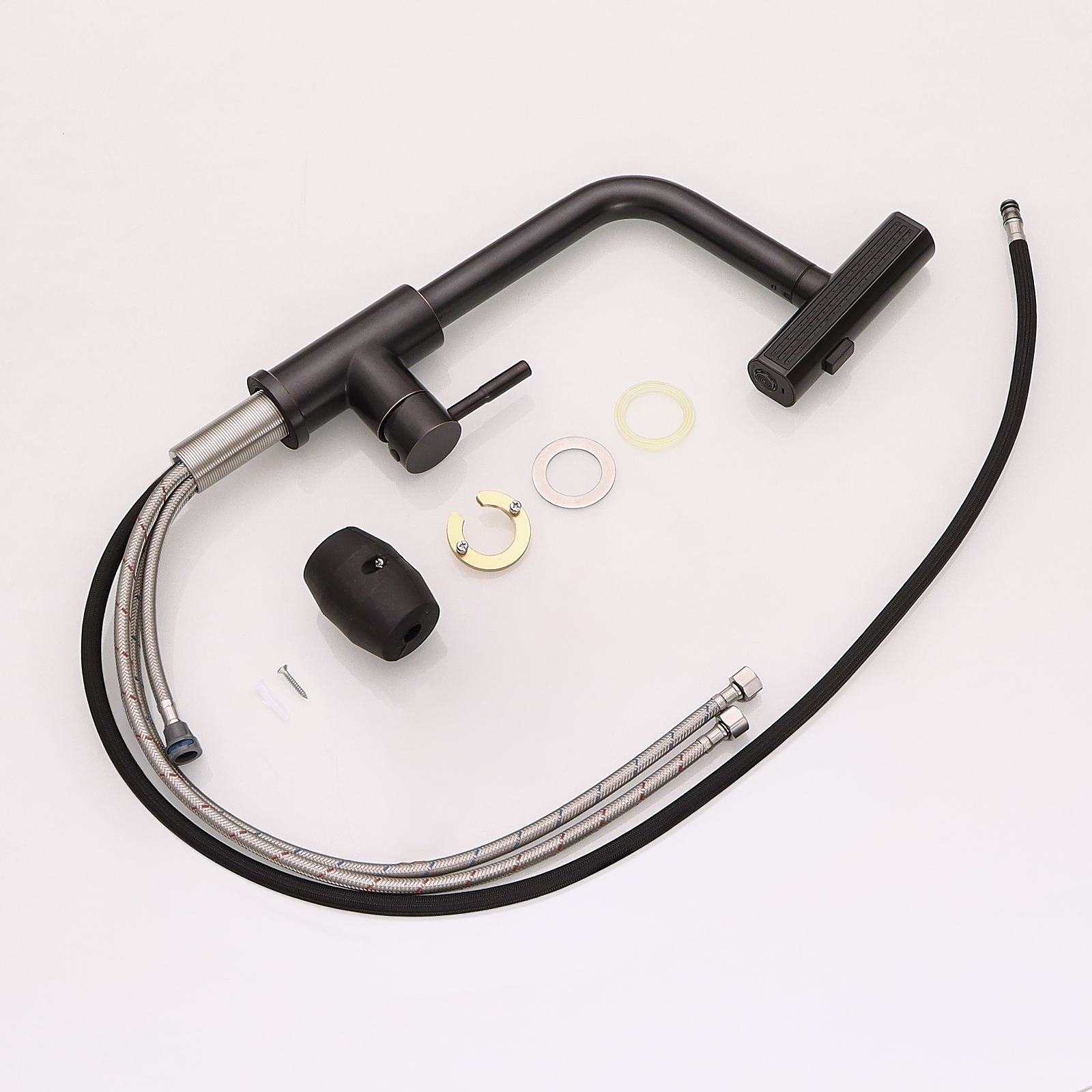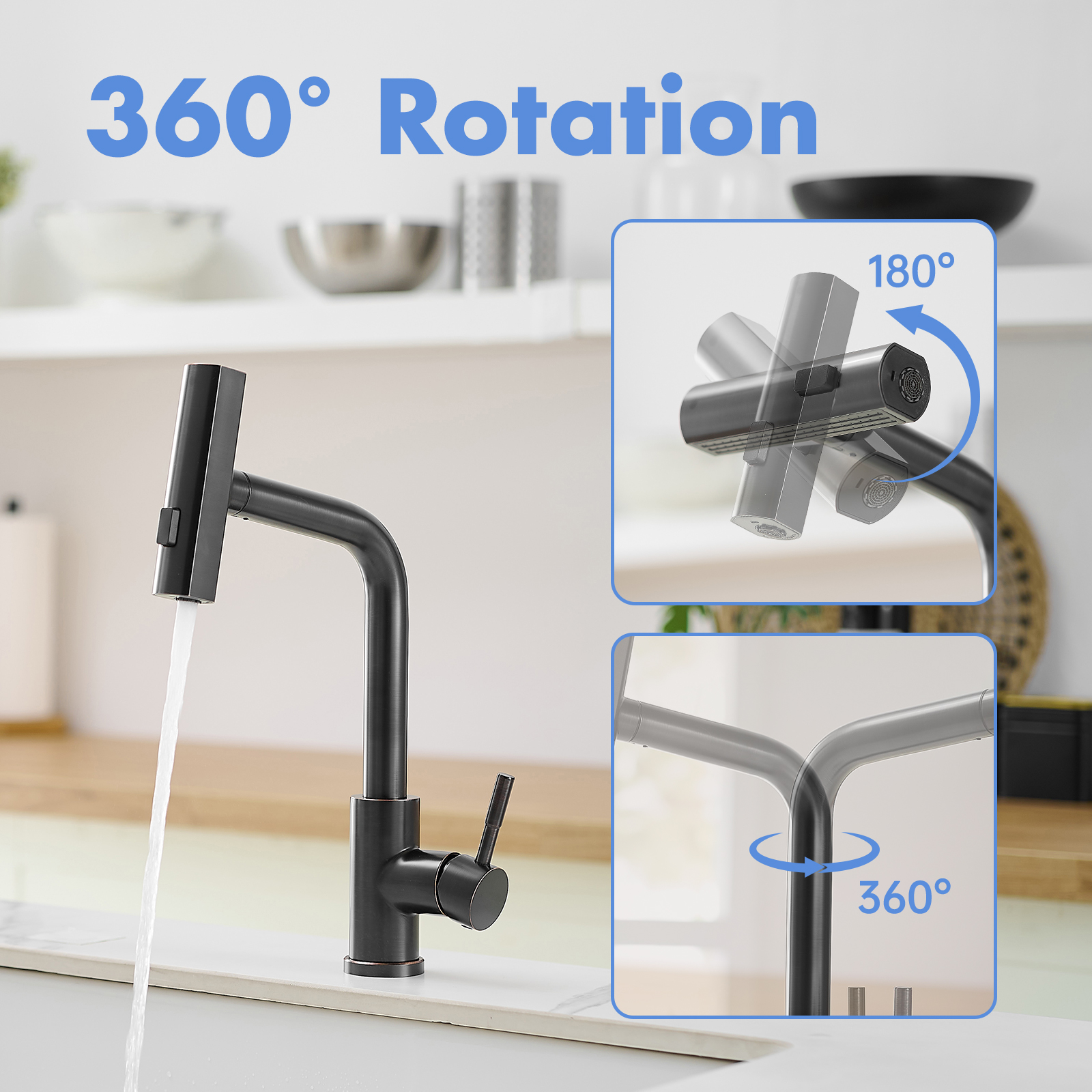 360° Rotation Pull-Down Kitchen Faucet with 3 Spray Modes - Oil Rubbed Bronze /Stainless Steel High-Arc Sink Faucet