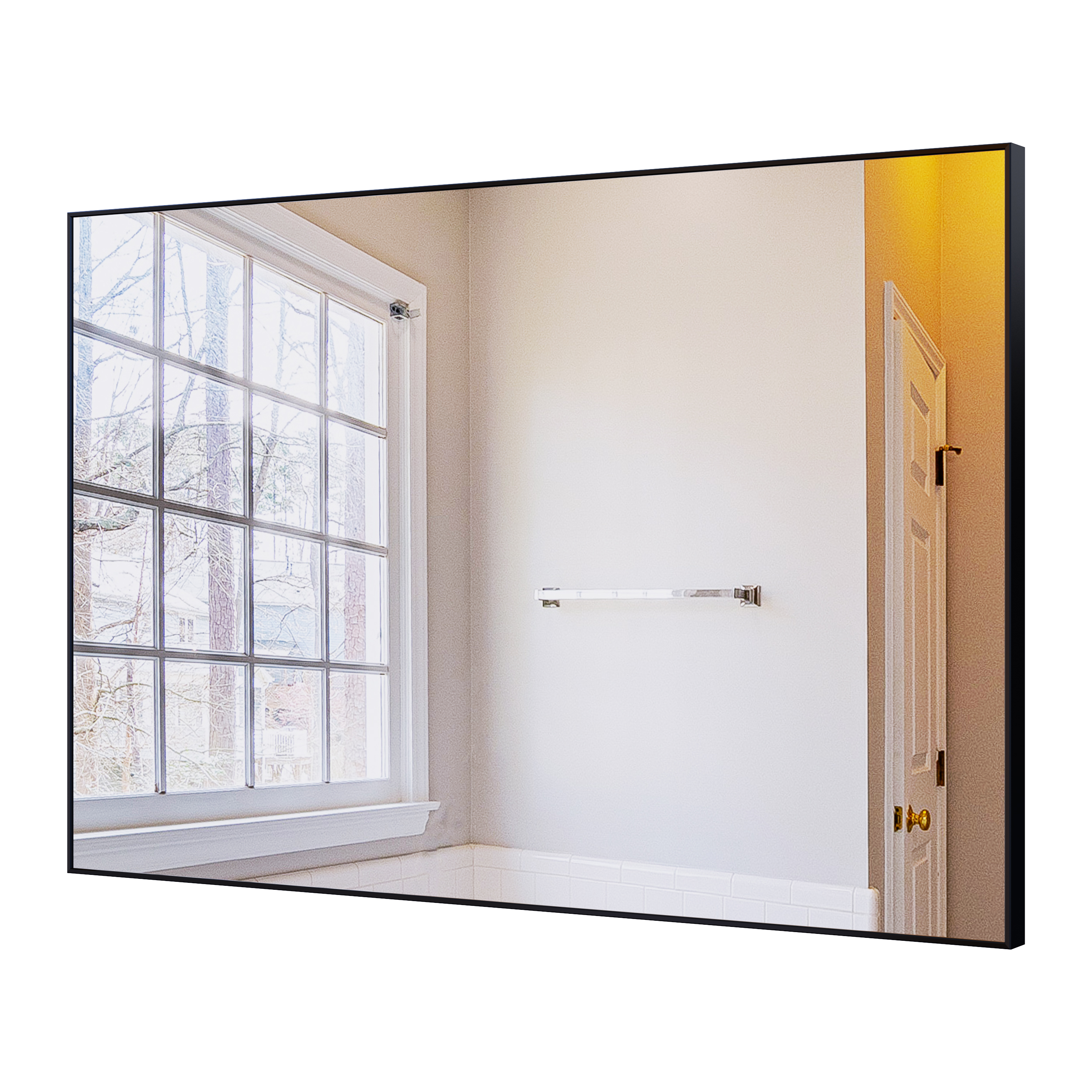 BEAUTME 36x24 inches Modern Black Bathroom Mirror with Aluminum Frame Vertical or Horizontal Hanging Decorative Wall Mirrors for Living Room Bedroom. Designed to provide practical task lighting around a vanity or bathroom mirror while supporting everyday grooming routines. Material: Glass. Product dimensions and weight: length 39, width 27, height 3, weight 13.36.