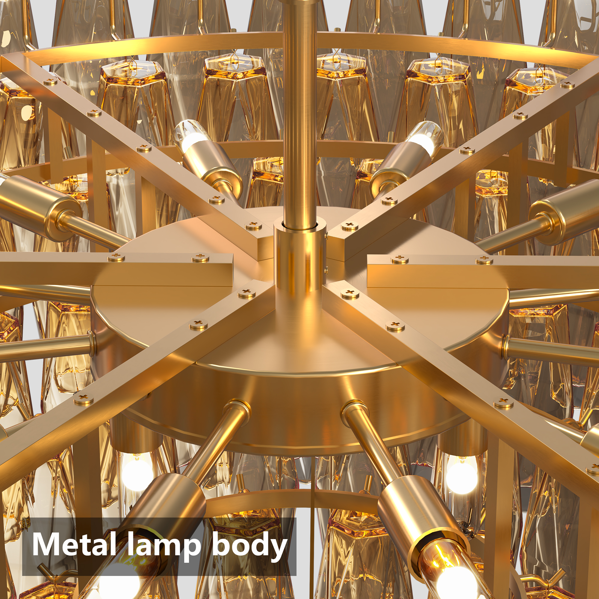 NEOSGO 37" Extra Large Chandelier, 14-Light Gold Modern Round Chandelier for Living Room, Tiered Smoke Blown Glass Brass Chandeliers, Hanging Light Fixture for Bedroom, Dining Room, Foyer, Entryway is designed to serve as both a lighting source and a decorative focal point within the room. This type of fixture is especially effective above dining tables, in entryways, and in living spaces where the customer wants overhead light with stronger visual impact. The product presentation suggests a style-driven fixture that helps define the ceiling area and gives the space a more elevated, finished character. It is a strong fit for customers who want lighting that contributes to the overall look of the room rather than functioning as a utility piece alone. Overall size is approximately 37.8 x 37.8 x 20.5 inches with a listed weight of 91.1. The current listing includes 10 product images, which help clarify the product shape, proportions, and visual placement in a real room setting.