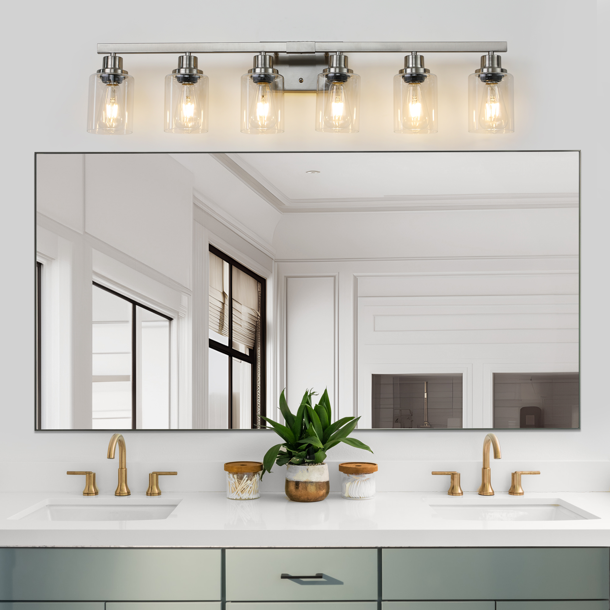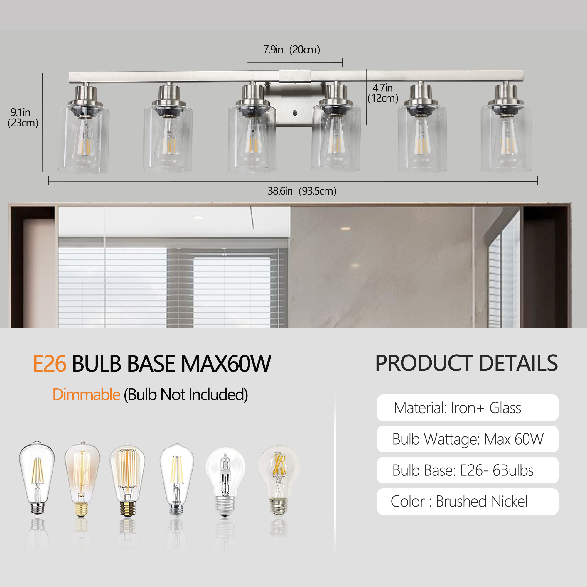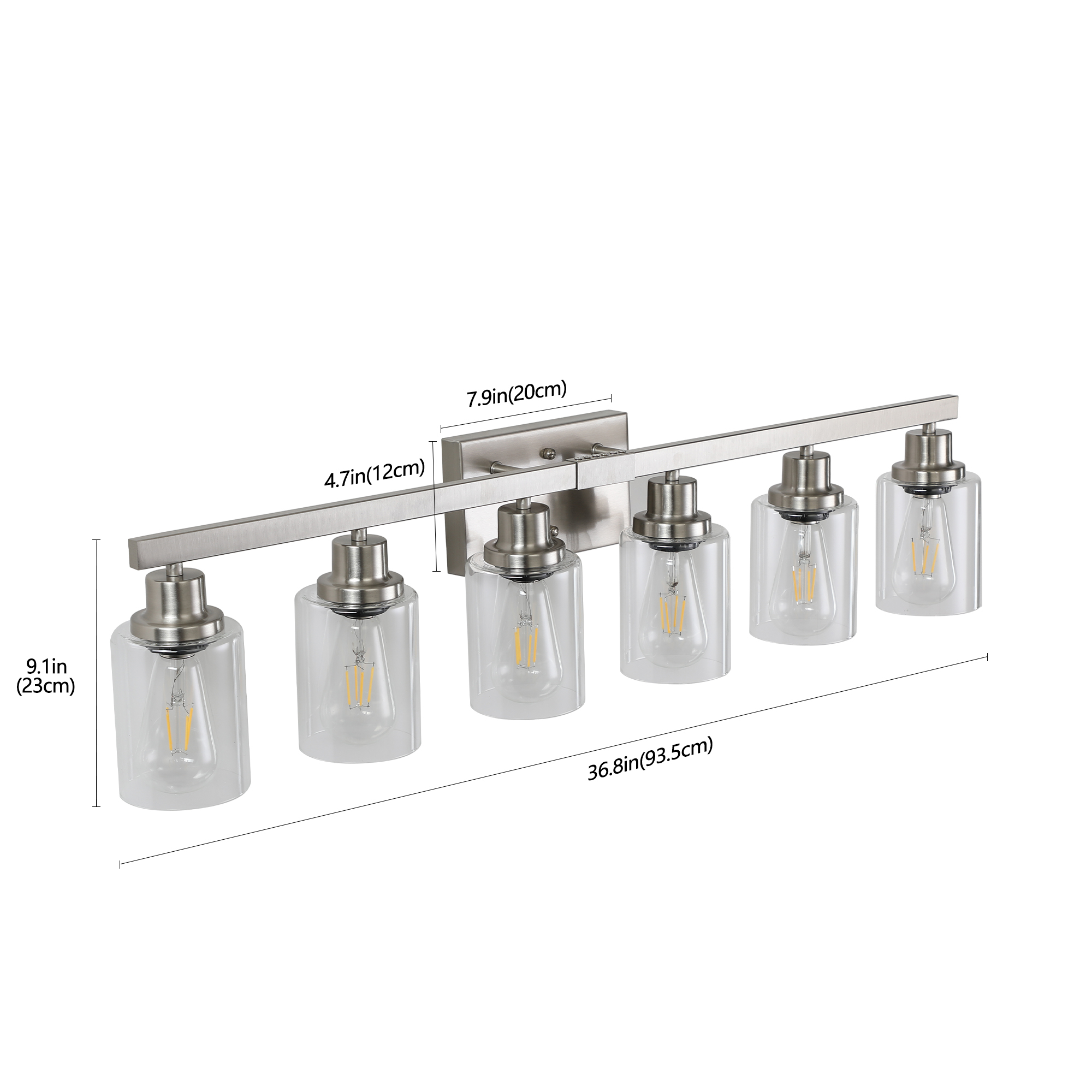 NEOSGO 37" Modern 6-Light Bathroom Vanity Light Fixture - Brushed Nickel Finish with Clear Glass Shades, Perfect for Bathroom, Vanity, and Dressing Area Lighting (No Bulbs) is intended to provide focused wall lighting while also adding decorative detail to the surrounding space. This style is especially useful near mirrors, over bathroom vanities, along hallways, in bedrooms, or in accent areas that benefit from directed light rather than relying only on ceiling fixtures. Based on the product presentation, it offers a practical mix of daily illumination and visual styling, which helps the room feel more complete and intentionally designed. It is a good option for customers who want better task lighting together with a more refined finished look on the wall. Overall size is approximately 20.47 x 15.35 x 7.48 inches with a listed weight of 7.7. The current listing includes 10 product images, which help clarify the product shape, proportions, and visual placement in a real room setting.
