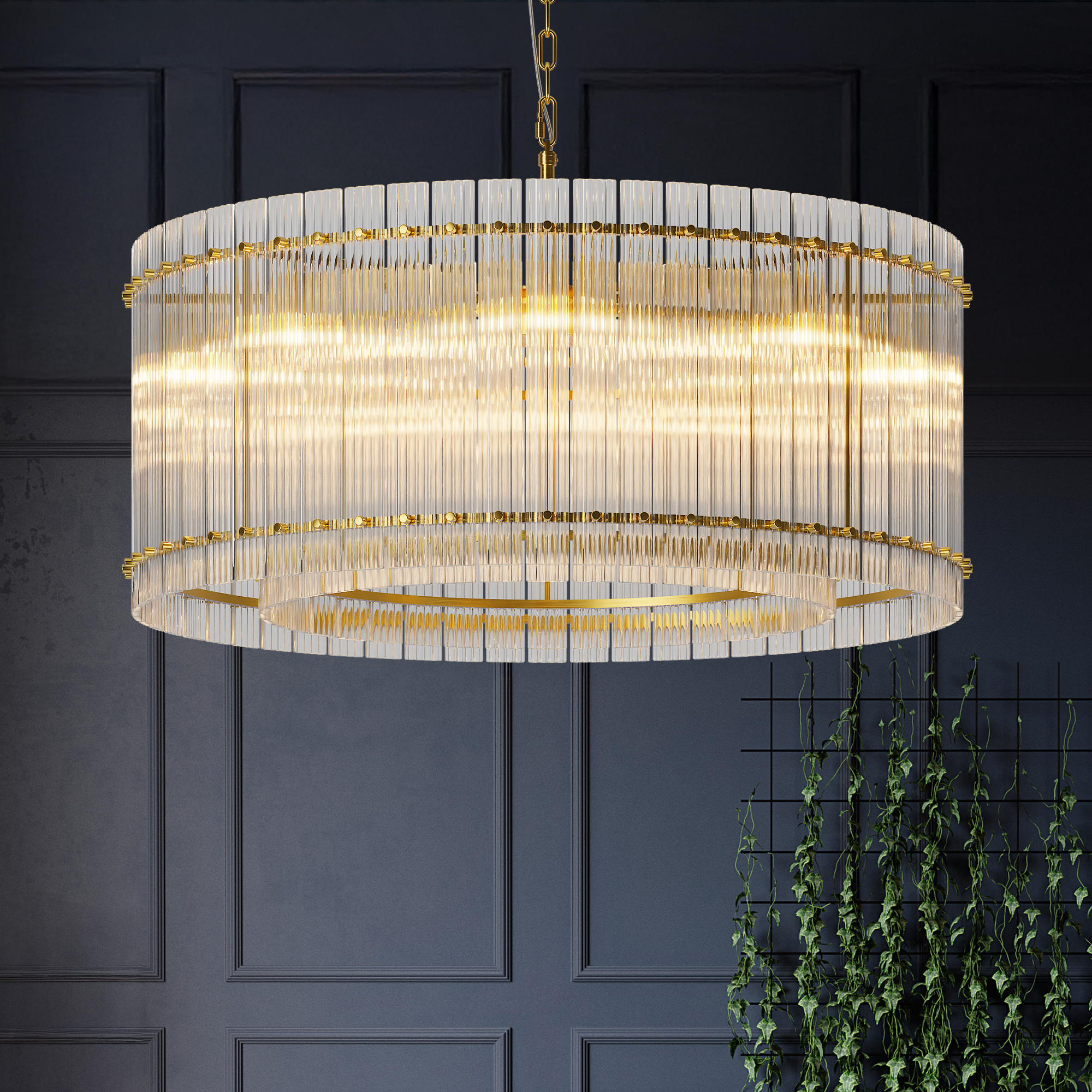 NEOSGO 37" Modern Gold Round Chandelier,2-Tier 8-Light Water Ripple Crystal Glass Chandeliers,for Dining Room,Living Room,Bedroom,High Ceiling,Foyer Entryway,Luxury Chandelier is designed to serve as both a lighting source and a decorative focal point within the room. This type of fixture is especially effective above dining tables, in entryways, and in living spaces where the customer wants overhead light with stronger visual impact. The product presentation suggests a style-driven fixture that helps define the ceiling area and gives the space a more elevated, finished character. It is a strong fit for customers who want lighting that contributes to the overall look of the room rather than functioning as a utility piece alone. Overall size is approximately 39.4 x 39.4 x 9.4 inches with a listed weight of 86.7. The current listing includes 9 product images, which help clarify the product shape, proportions, and visual placement in a real room setting.