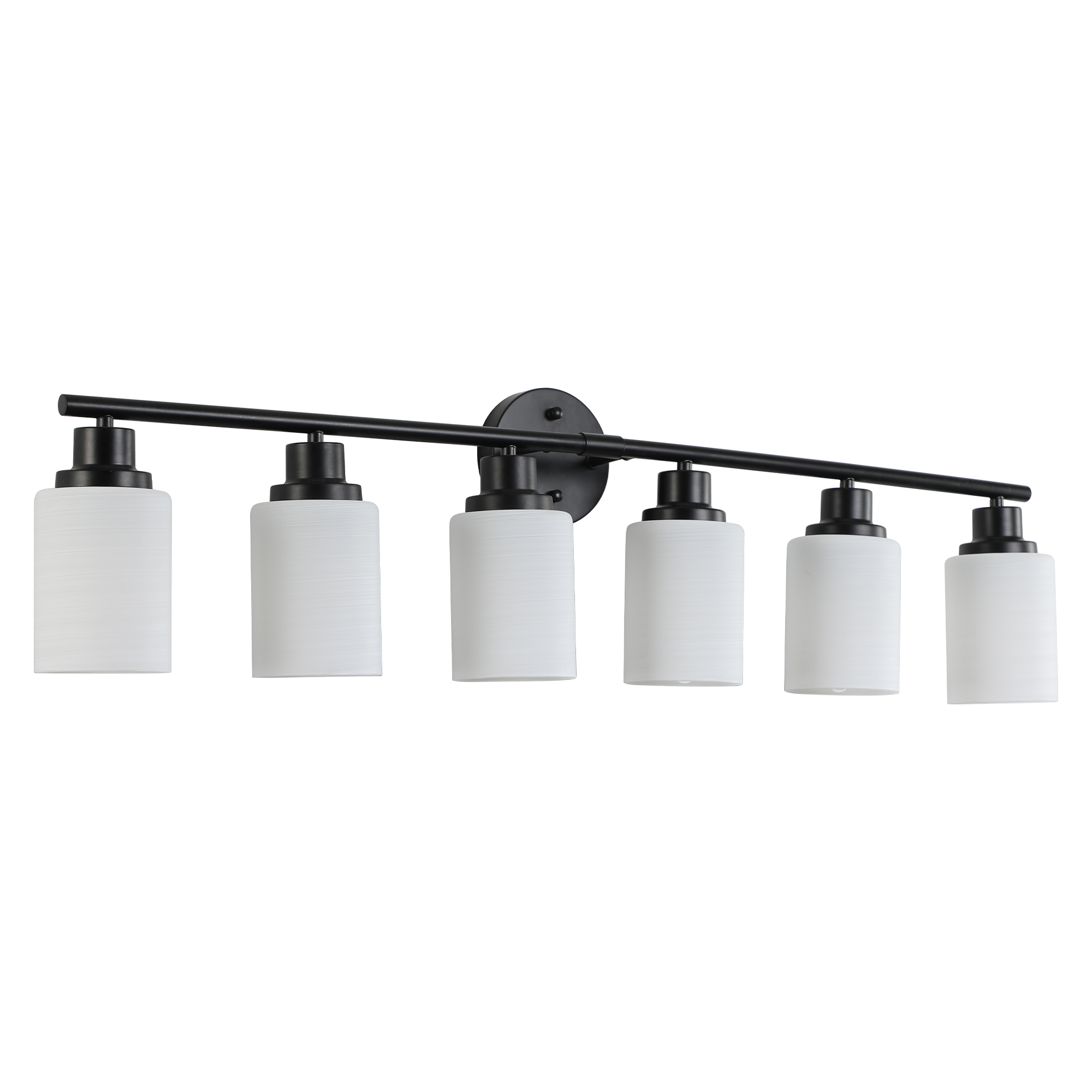 39" Modern 6-Light Vanity Bathroom Mirror Light, Frosted White Glass with Black Iron Frame, Contemporary Wall Sconce for Bedroom, Bathroom, and Dressing Room (No Bulbs)