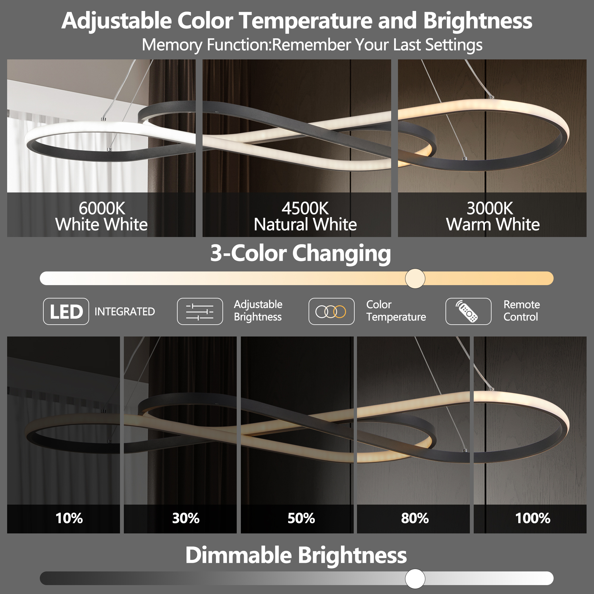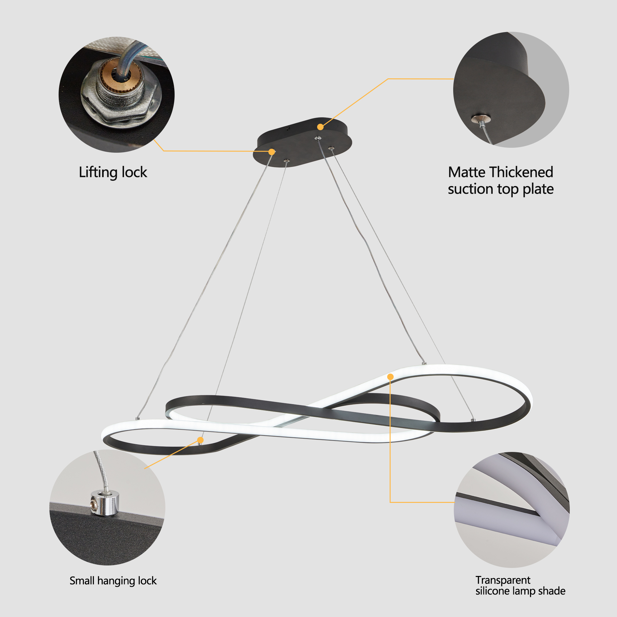 NEOSGO 39" Modern LED Pendant Light, Infinity Design Hanging Ceiling Fixture, Adjustable Height, Dimmable for Living Room, Dining Room, Bedroom, Black Finish is intended to deliver focused overhead light while also strengthening the decorative identity of the space. Pendant-style fixtures are especially useful over kitchen islands, sinks, breakfast areas, counters, and compact dining spaces where customers want targeted light and a visible design element. Based on the product presentation, it suits interiors that need a more finished overhead feature without overwhelming the rest of the room. It is a good option for shoppers who want everyday function together with a clean decorative upgrade. Overall size is approximately 42.13 x 18.5 x 3.94 inches with a listed weight of 5.3. The current listing includes 8 product images, which help clarify the product shape, proportions, and visual placement in a real room setting.