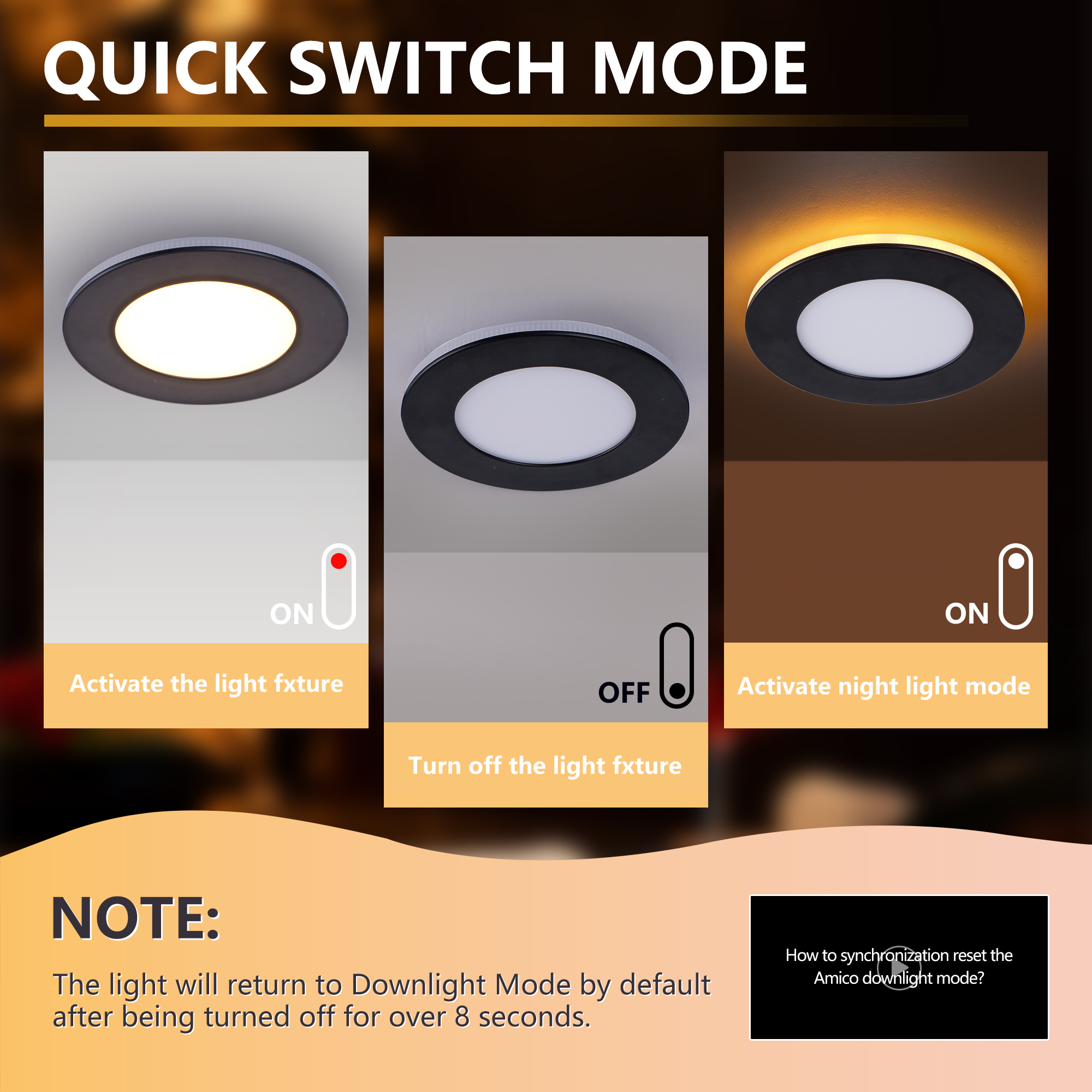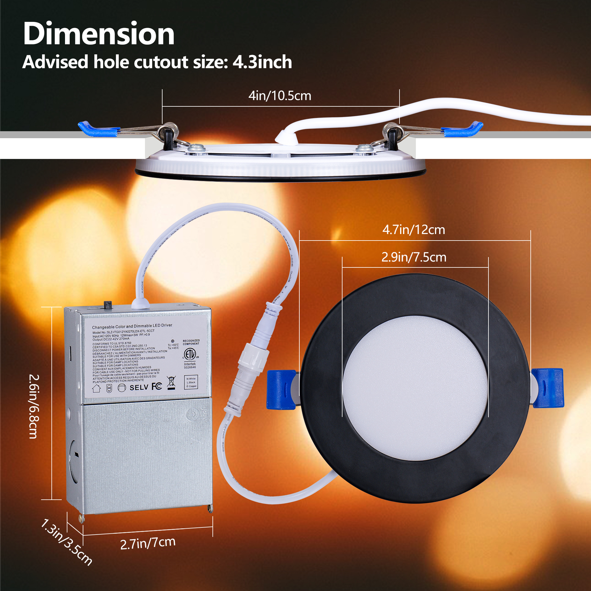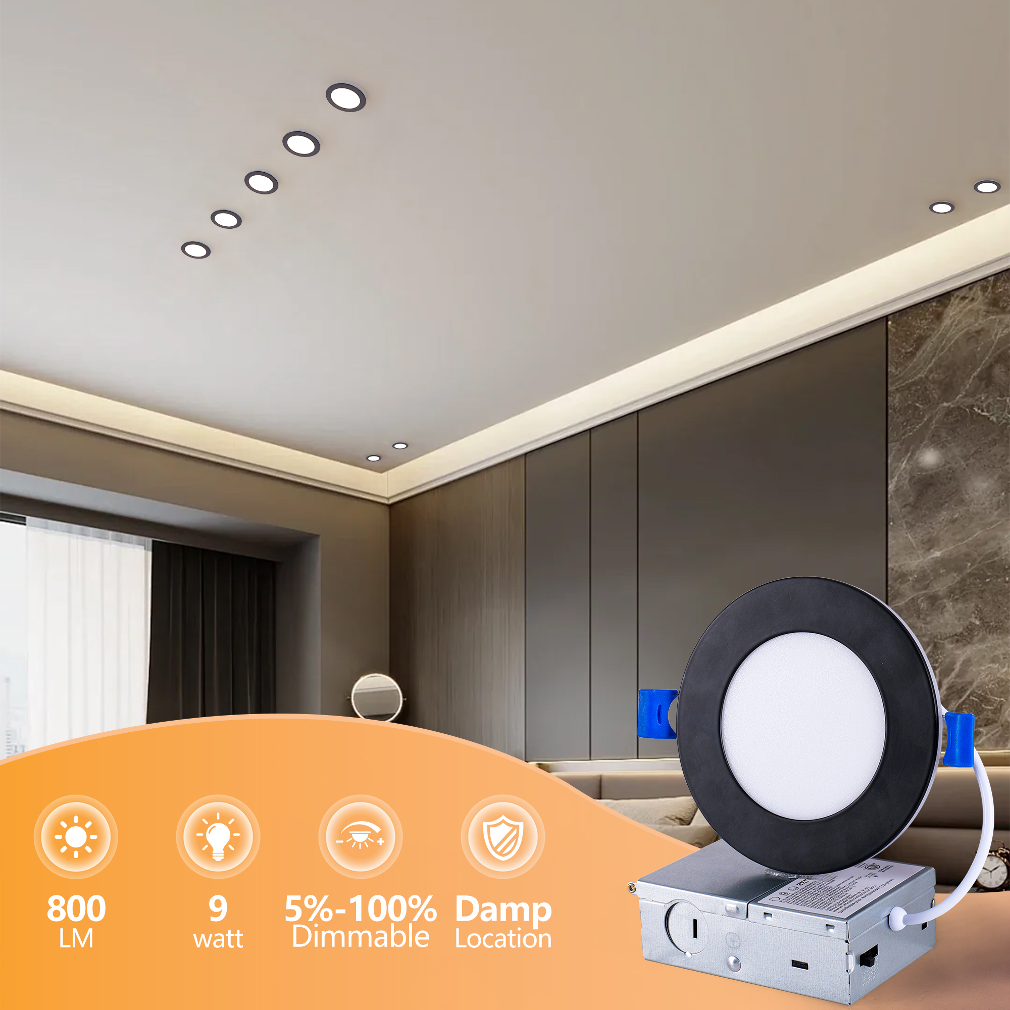 4 Inch 12 Pack Black Recessed Lights - with Night Light, 9W 800LM Dimmable Wafer Downlight Soffit, 2700K-5000K 5CCT Canless Recessed Light with Junction Box