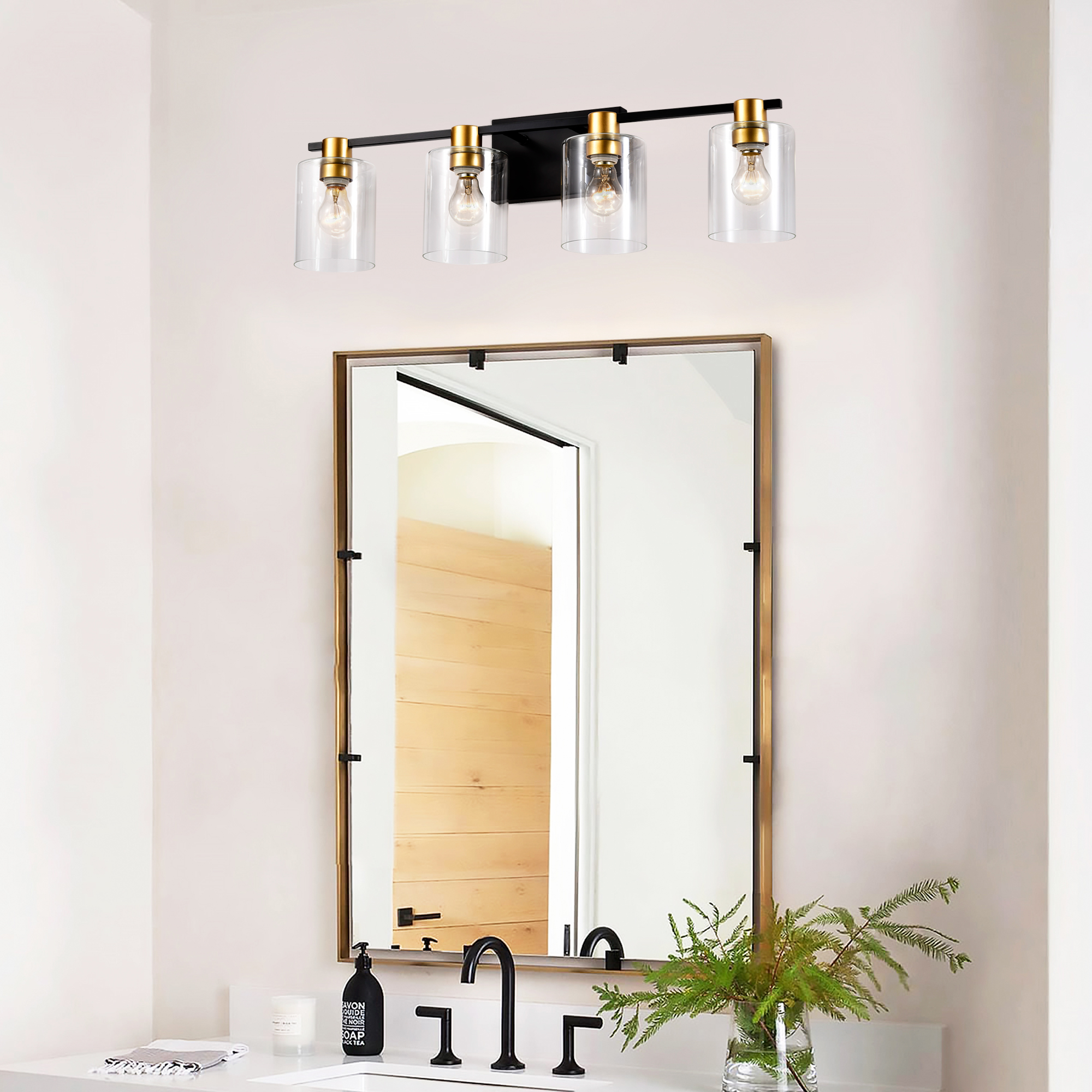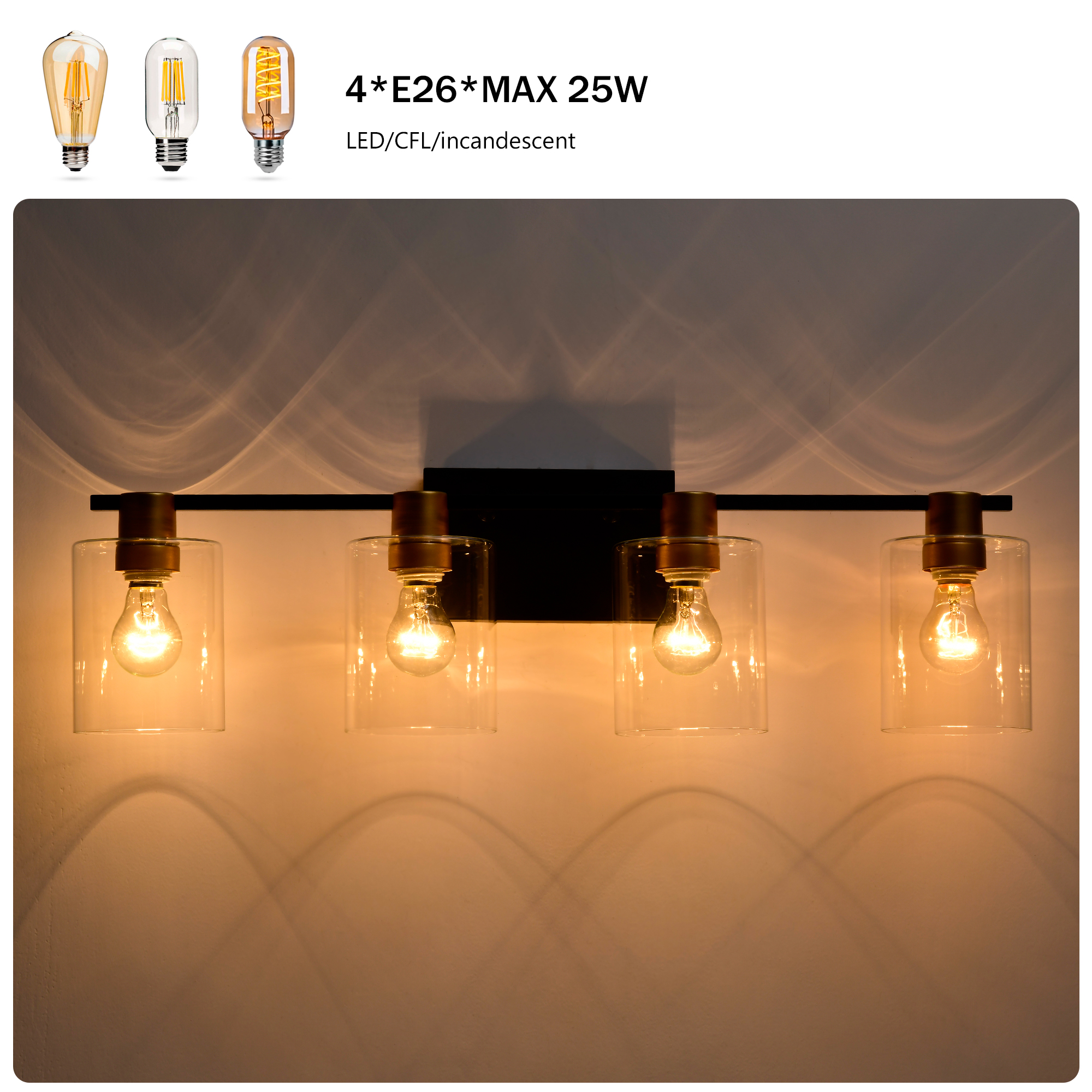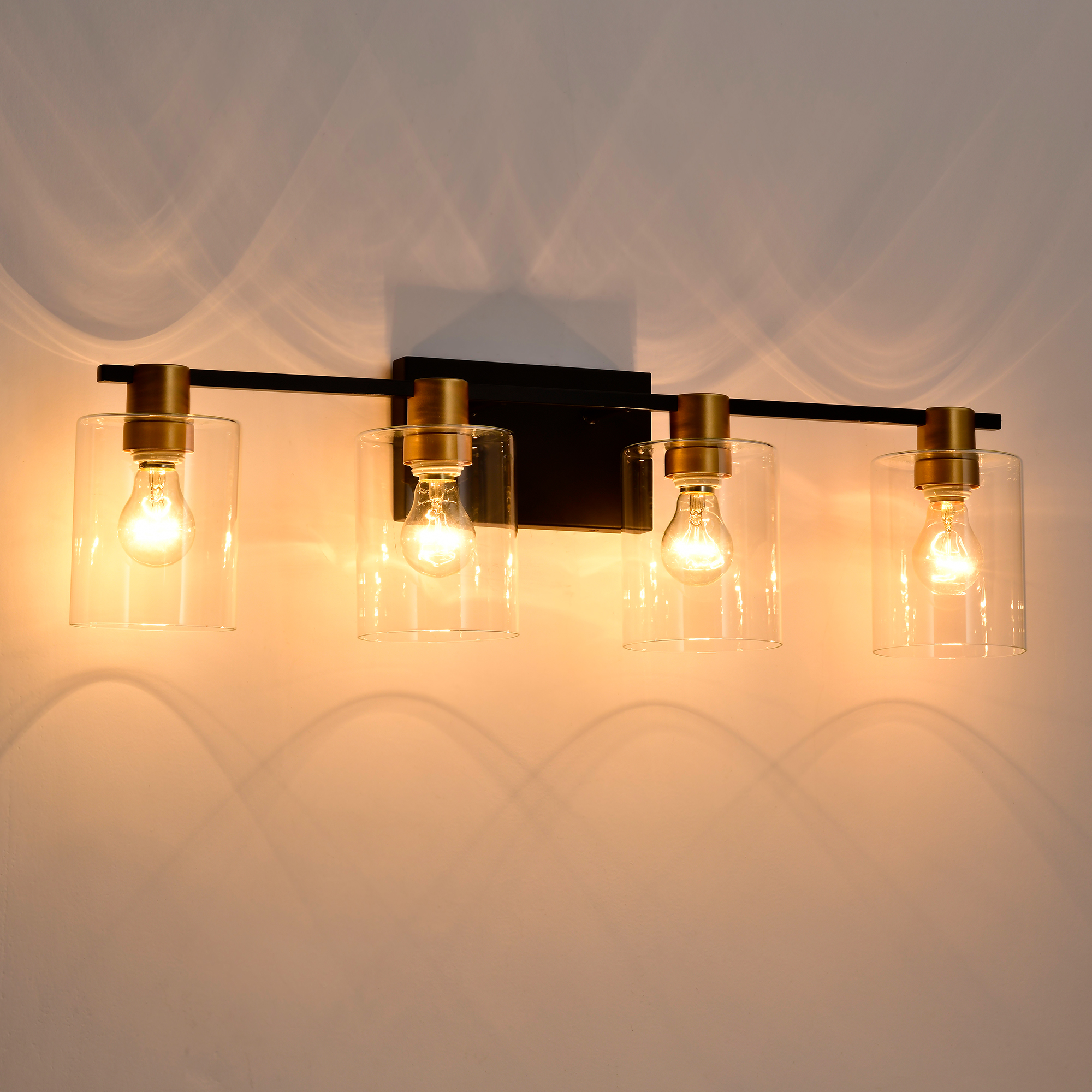 4-Light Bathroom Light Fixtures((Does Not Include Light Bulbs), Modern Vanity Lights with Glass Shade, Vintage Light Fixture Bathroom Over Mirror Wall Lights for Kitchen Dinning Room Bedroom Hallway
