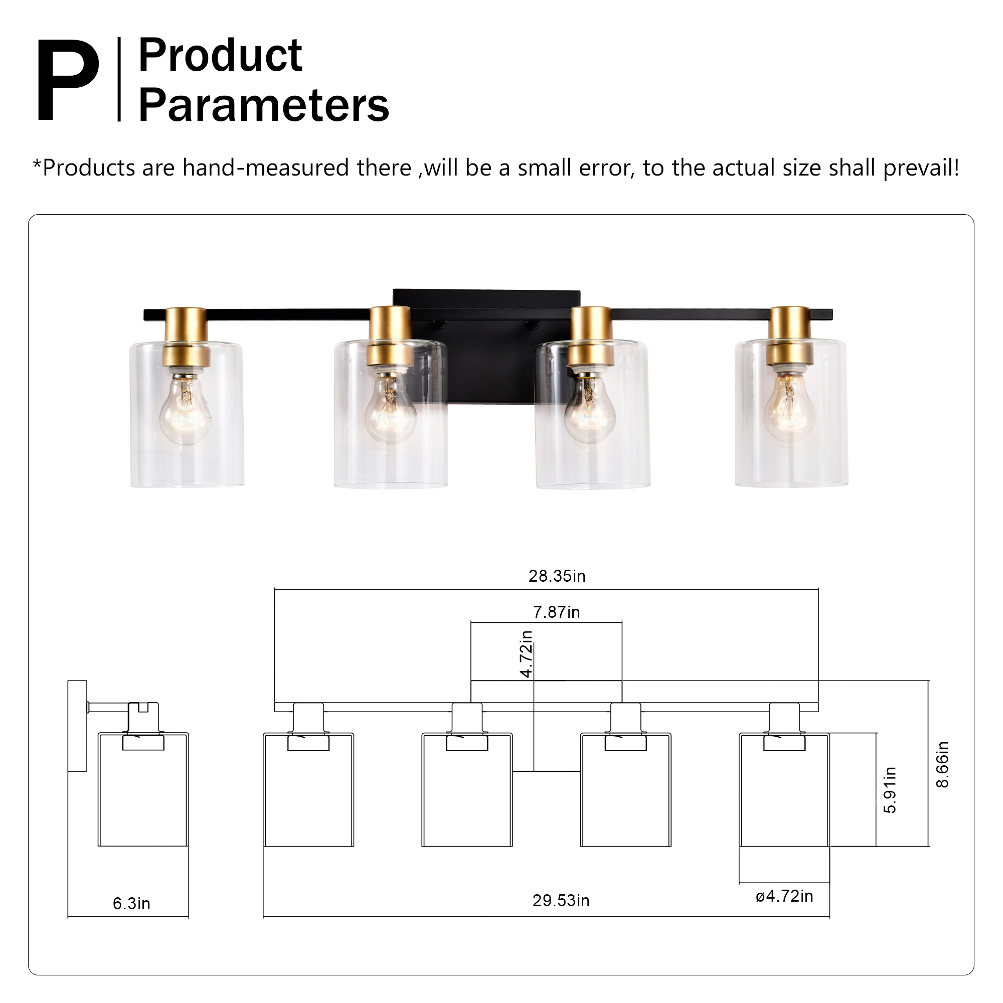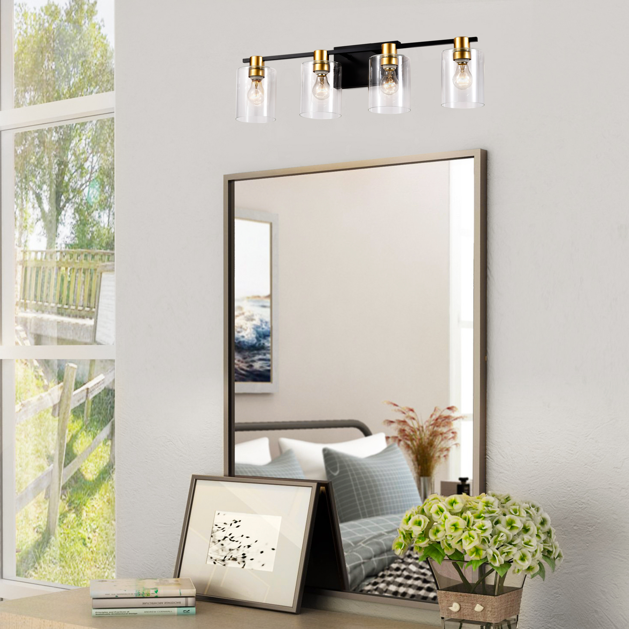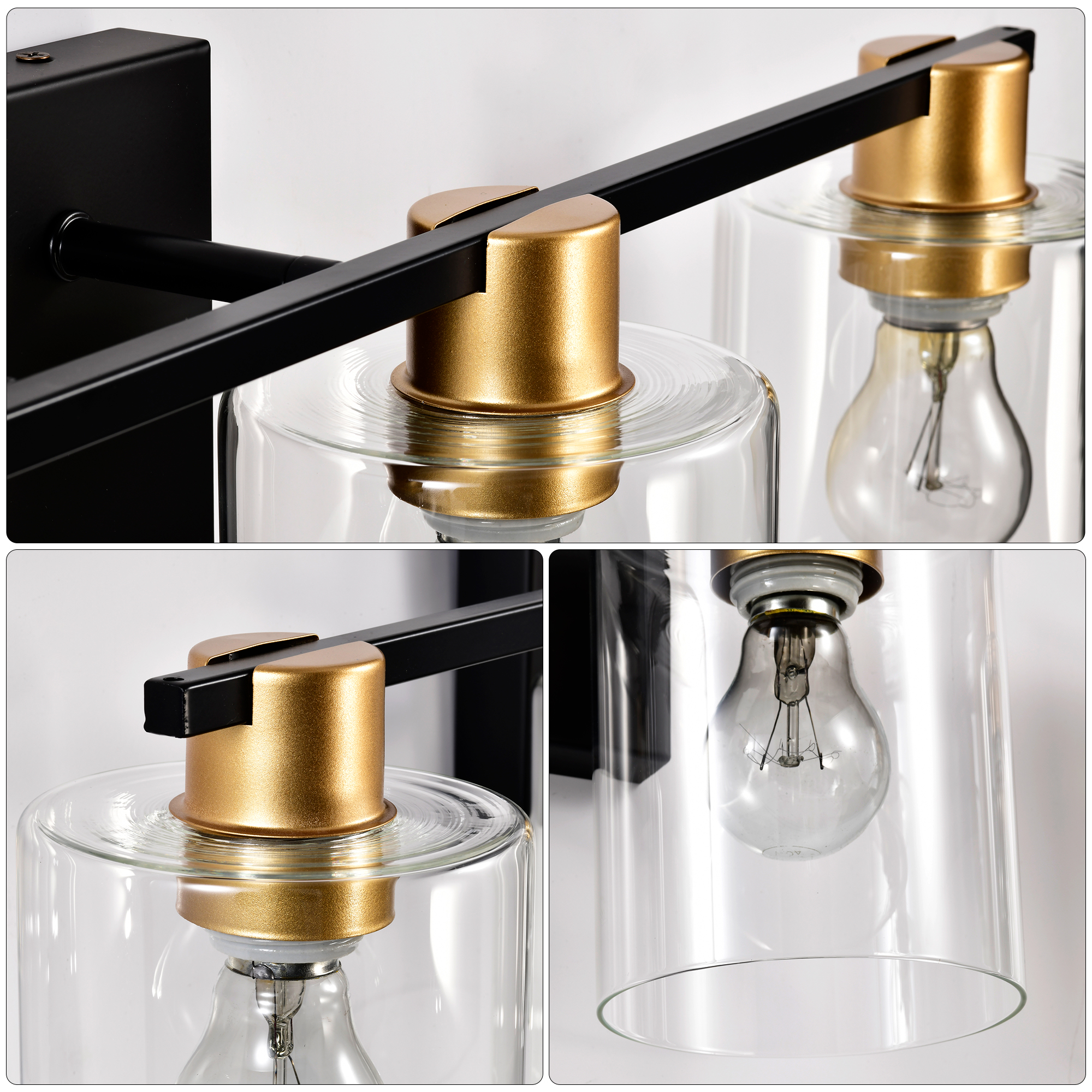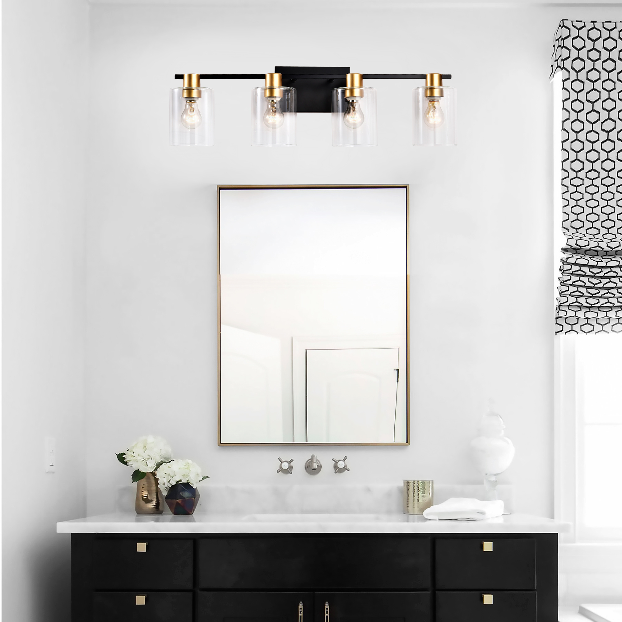 4-Light Bathroom Light Fixtures((Does Not Include Light Bulbs), Modern Vanity Lights with Glass Shade, Vintage Light Fixture Bathroom Over Mirror Wall Lights for Kitchen Dinning Room Bedroom Hallway