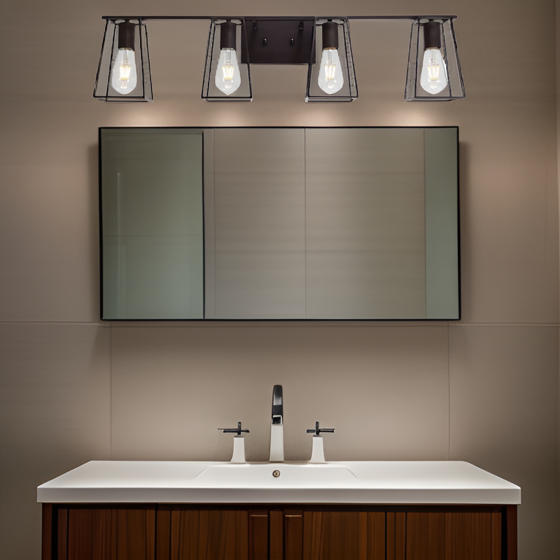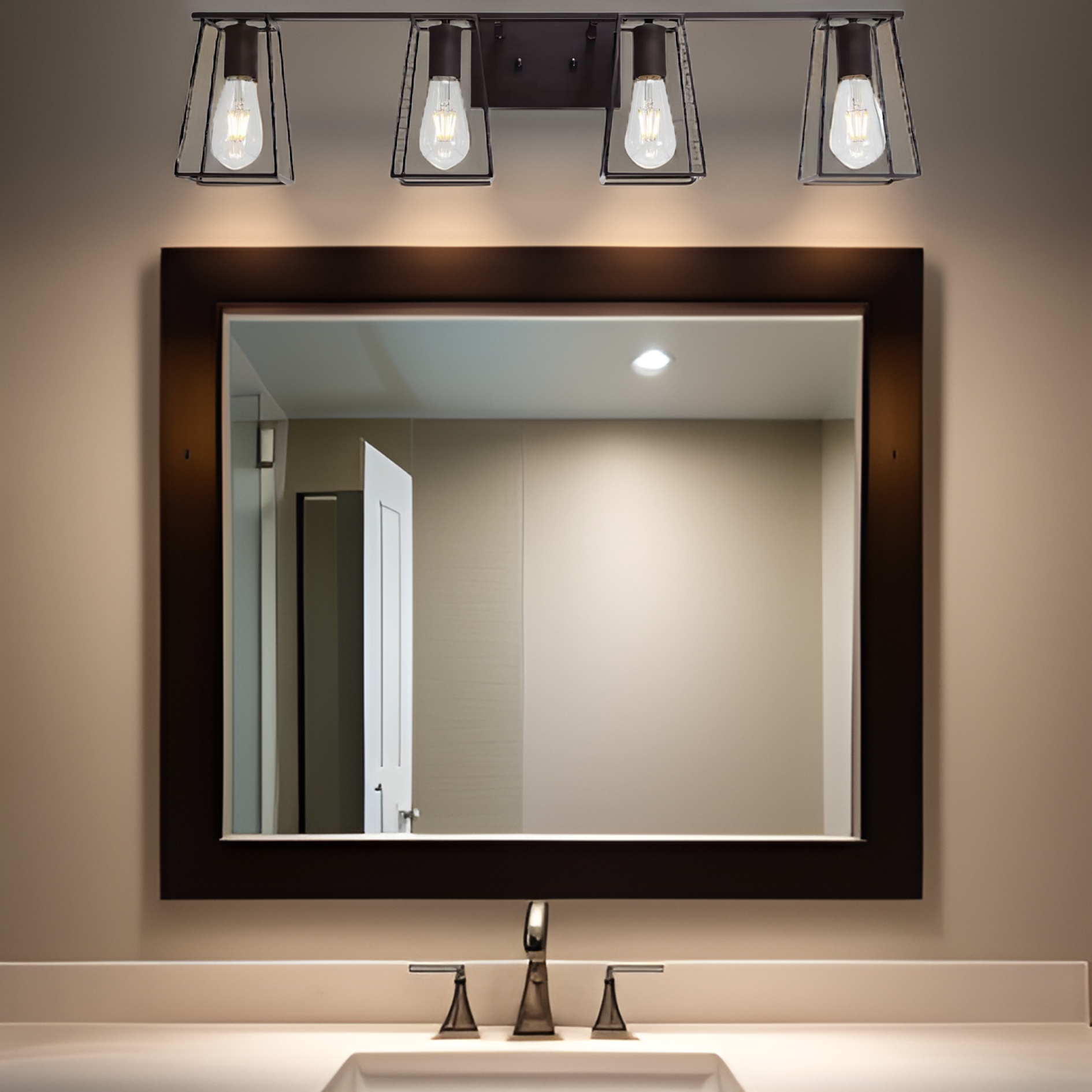 4-Light Oil Rubbed Bronze Vanity Lights for Bathroom, Industrial Vintage Wall Sconce Lighting with Open Metal Cage