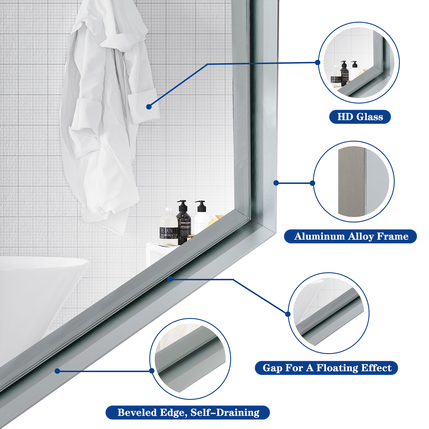 Aialmc 40x30inch Silver Rectangular Wall-mounted Beveled Bathroom Mirror,Square Angle Metal Frame Wall Mounted Bathroom Mirrors For Wall(Horizontal & Vertical). Designed to provide practical task lighting around a vanity or bathroom mirror while supporting everyday grooming routines. Material: Aluminium Alloy. Product dimensions and weight: length 44.88, width 33.46, height 2.95, weight 27.56.
