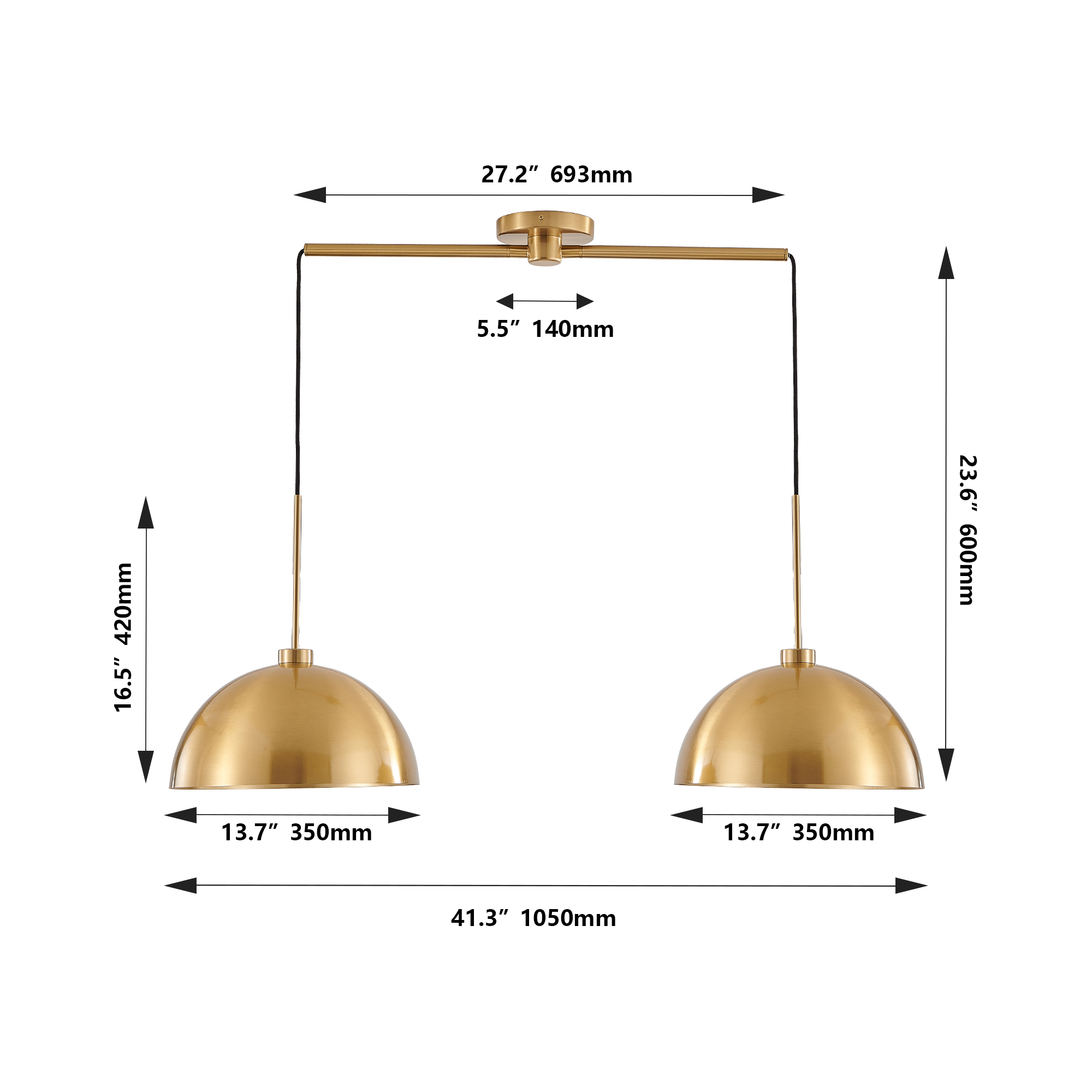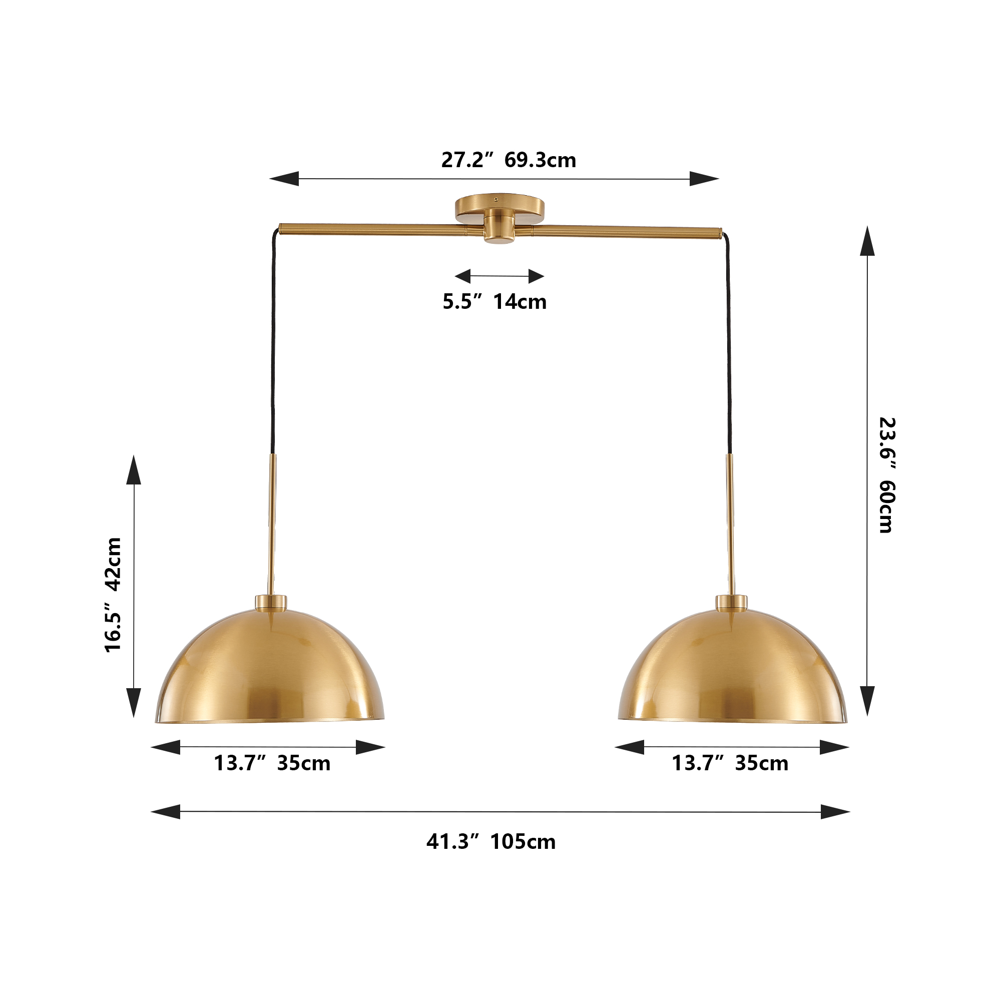 41" Industrial Modern Copper Color Double Pendant Light – Adjustable Ceiling Hanging Lamp with Bright Finish for Dining Room, Kitchen, or Living Room – Stylish and Durable Lighting Fixture (No Bulbs)
