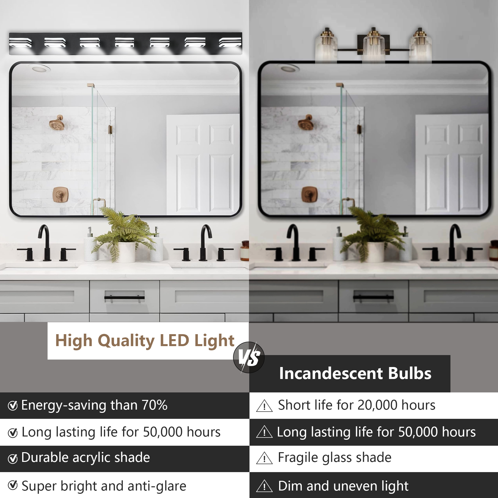 NEOSGO 45" Modern Black 7-Light LED Vanity Light, Square Acrylic Lampshades Wall Mount Fixture for Bathroom, Mirror Lighting is designed to improve daily bathroom routines with a clearer mirror area and more useful lighting around the vanity space. The product presentation suggests a modern wall-mounted mirror intended for grooming, makeup, skincare, shaving, and other tasks that benefit from more even front-facing light. It works especially well in bathrooms, powder rooms, and remodeled vanity areas where customers want the mirror to provide both practical function and a cleaner visual upgrade. This type of mirror is a strong fit for shoppers looking to make the room feel brighter, more modern, and easier to use every day. Overall size is approximately 47.83 x 6.89 x 6.3 inches with a listed weight of 9.8. The current listing includes 12 product images, which help clarify the product shape, proportions, and visual placement in a real room setting.
