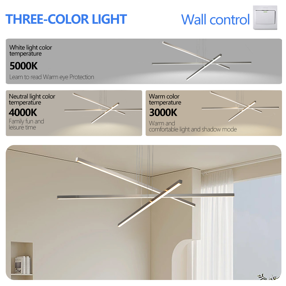 NEOSGO 48" Modern LED Chandelier - Geometric 3-Arm Design, Adjustable Hanging, Sleek Metal Finish for Dining Room, Living Room & Office is designed to serve as both a lighting source and a decorative focal point within the room. This type of fixture is especially effective above dining tables, in entryways, and in living spaces where the customer wants overhead light with stronger visual impact. The product presentation suggests a style-driven fixture that helps define the ceiling area and gives the space a more elevated, finished character. It is a strong fit for customers who want lighting that contributes to the overall look of the room rather than functioning as a utility piece alone. Overall size is approximately 56.1 x 7.1 x 3.5 inches with a listed weight of 5.3. The current listing includes 11 product images, which help clarify the product shape, proportions, and visual placement in a real room setting.