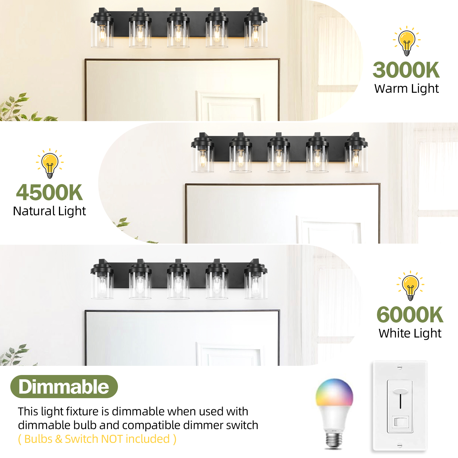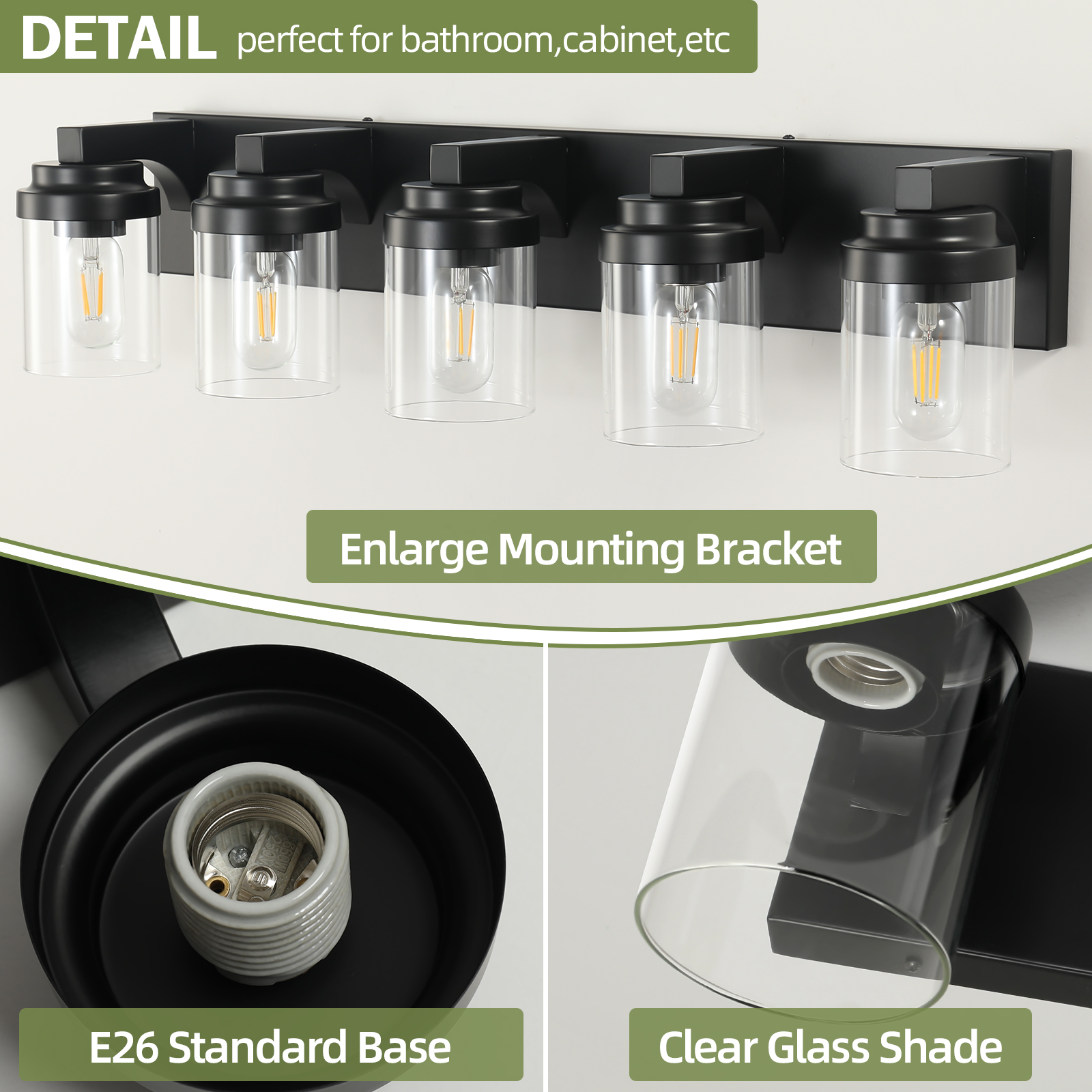 NEOSGO 5-Light Bathroom Vanity Light Bathroom Light Fixtures Over Mirror, 31" Black Vanity Lights with Glass Shade, Modern Wall Sconce for Cabinet Porch Bedroom, Hallway(bulbs not included) is designed to improve daily bathroom routines with a clearer mirror area and more useful lighting around the vanity space. The product presentation suggests a modern wall-mounted mirror intended for grooming, makeup, skincare, shaving, and other tasks that benefit from more even front-facing light. It works especially well in bathrooms, powder rooms, and remodeled vanity areas where customers want the mirror to provide both practical function and a cleaner visual upgrade. This type of mirror is a strong fit for shoppers looking to make the room feel brighter, more modern, and easier to use every day. Overall size is approximately 34.3 x 10.2 x 8.5 inches with a listed weight of 9.7. The current listing includes 7 product images, which help clarify the product shape, proportions, and visual placement in a real room setting.
