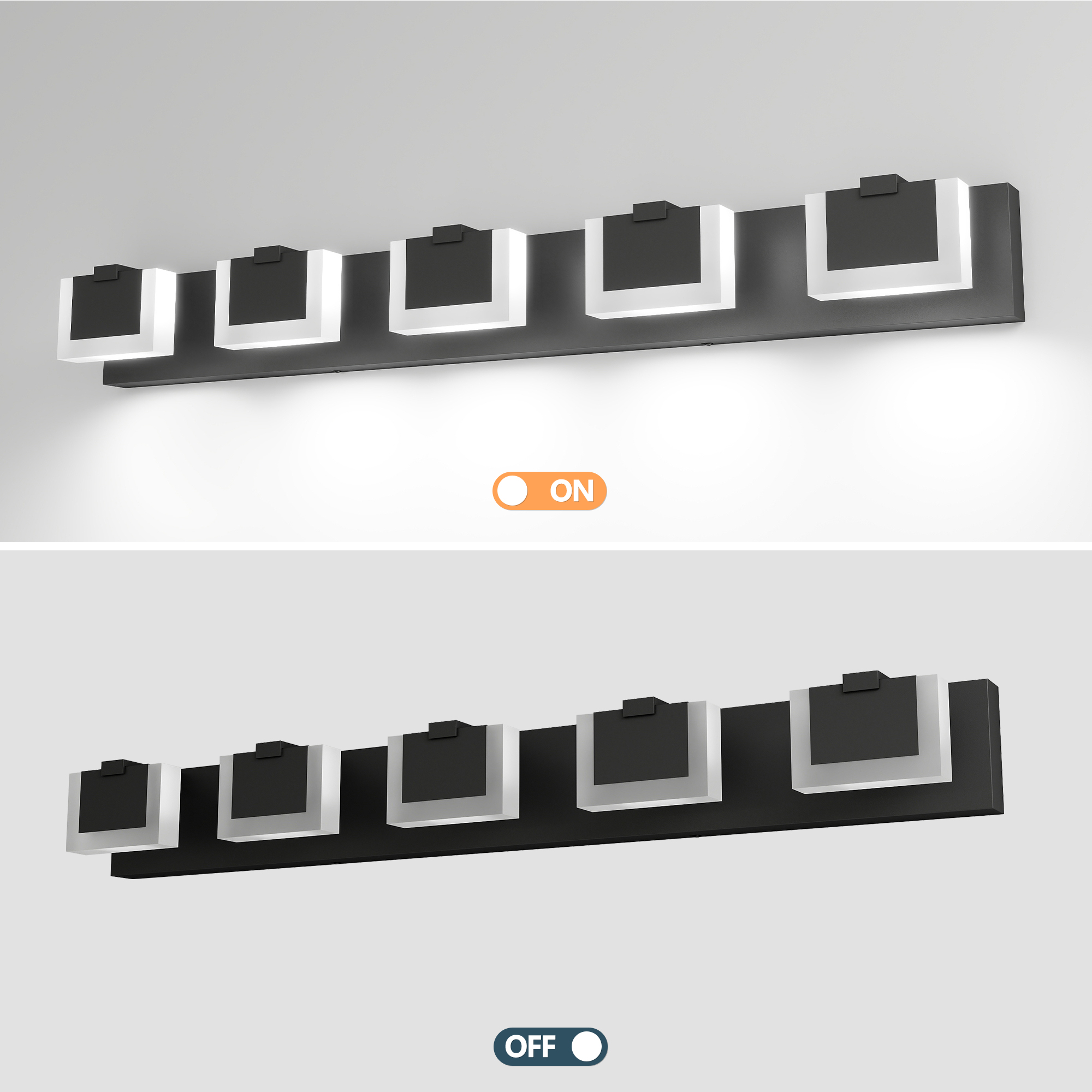 NEOSGO 5 Lights Modern Black Vanity Light Up and Down Black Bathroom Lighting Fixtures LED Bathroom Wall Light Over Mirror 6000K is designed to improve daily bathroom routines with a clearer mirror area and more useful lighting around the vanity space. The product presentation suggests a modern wall-mounted mirror intended for grooming, makeup, skincare, shaving, and other tasks that benefit from more even front-facing light. It works especially well in bathrooms, powder rooms, and remodeled vanity areas where customers want the mirror to provide both practical function and a cleaner visual upgrade. This type of mirror is a strong fit for shoppers looking to make the room feel brighter, more modern, and easier to use every day. Overall size is approximately 39.76 x 6.89 x 6.3 inches with a listed weight of 11.2. The current listing includes 9 product images, which help clarify the product shape, proportions, and visual placement in a real room setting.