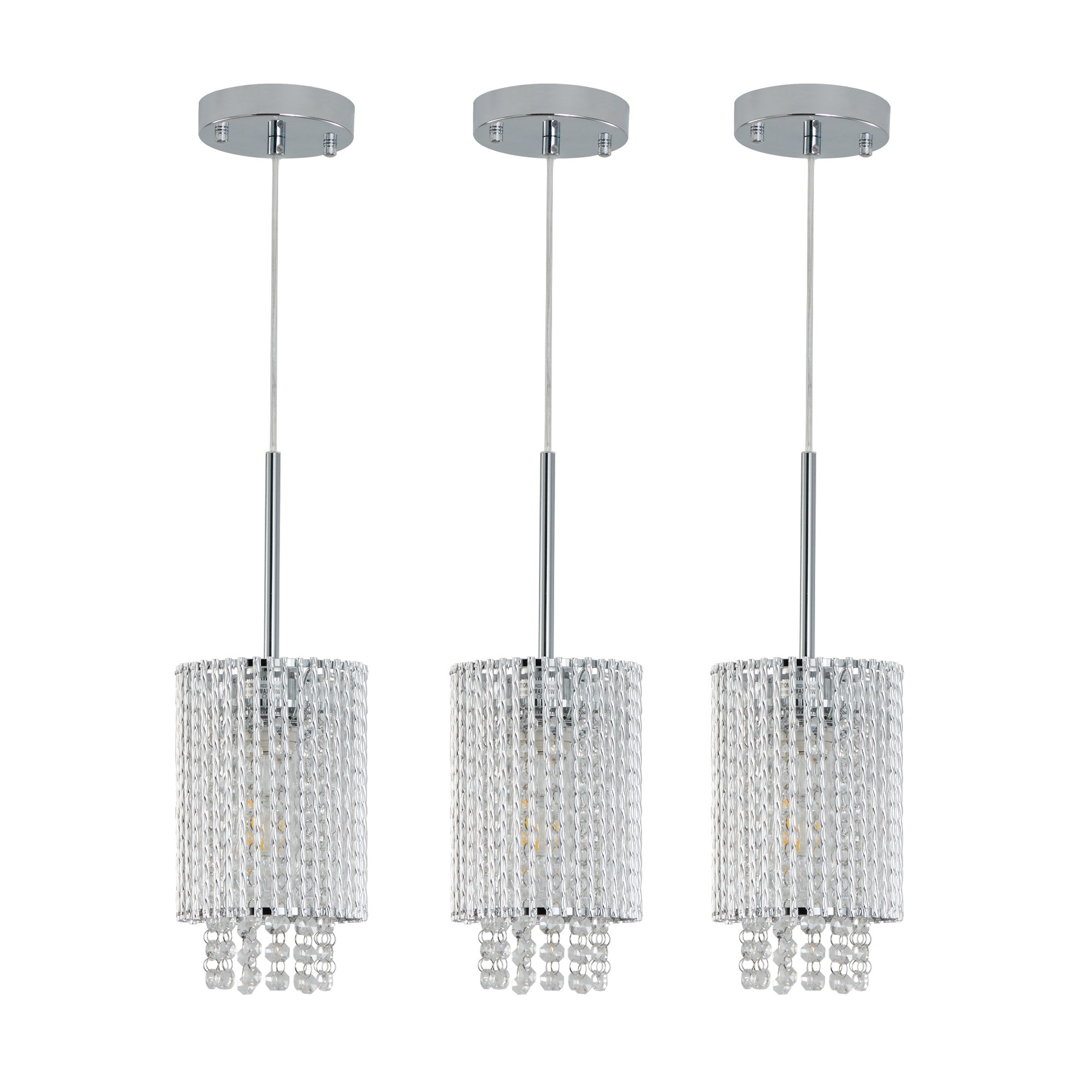 5" Modern Crystal Pendant Light 3-Pack Adjustable Chrome Hanging Ceiling Fixture with Clear Beads, Elegant Design for Kitchen Island, Dining Room, or Living Room (No Bulbs)