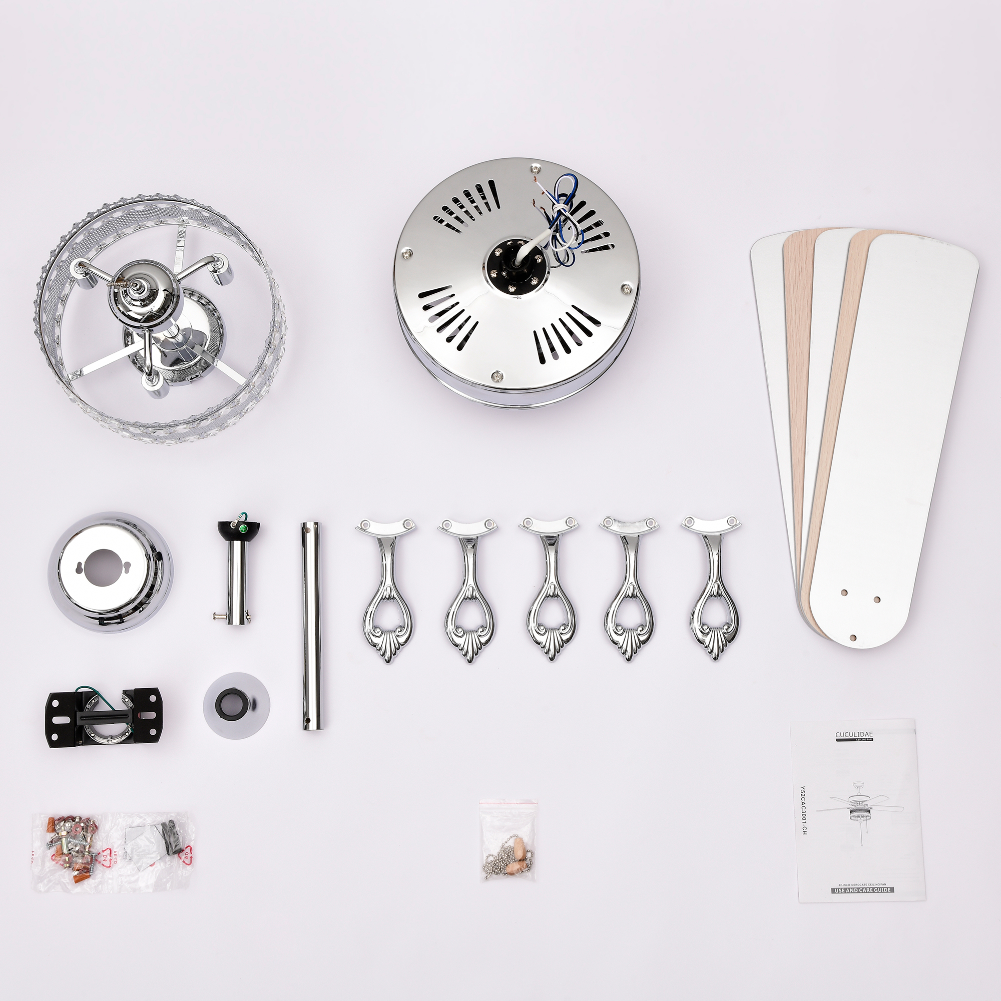 52'' Classical Crystal Ceiling Fan Lamp 5 Reversible Blades for Living Room, Dining Room, Bedroom, Family Room, Chrome (Hand Pull Chain)