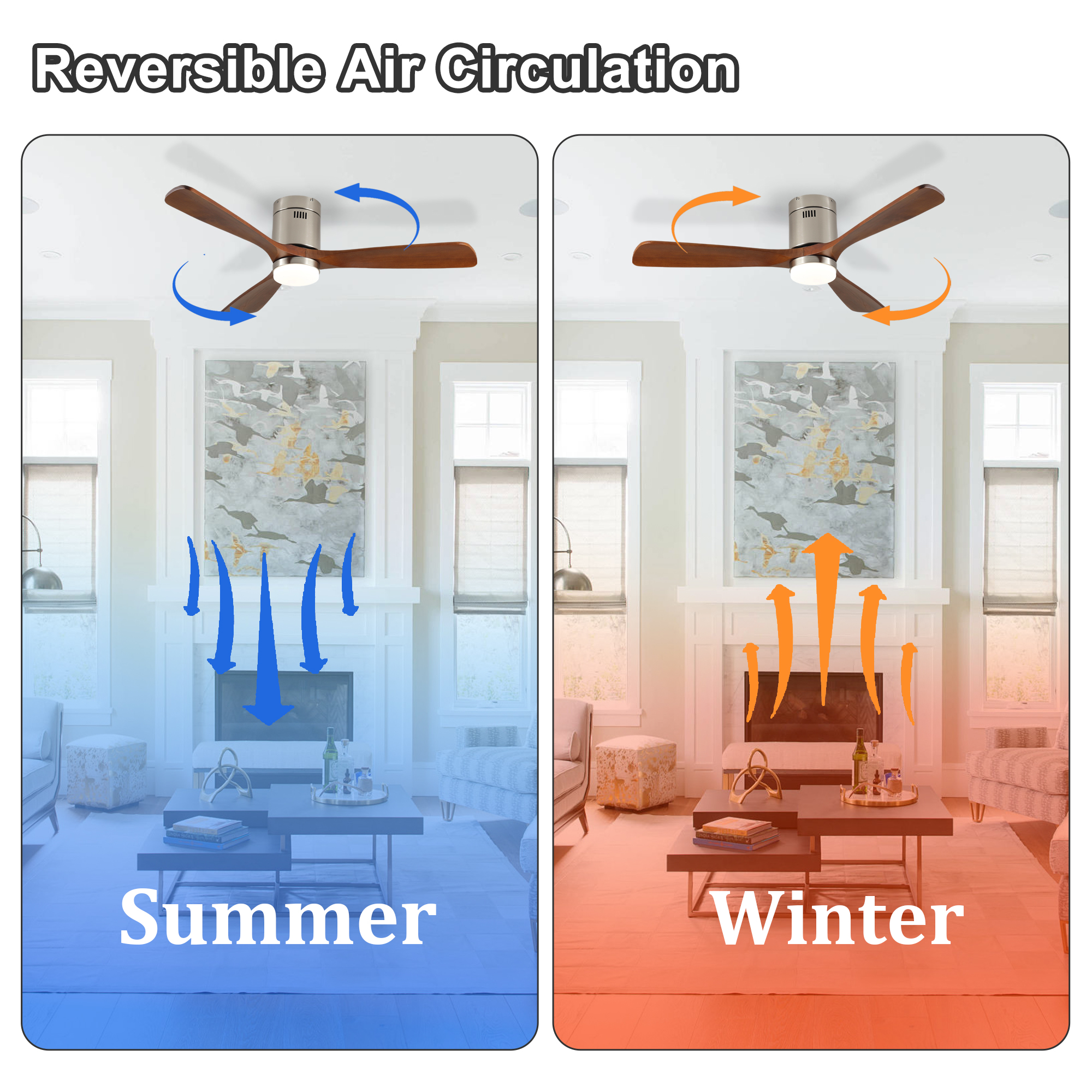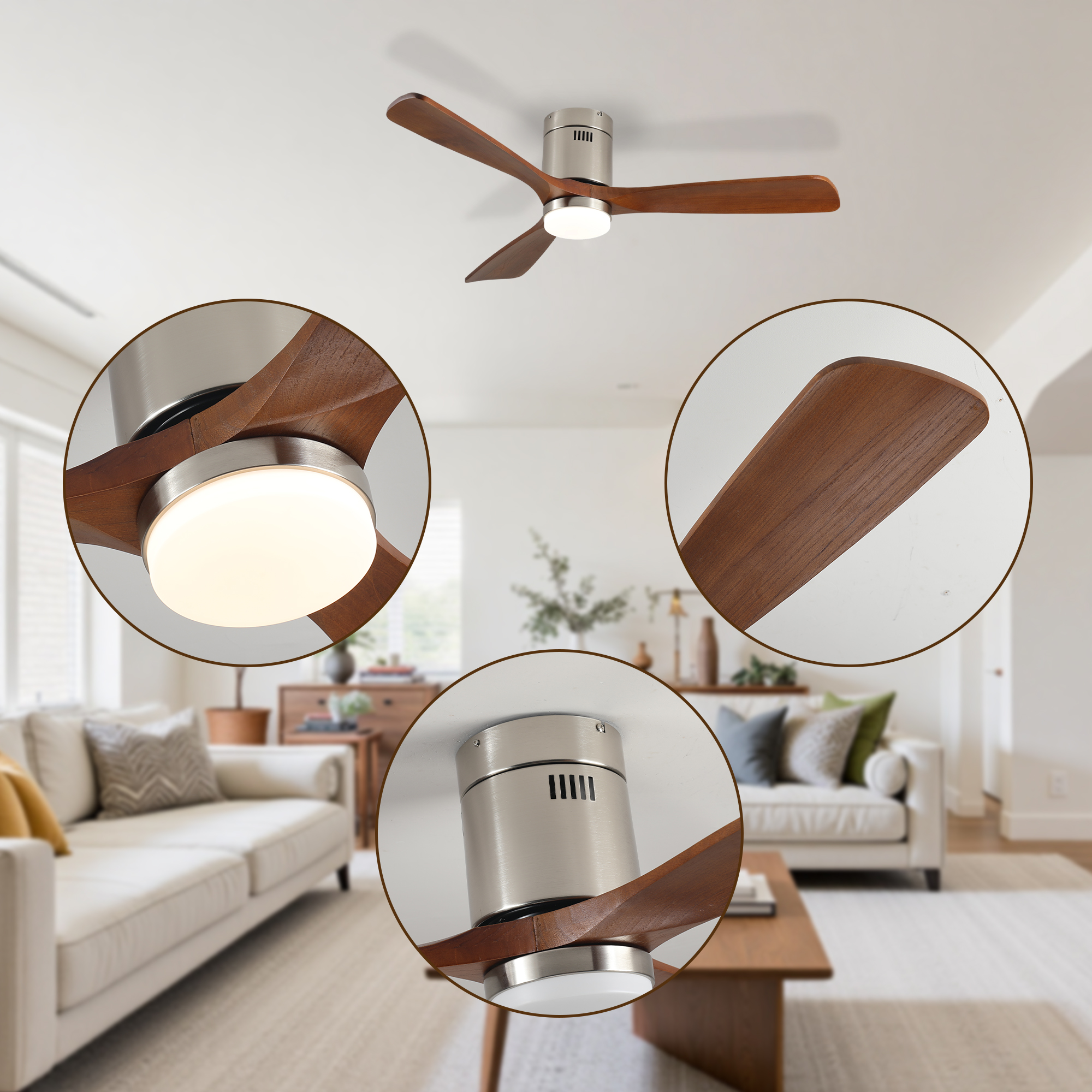 52 Inch Ceiling Fan with Light, 3 Light Walnut Solid Wood Blades,Remote Control,6-speed Reversible DC Motor for Bed Room,Dining Room,Living Room.