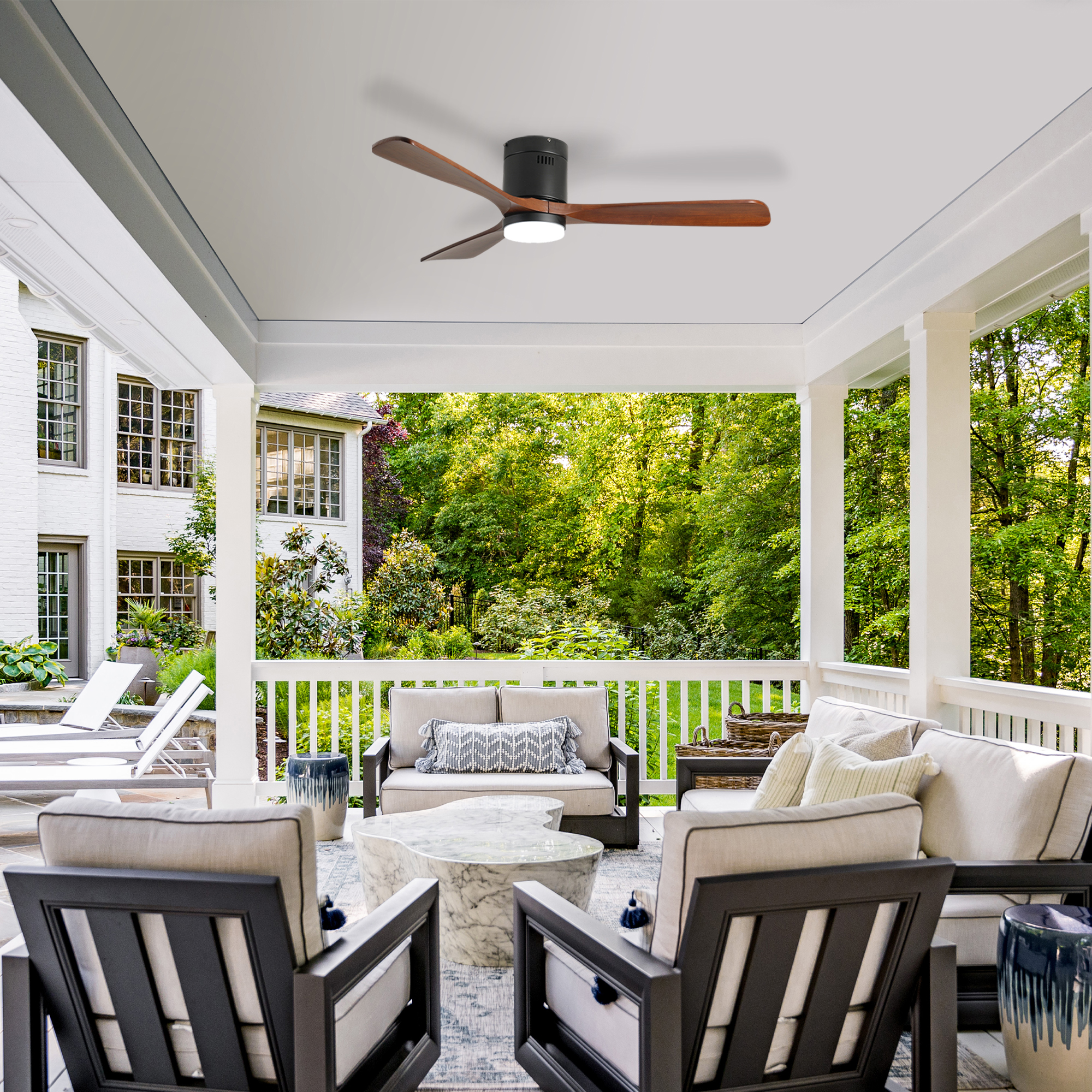 NEOSGO 52-inch Ceiling Fan with Light, 3 Wood Blades, Remote Control, Reversible DC Motor for Living Room (Black+Dark Walnut) combines ceiling lighting and airflow in one fixture, making it useful for rooms that need everyday comfort as well as a more finished overhead look. The caged or close-to-ceiling style shown in the product presentation helps it work well in spaces where customers want decorative character without the visual bulk of a larger hanging fixture. It is well suited for kitchens, dining rooms, bedrooms, living areas, and similar spaces where air movement, ambient light, and a coordinated design all matter. This is a practical choice for customers who want to save ceiling space while improving comfort and keeping the room visually polished. Overall size is approximately 34.84 x 8.46 x 8.46 inches with a listed weight of 12.68. The current listing includes 9 product images, which help clarify the product shape, proportions, and visual placement in a real room setting.