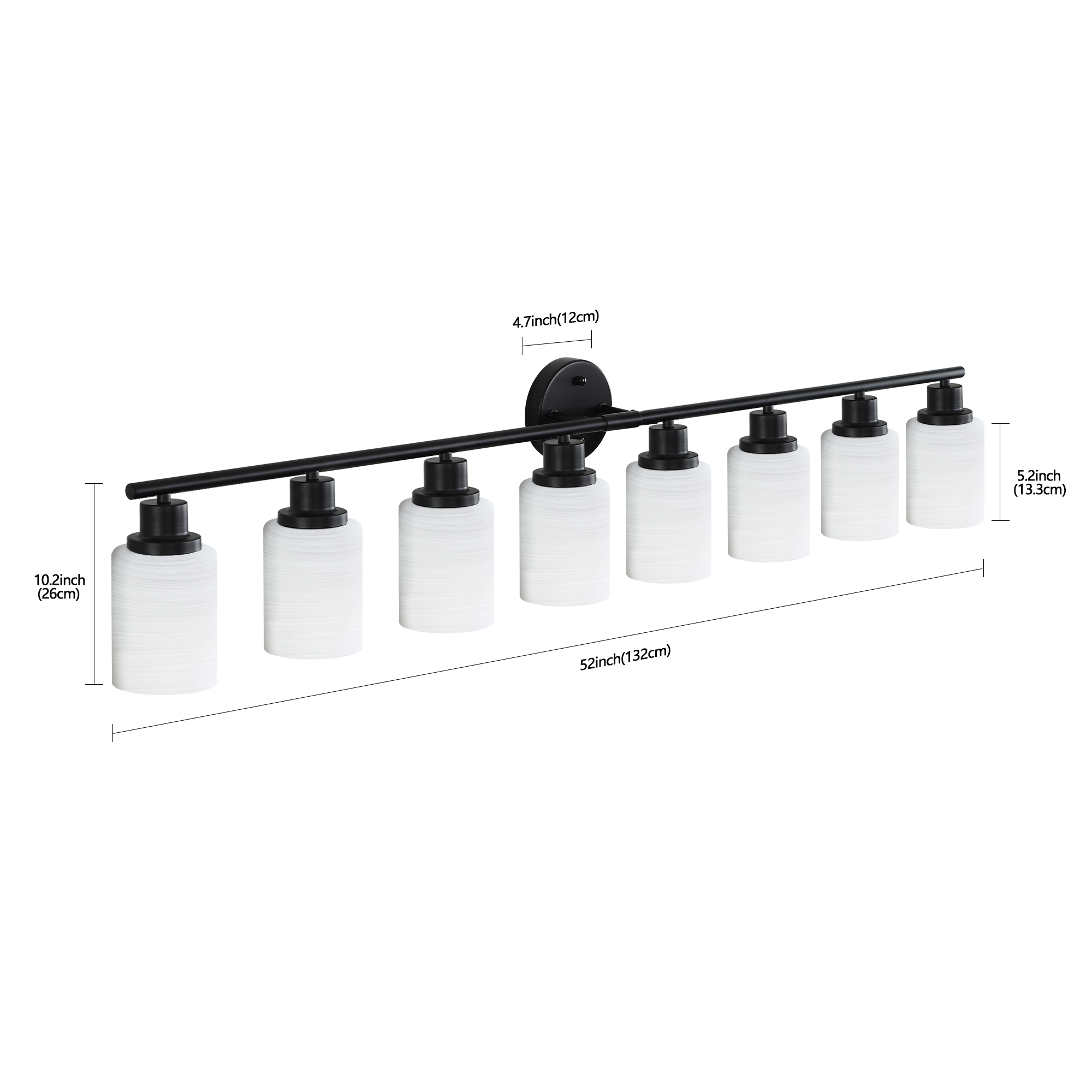 52" Modern 8-Light Vanity Bathroom Mirror Light, Frosted White Glass with Black Iron Frame, Contemporary Wall Sconce for Bedroom, Bathroom, and Dressing Room (Bulb Not Included)