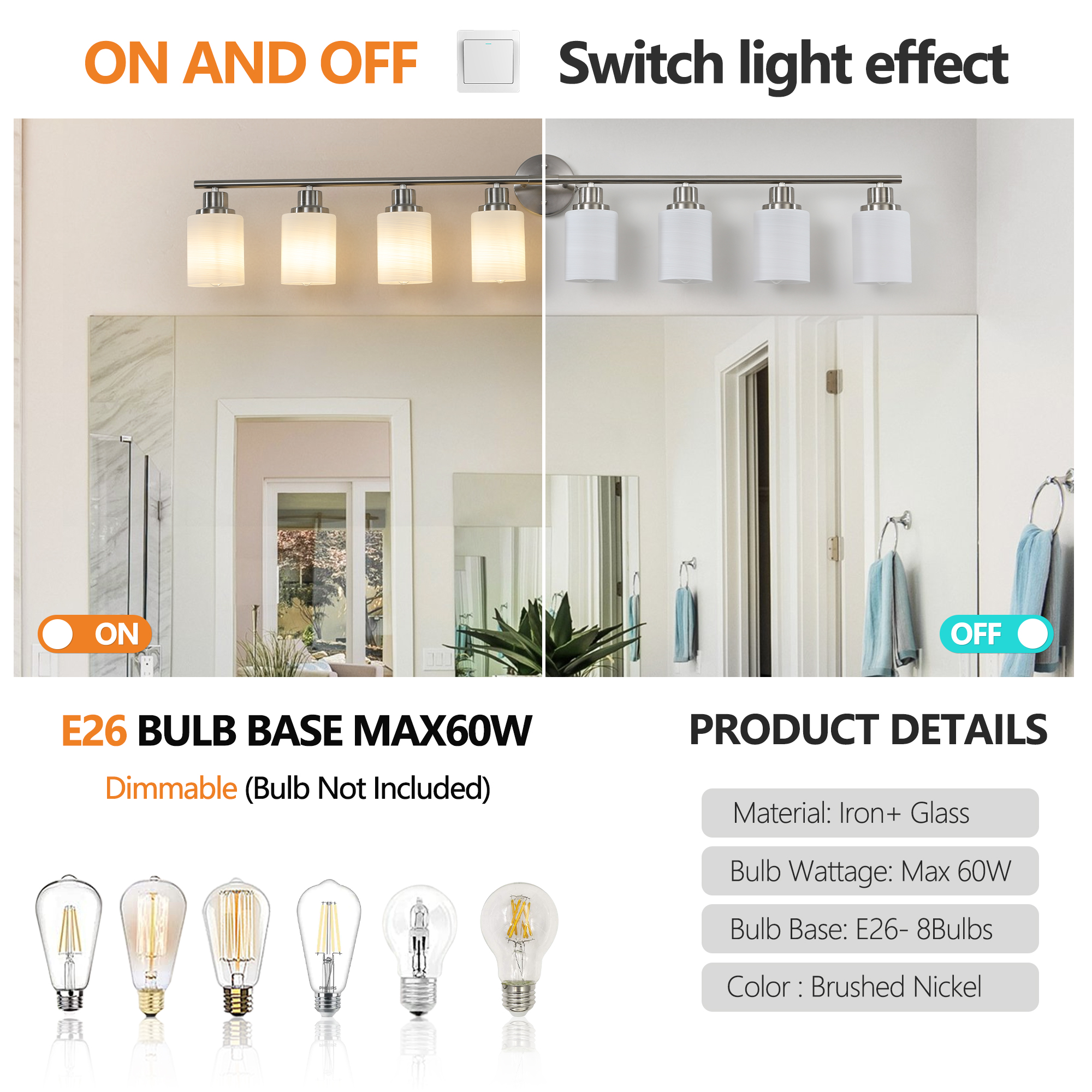 NEOSGO 52" Modern 8-Light Vanity Wall Sconce, Brushed Nickel Finish with Frosted Glass Shades for Bathroom or Hallway Lighting (No Bulbs) is intended to provide focused wall lighting while also adding decorative detail to the surrounding space. This style is especially useful near mirrors, over bathroom vanities, along hallways, in bedrooms, or in accent areas that benefit from directed light rather than relying only on ceiling fixtures. Based on the product presentation, it offers a practical mix of daily illumination and visual styling, which helps the room feel more complete and intentionally designed. It is a good option for customers who want better task lighting together with a more refined finished look on the wall. Overall size is approximately 27.17 x 14.57 x 8.27 inches with a listed weight of 9.9. The current listing includes 9 product images, which help clarify the product shape, proportions, and visual placement in a real room setting.