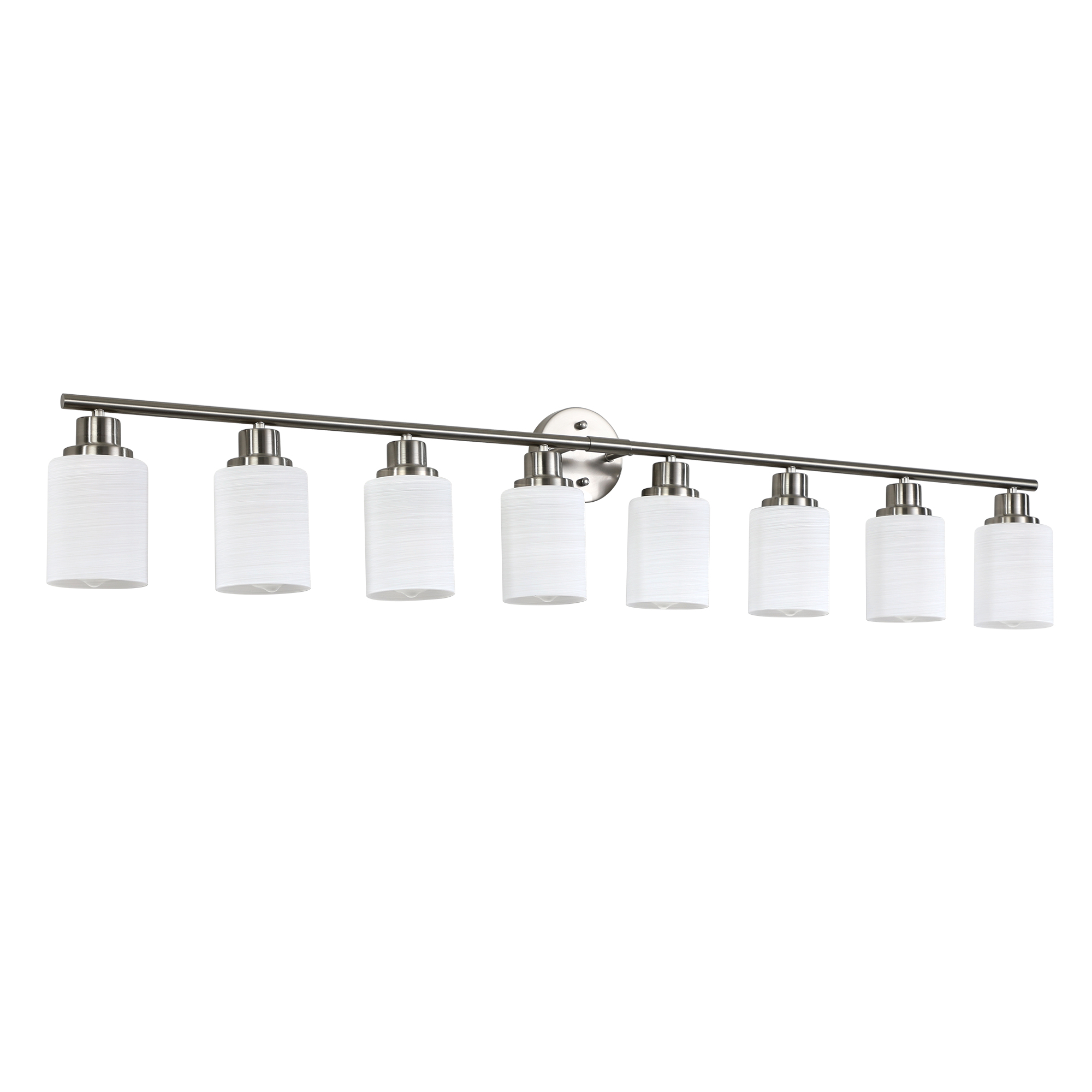 52" Modern 8-Light Vanity Wall Sconce, Brushed Nickel Finish with Frosted Glass Shades for Bathroom or Hallway Lighting (No Bulbs)