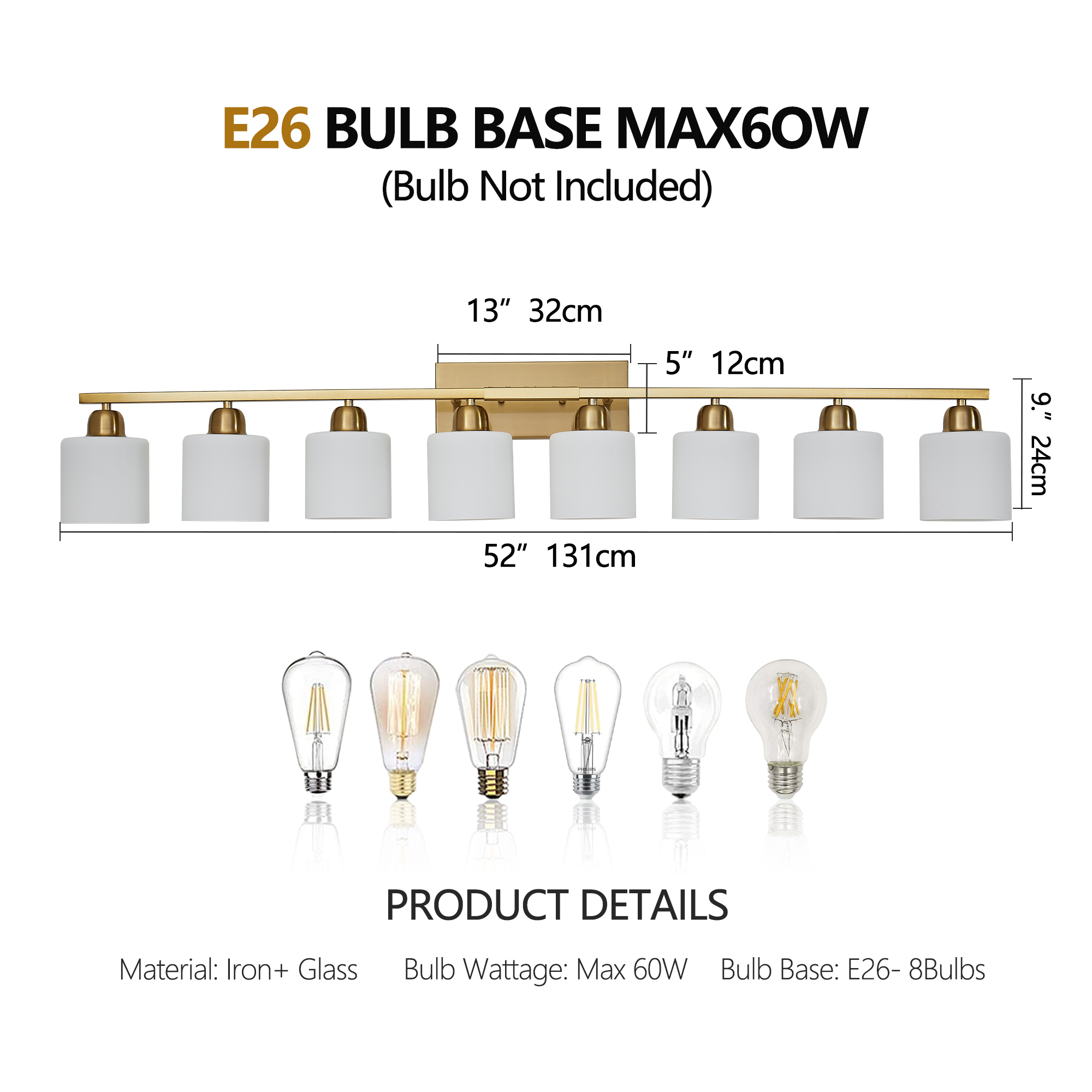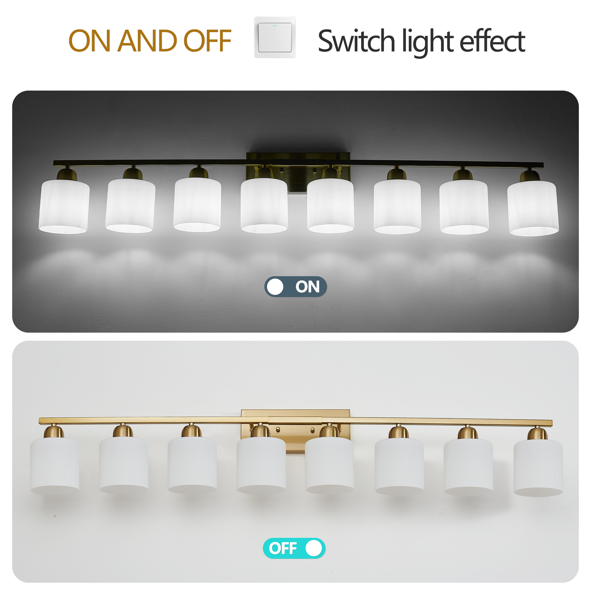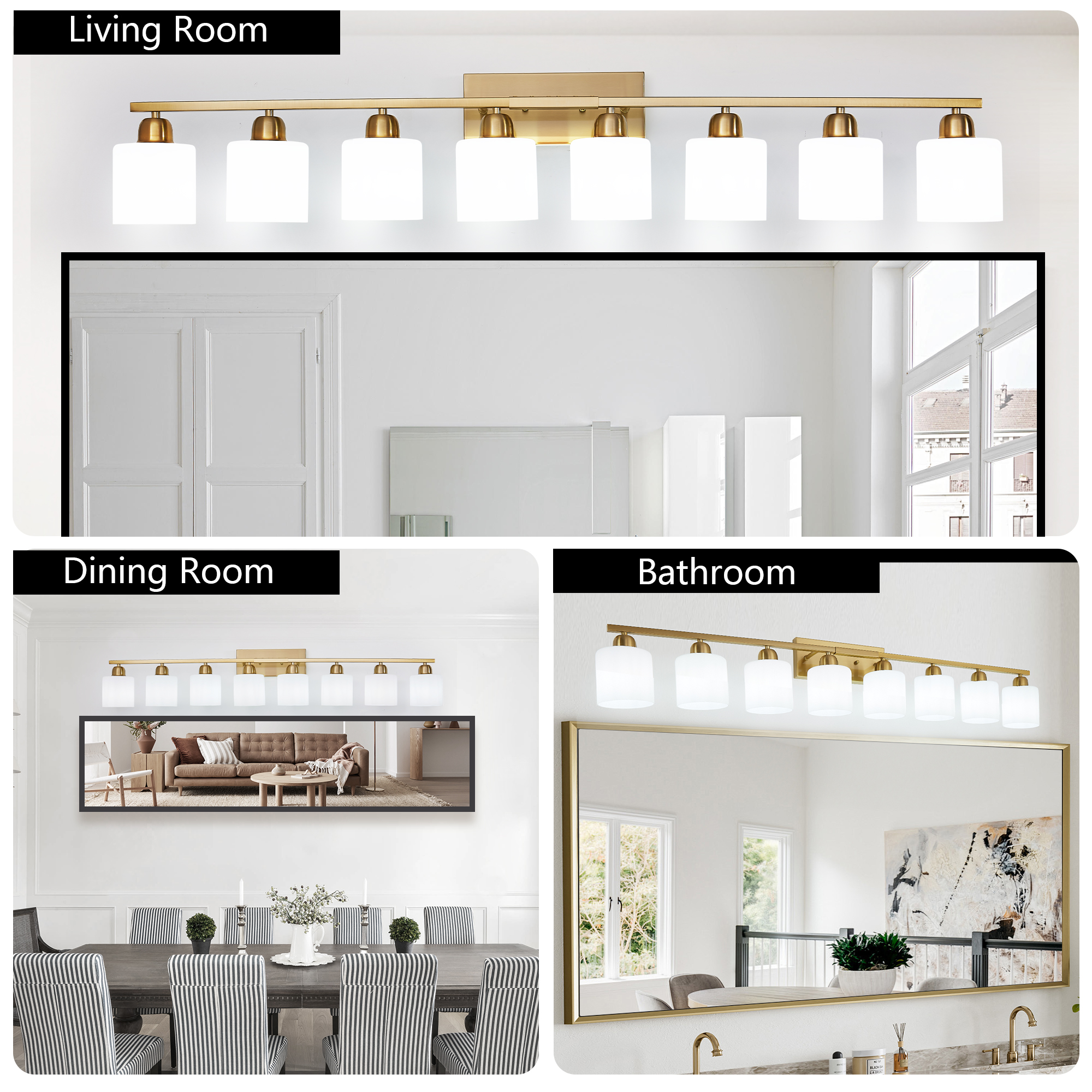 NEOSGO 52inch Gold Bathroom Light Fixtures, Modern Bathroom Vanity Light with Milky White Glass Shade, Gold Wall Lamp Sconces for Mirror Bedroom, Living Room Hallway is designed to improve daily bathroom routines with a clearer mirror area and more useful lighting around the vanity space. The product presentation suggests a modern wall-mounted mirror intended for grooming, makeup, skincare, shaving, and other tasks that benefit from more even front-facing light. It works especially well in bathrooms, powder rooms, and remodeled vanity areas where customers want the mirror to provide both practical function and a cleaner visual upgrade. This type of mirror is a strong fit for shoppers looking to make the room feel brighter, more modern, and easier to use every day. Overall size is approximately 28.35 x 16.54 x 8.27 inches with a listed weight of 10.9. The current listing includes 9 product images, which help clarify the product shape, proportions, and visual placement in a real room setting.