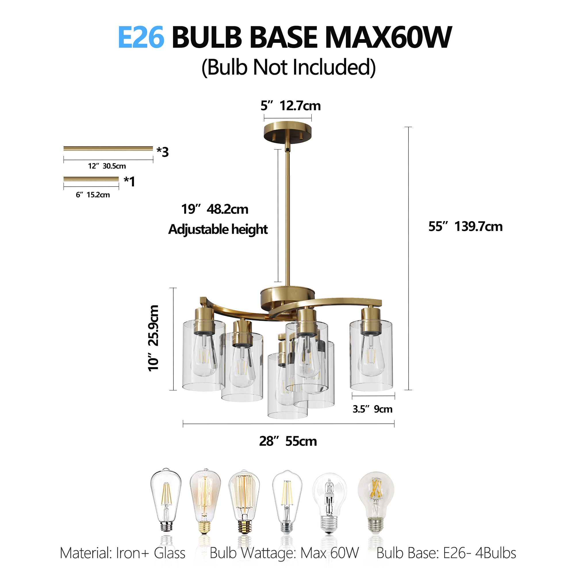 NEOSGO 6-Light Gold Chandeliers for Dining Room, Modern Kitchen Island Light Fixtures Over Table, Metal Hanging Pendant Lighting for Living Room Stairwell Entryway Bedroom, Clear Glass Shade is designed to serve as both a lighting source and a decorative focal point within the room. This type of fixture is especially effective above dining tables, in entryways, and in living spaces where the customer wants overhead light with stronger visual impact. The product presentation suggests a style-driven fixture that helps define the ceiling area and gives the space a more elevated, finished character. It is a strong fit for customers who want lighting that contributes to the overall look of the room rather than functioning as a utility piece alone. Overall size is approximately 20.08 x 18.11 x 8.27 inches with a listed weight of 9.3. The current listing includes 8 product images, which help clarify the product shape, proportions, and visual placement in a real room setting.