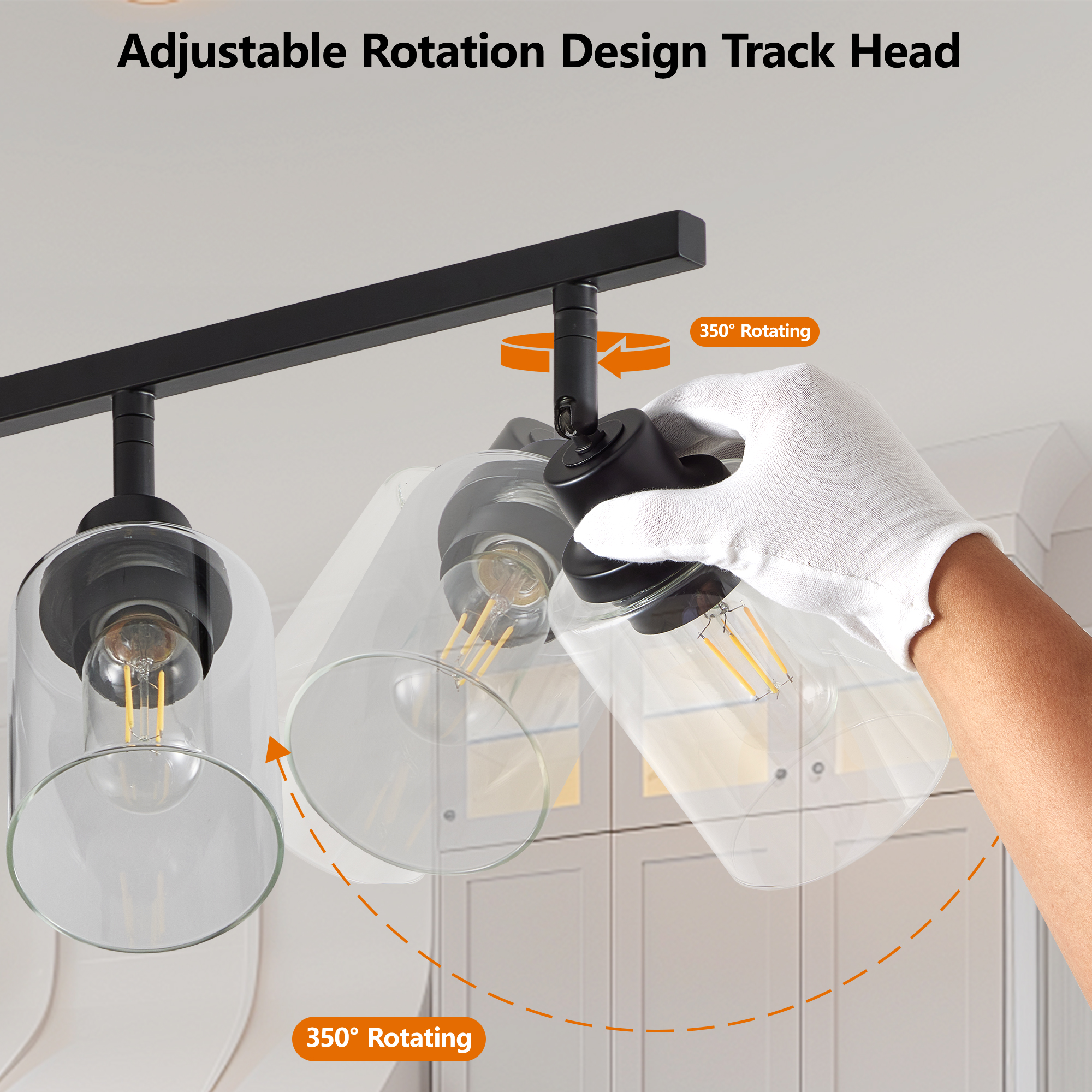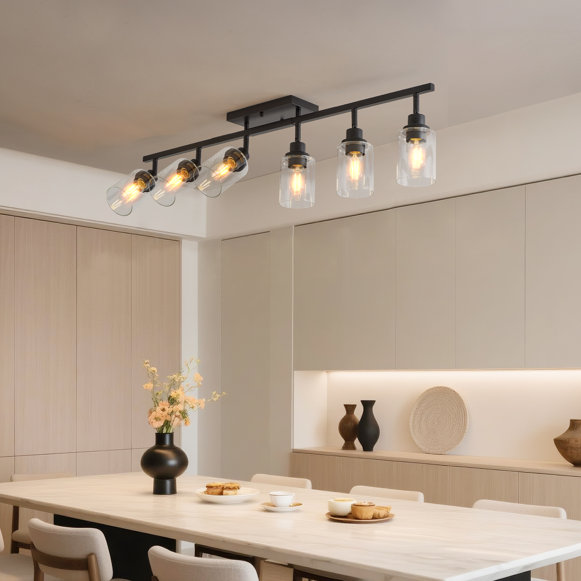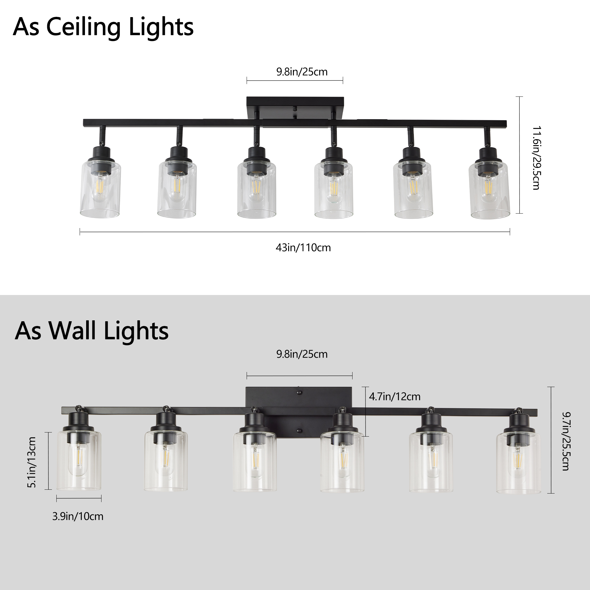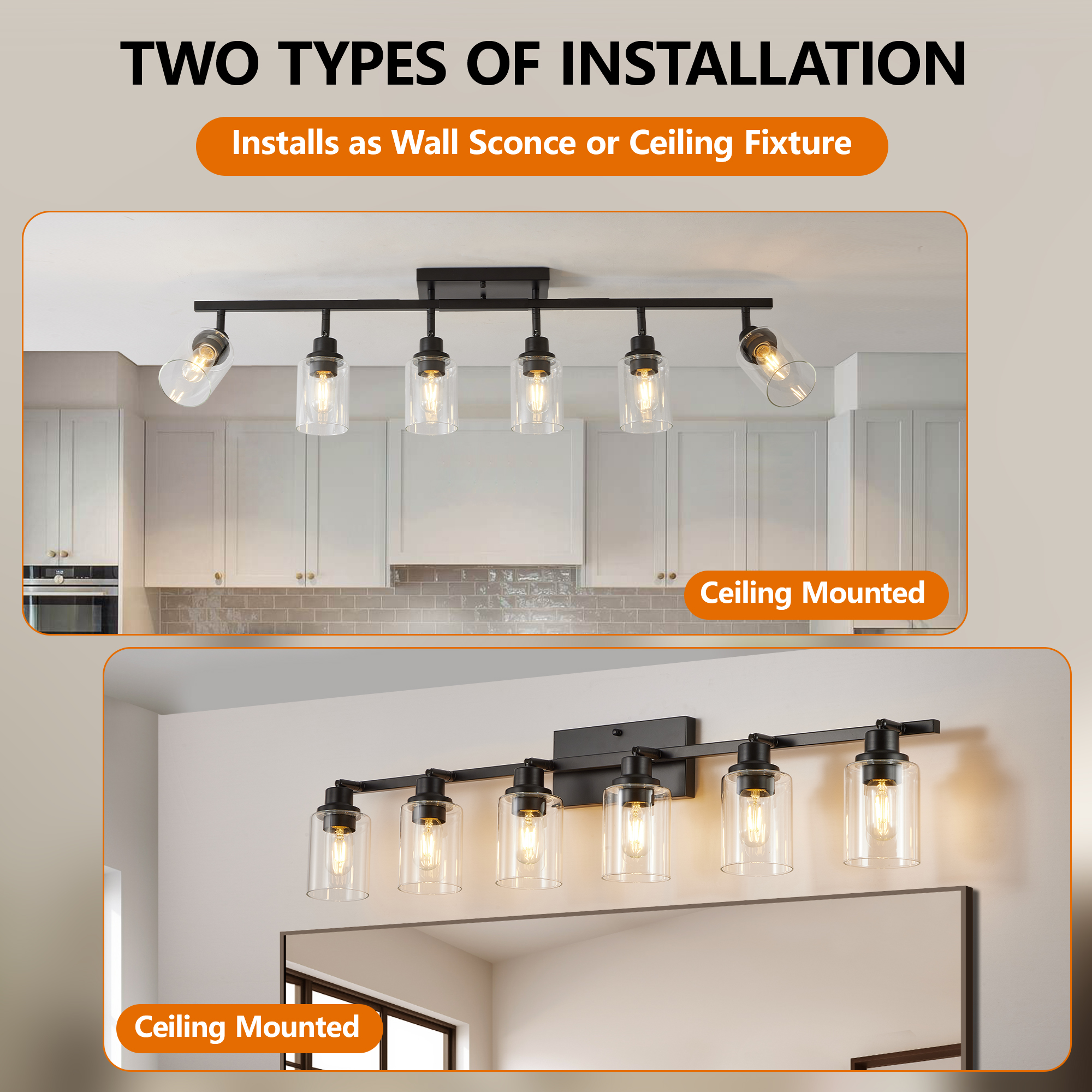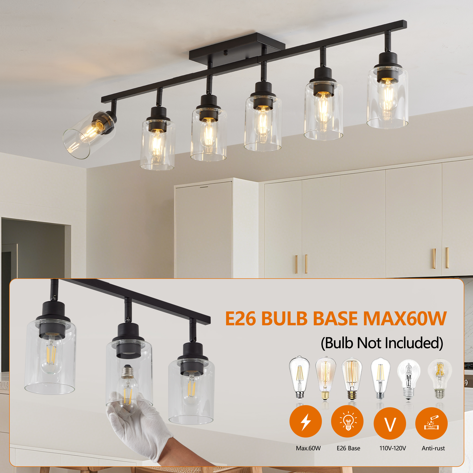 6-Light Track Lighting Kit Black Track Lighting Fixtures Bathroom Wall Sconces Ceiling Mount Kitchen Tracking Lights, Rotatable Spotlight with Clear Glass Shade for Kitchen Shop Hallway