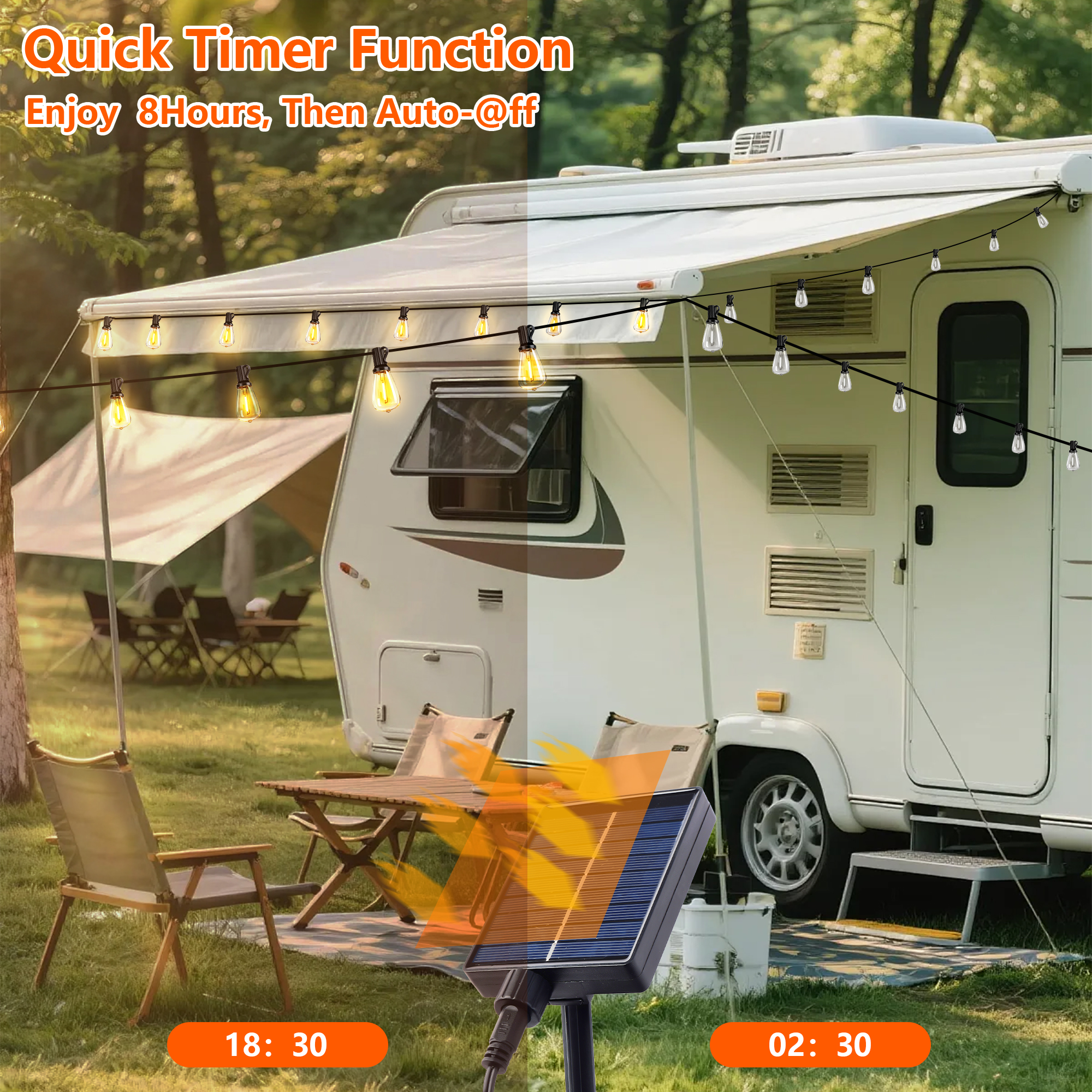 60 FT Solar String Lights Waterproof,Patio Lights Solar Powered with Remote & USB Port 15 LED Shatterproof Bulbs 3 Light Modes, Dimmable Solar Light for Camping Backyard Garden