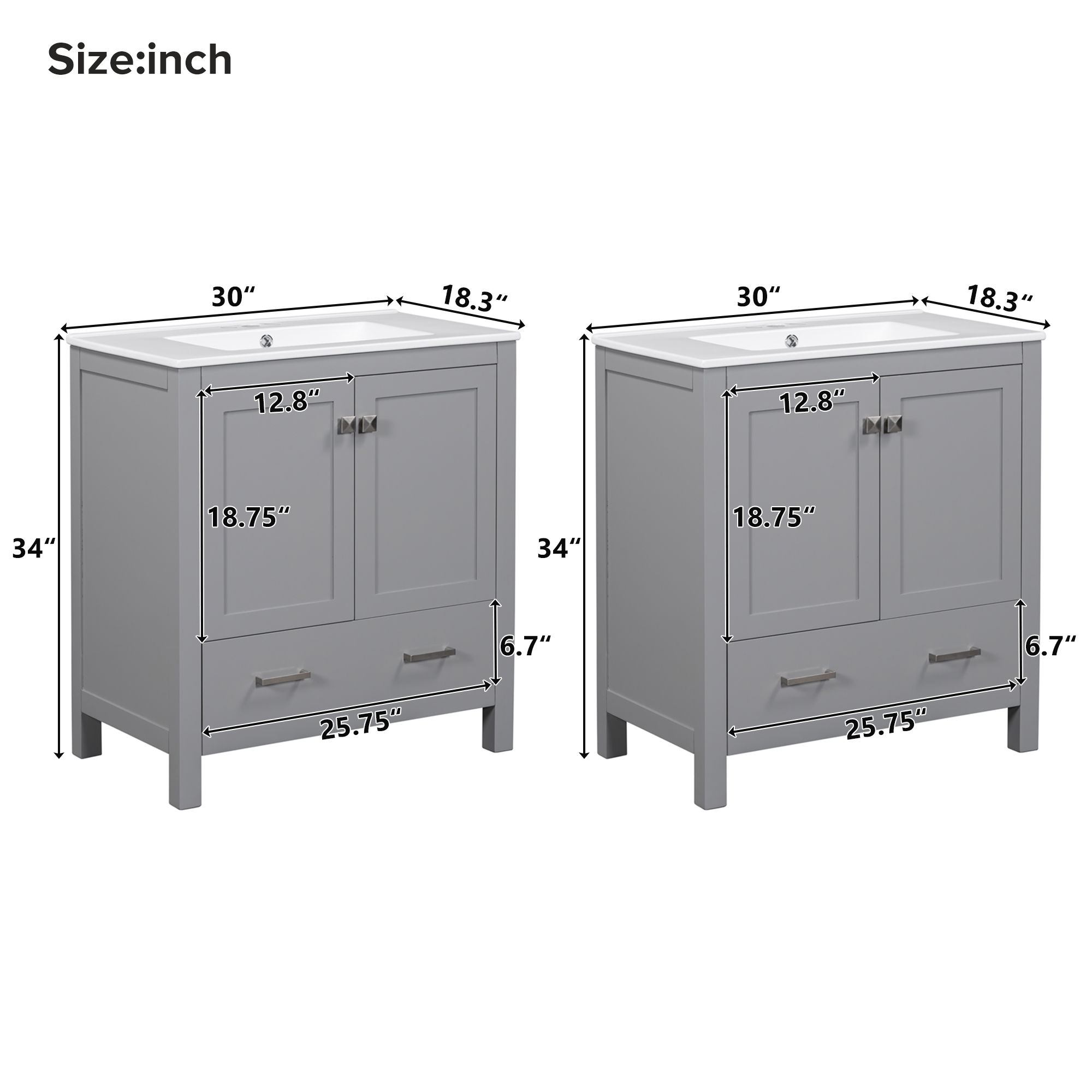 Vstory 60" Grey Bathroom Vanity Set with Double Vanities (Separate), Double Ceramic Sinks, Storage Shelf, and Divided Drawers (Mirror not included)– Modern Bathroom Solution for Spacious Bathrooms. Designed to provide practical task lighting around a vanity or bathroom mirror while supporting everyday grooming routines. Material: Solid Wood+MDF. Product dimensions and weight: length 18.3, width 60, height 34, weight 179.9.