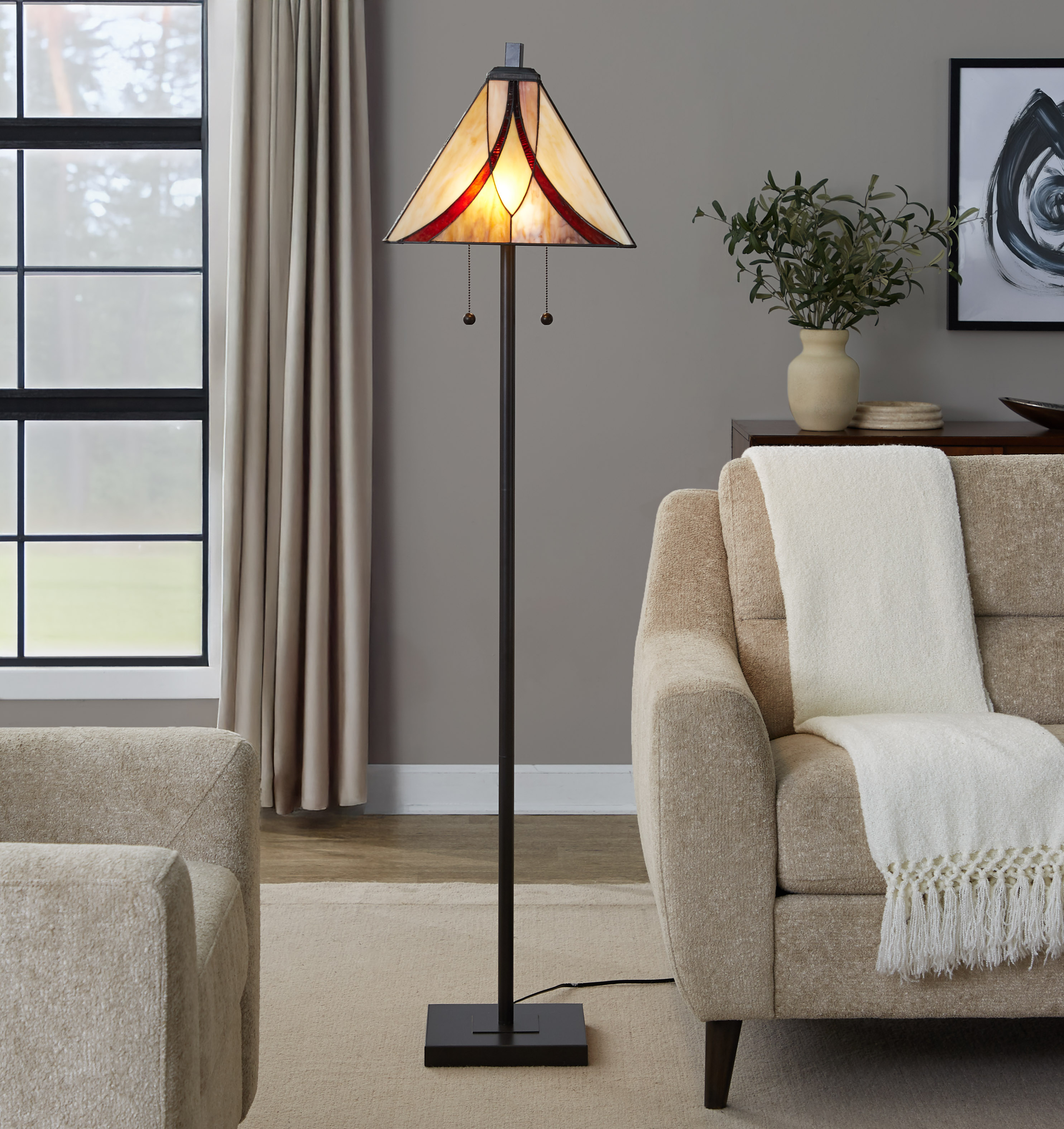 NEOSGO 63" Floor Lamp in Oil Rubbed Bronze Metal with Brown and Cream Glass adds flexible freestanding lighting for spaces that need more usable light without changing the ceiling layout. This type of lamp is practical for reading corners, sofas, bedrooms, offices, and living rooms where customers want to layer light and create a more comfortable atmosphere. From the product presentation, it appears suitable for adding both functional illumination and a decorative presence that helps complete the room. It works well for shoppers who want a light source that is easy to place, visually useful, and supportive of everyday living. Overall size is approximately 19 x 19 x 19 inches with a listed weight of 21. The current listing includes 11 product images, which help clarify the product shape, proportions, and visual placement in a real room setting.