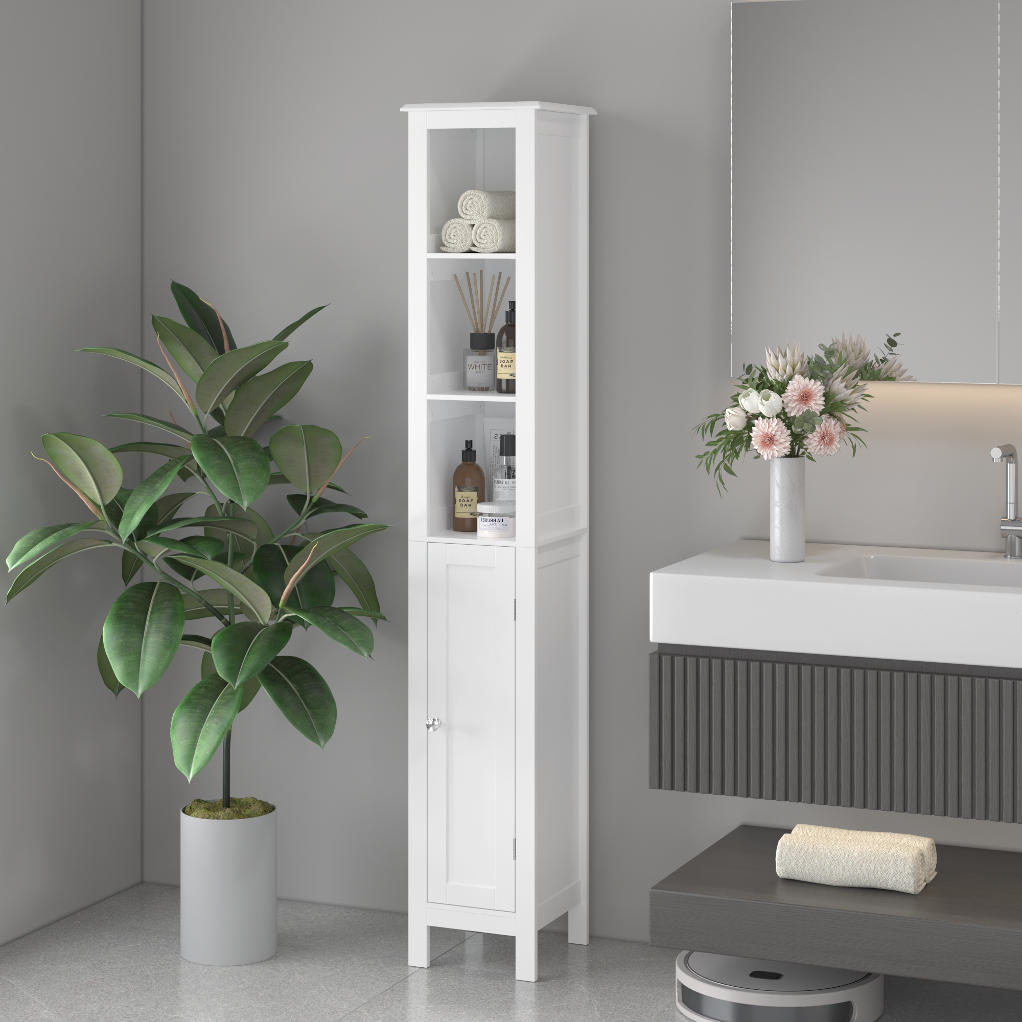 MOONRIVER 66.92" Tall Bathroom Storage Cabinet with Adjustable Shelves,Slim 1 Doors Freestanding Cabinet with Anti-Tip, Open compartments, for Home, Small Spaces, Bathroom,Kitchen, Living Room, White. Designed as a practical decorative lighting piece that supports everyday use while helping complete the look of the space. Material: MDF. Product dimensions and weight: length 37.99, width 14.37, height 9.06, weight 33.51.