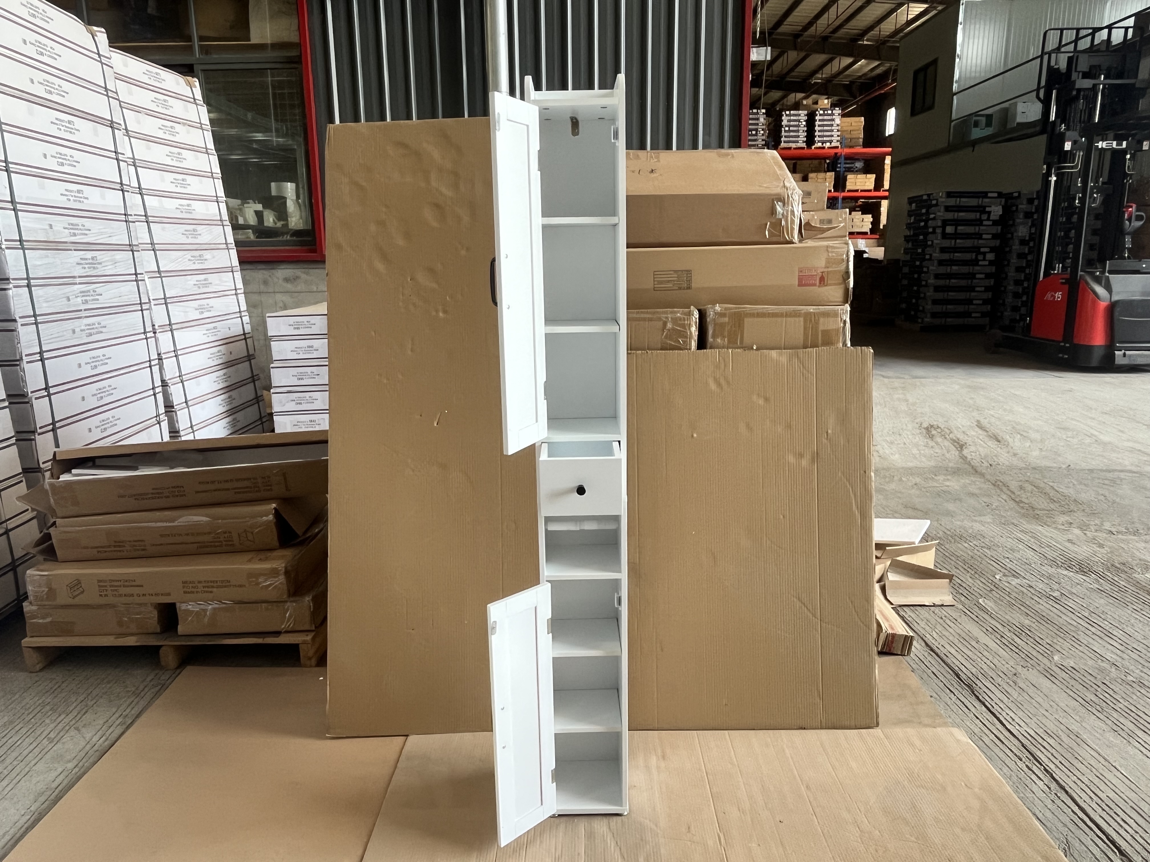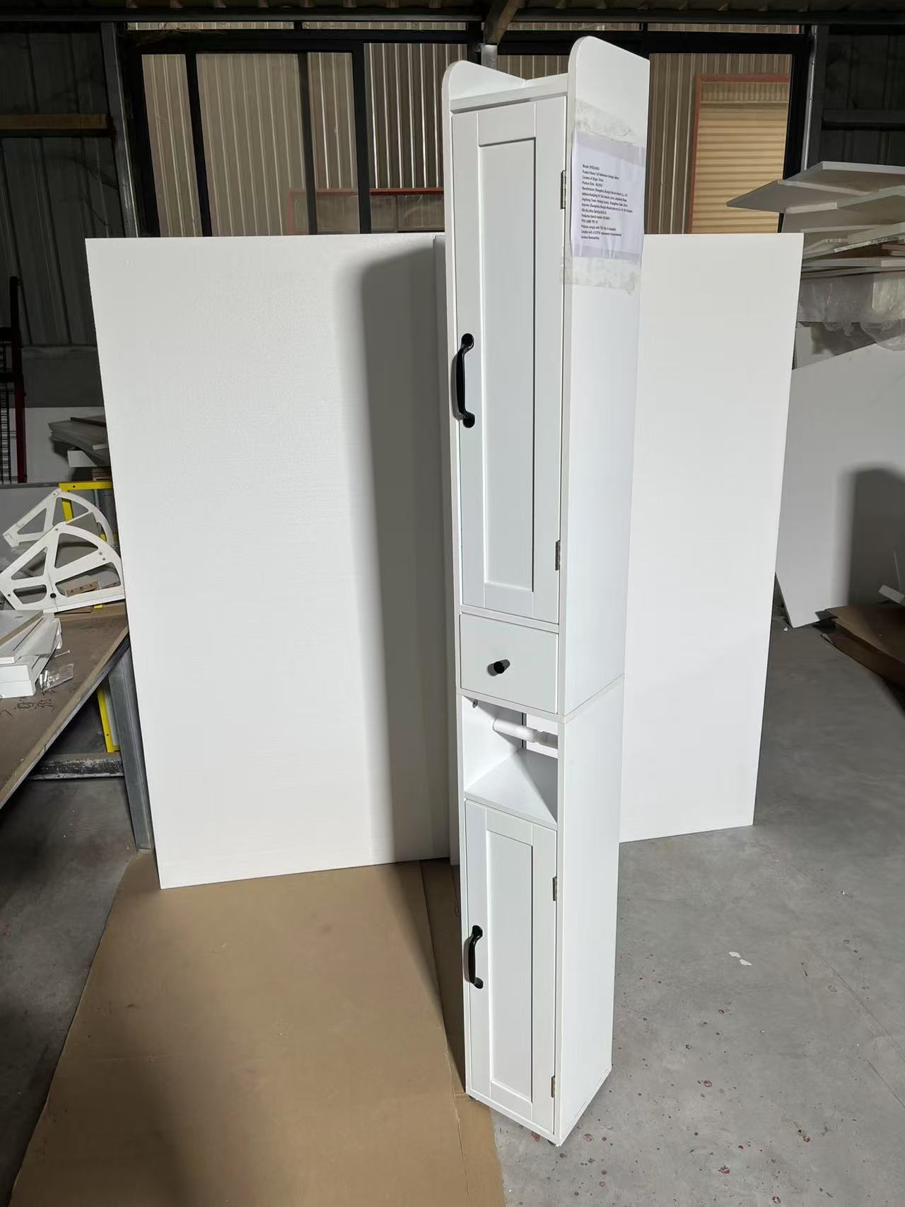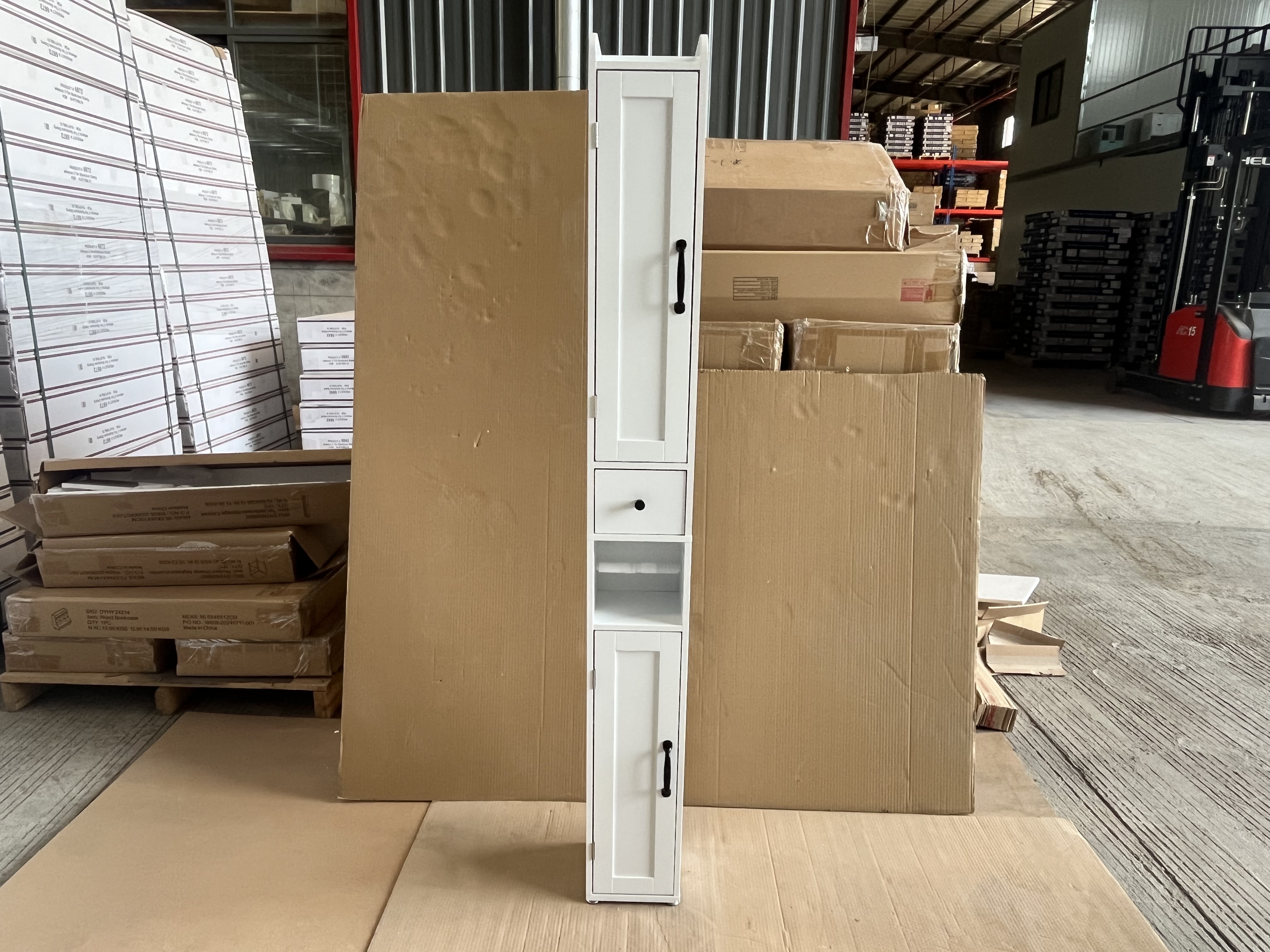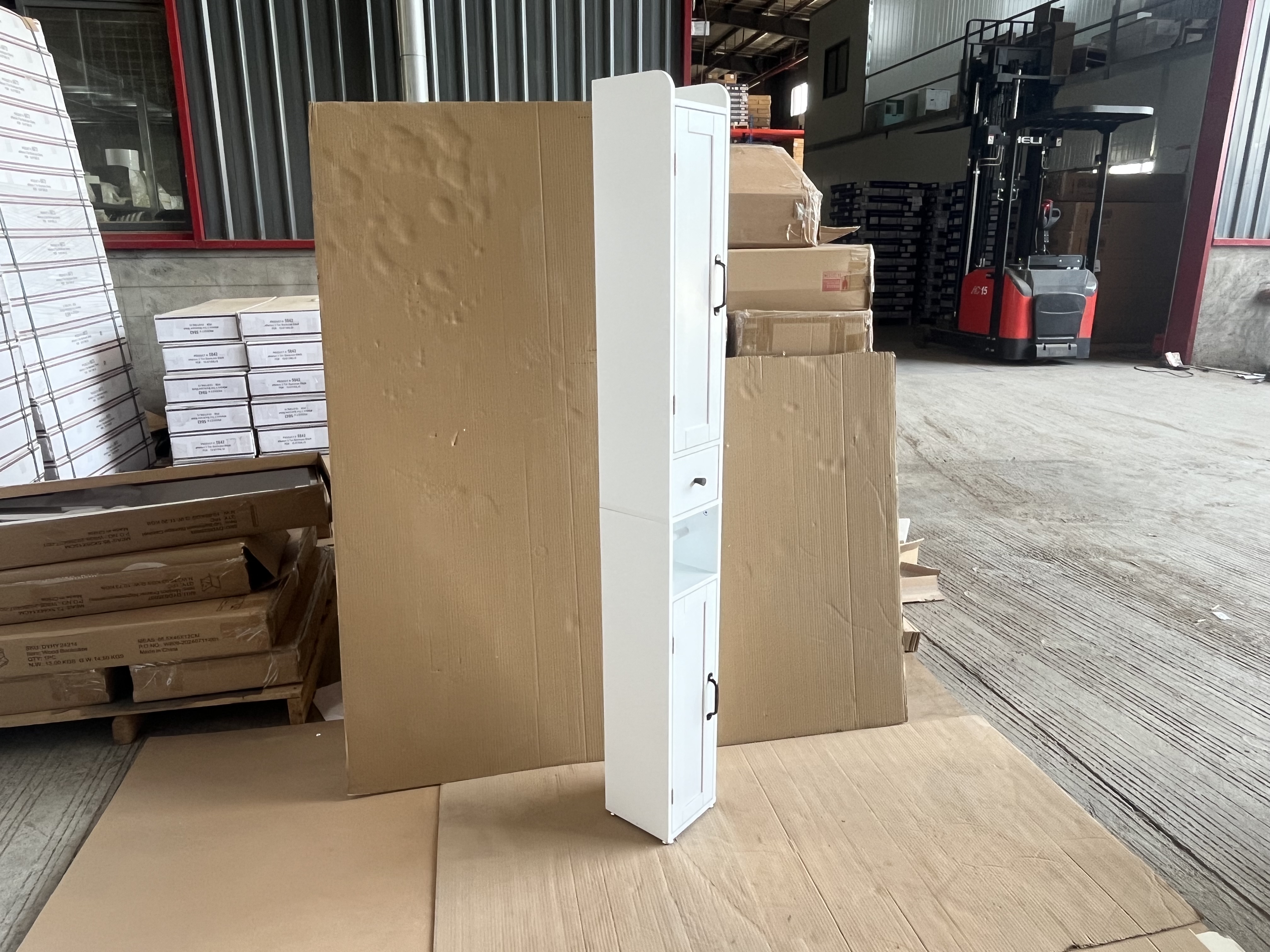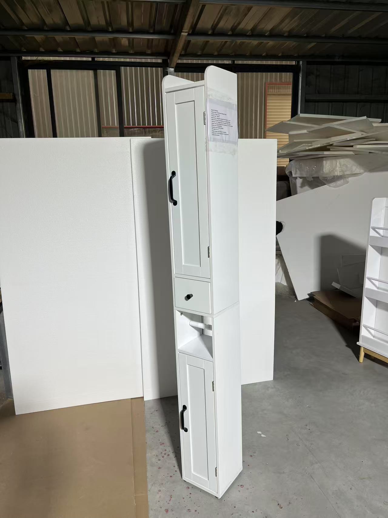 MOONRIVER 67.51" Tall Bathroom Storage Cabinet with Adjustable Shelves,Slim 2 Doors Freestanding Cabinet with Anti-Tip, Open compartments, for Home, Small Spaces, Bathroom,Kitchen, Living Room, White. Designed as a practical decorative lighting piece that supports everyday use while helping complete the look of the space. Material: MDF. Product dimensions and weight: length 37.6, width 9.84, height 5.91, weight 28.