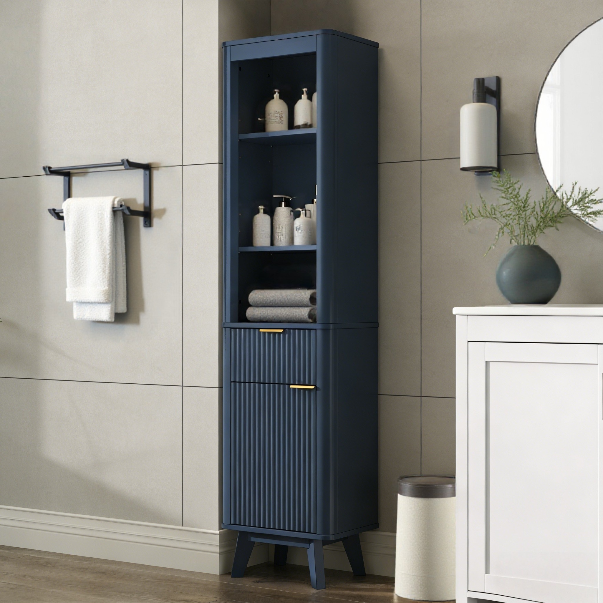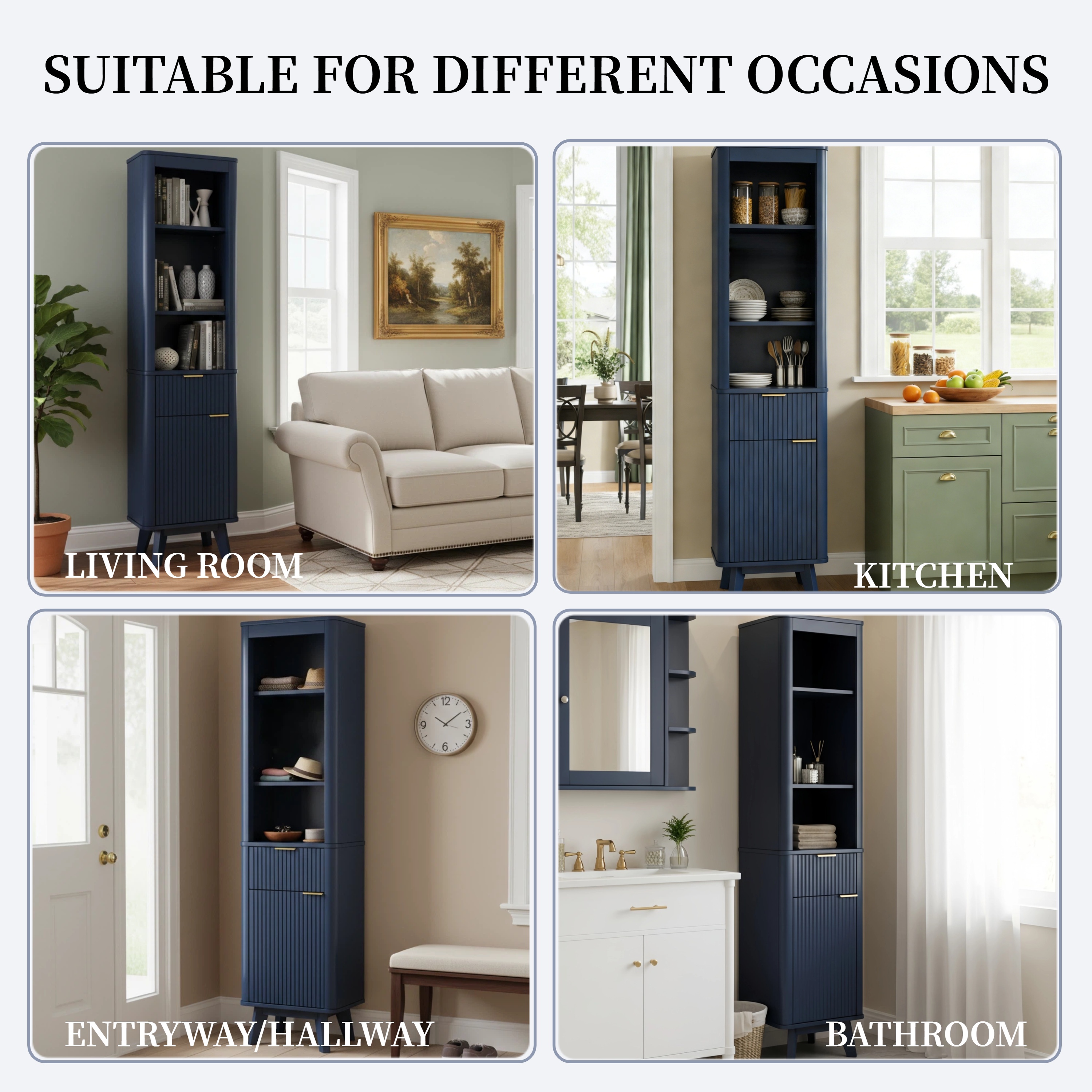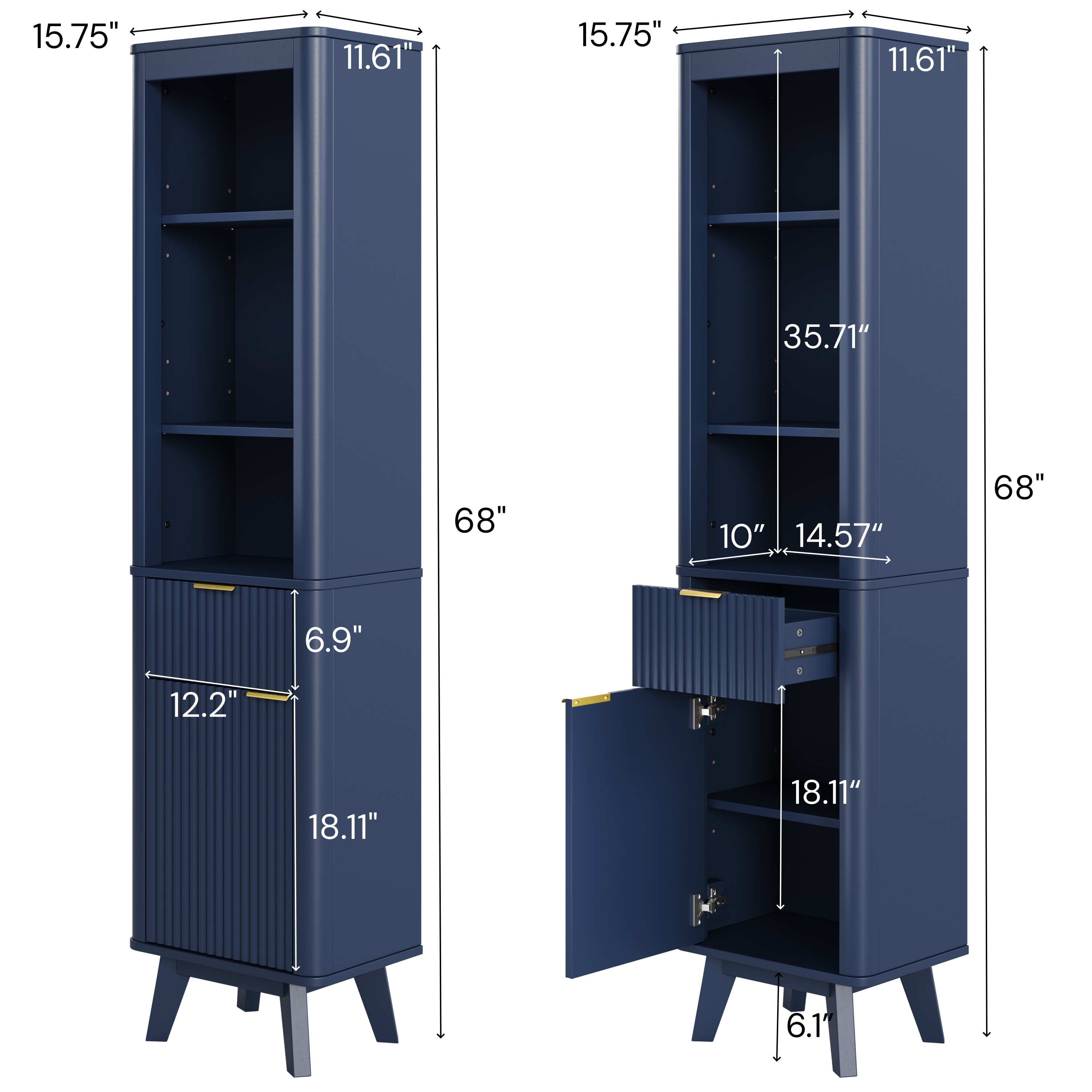 NH-ECHO 68" H Tall Bathroom Storage Cabinet with Adjustable Shelves and One Drawer & Door, Storage Cabinet for Bathroom, Living Room, Entryway & Kitchen, Blue. Designed as a practical decorative lighting piece that supports everyday use while helping complete the look of the space. Material: Particle Board+MDF. Product dimensions and weight: length 40.35, width 15.75, height 9.06, weight 54.45.