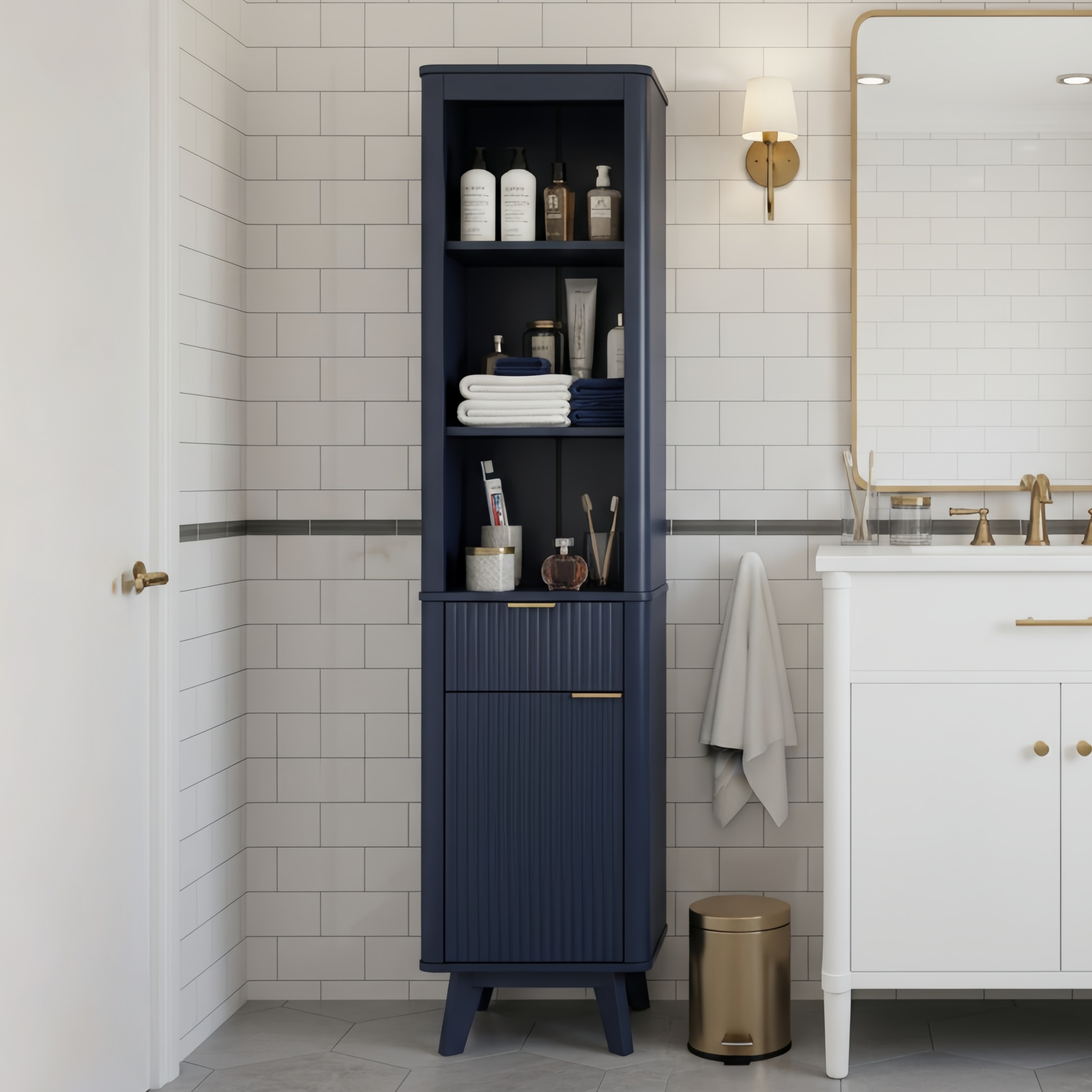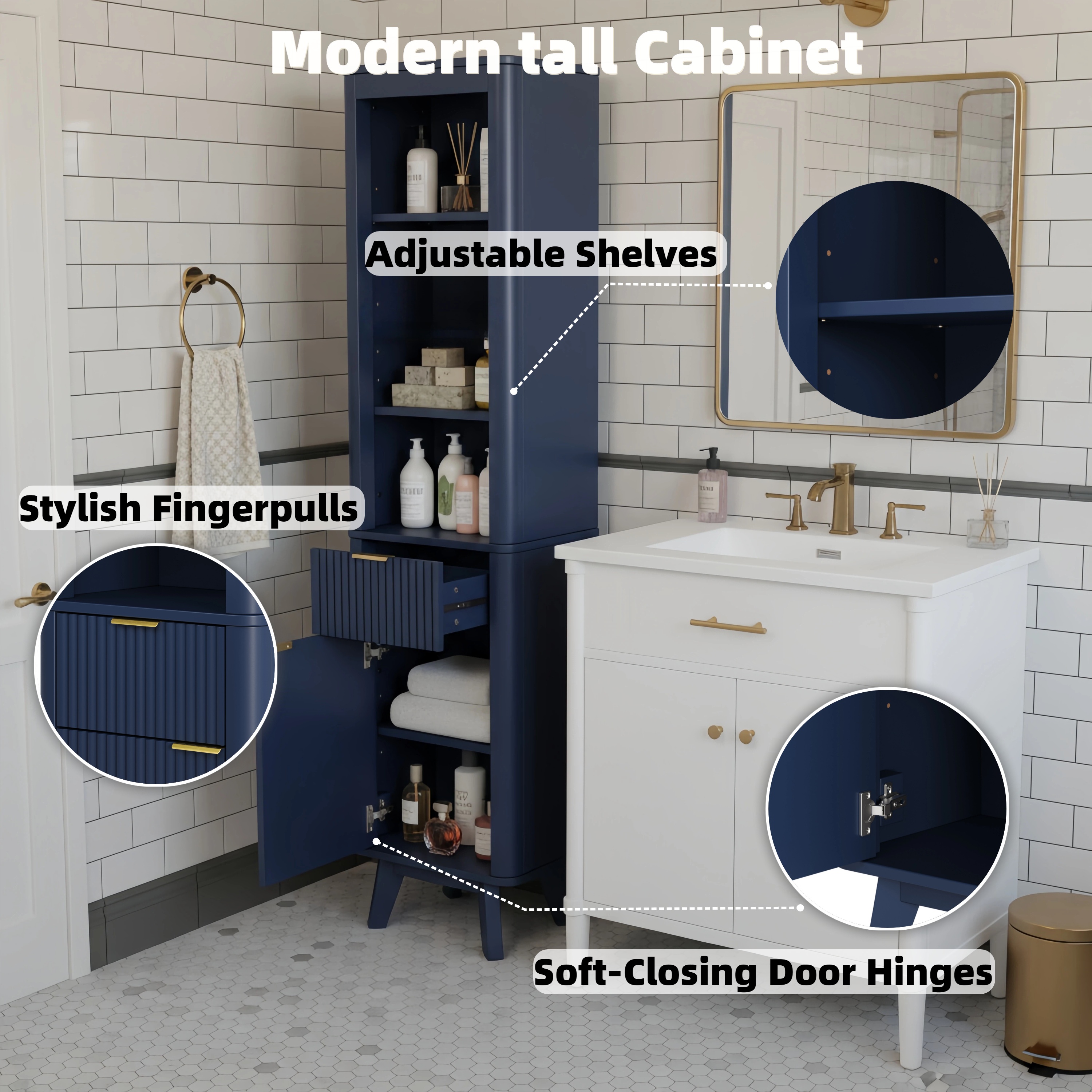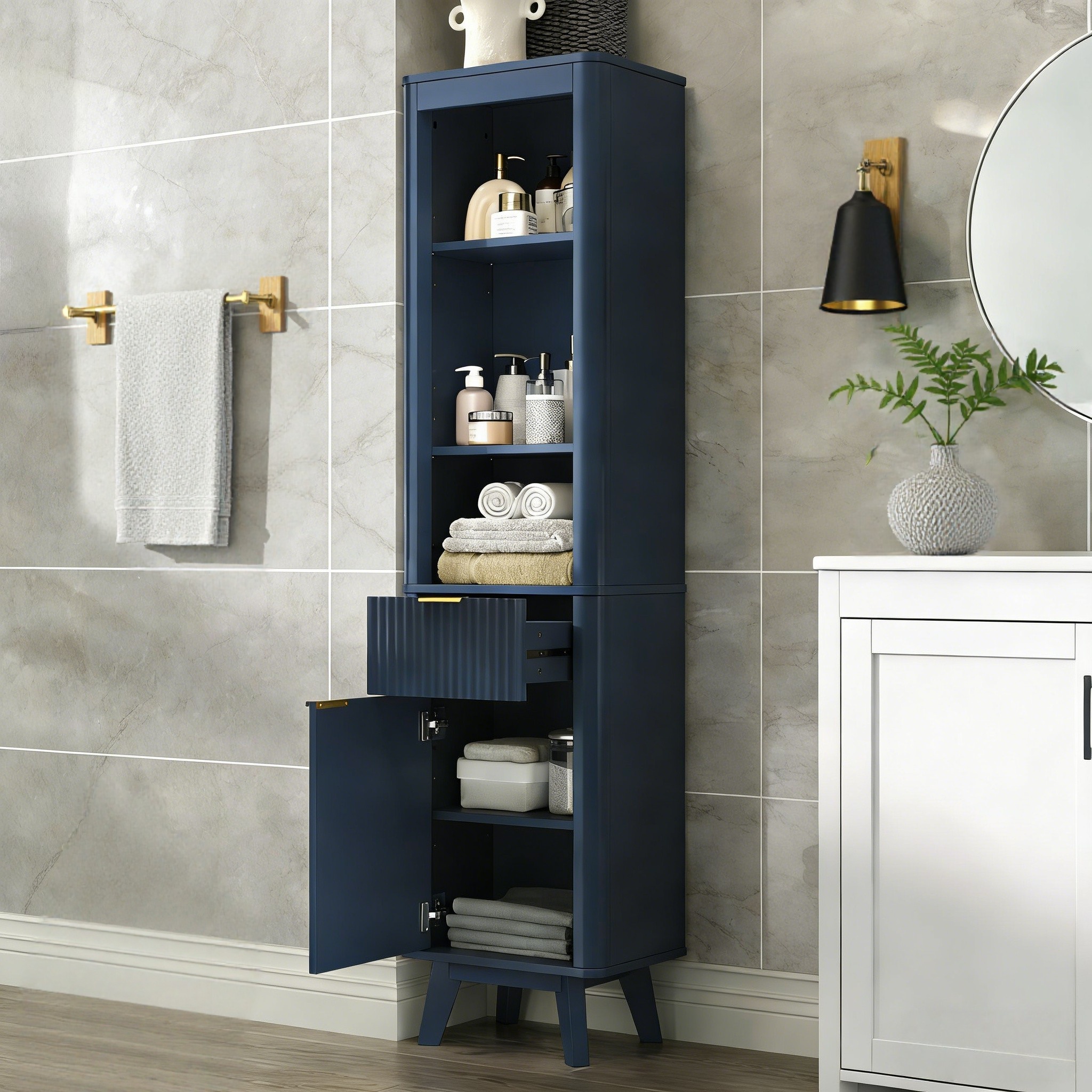 NH-ECHO 68" H Tall Bathroom Storage Cabinet with Adjustable Shelves and One Drawer & Door, Storage Cabinet for Bathroom, Living Room, Entryway & Kitchen, Blue. Designed as a practical decorative lighting piece that supports everyday use while helping complete the look of the space. Material: Particle Board+MDF. Product dimensions and weight: length 40.35, width 15.75, height 9.06, weight 54.45.