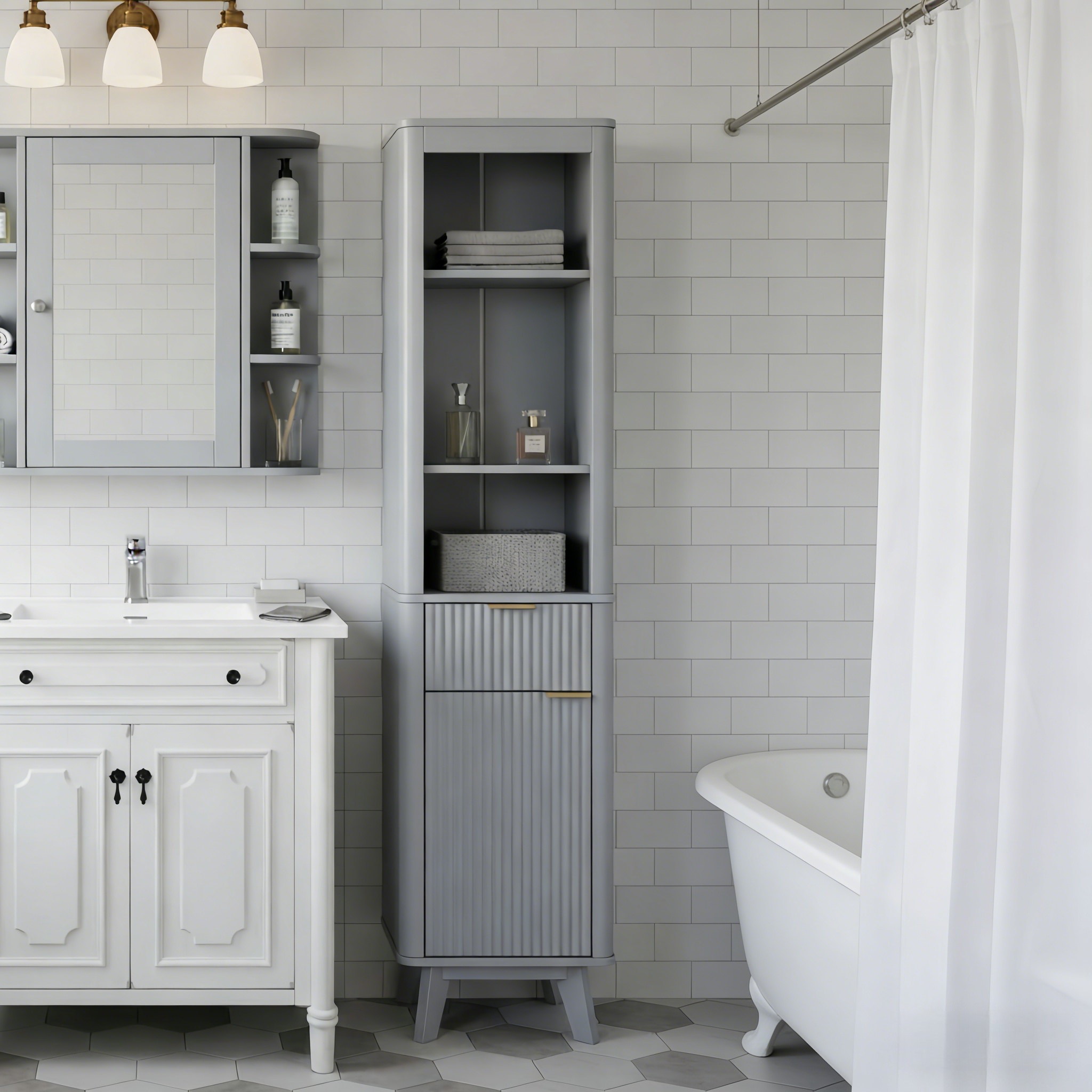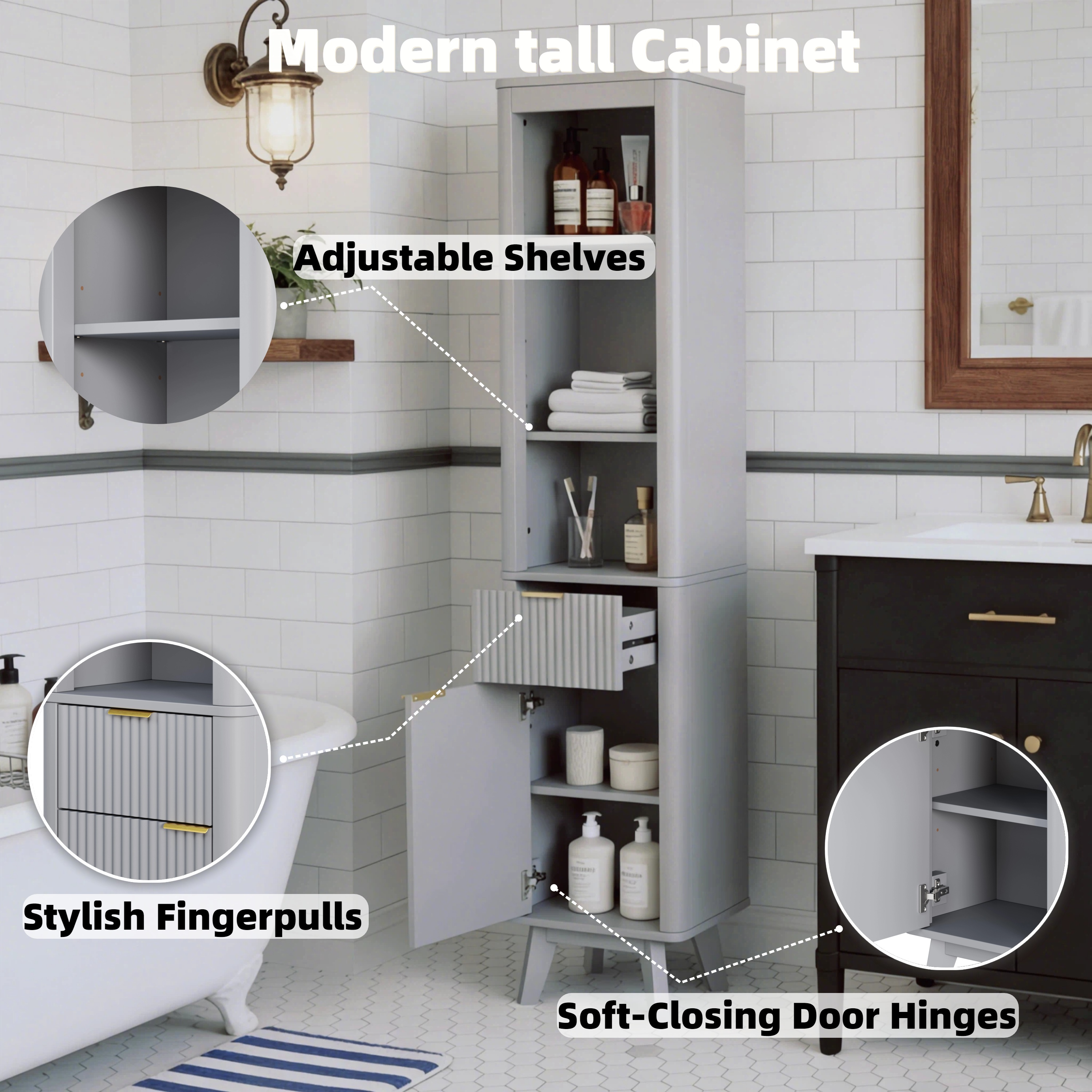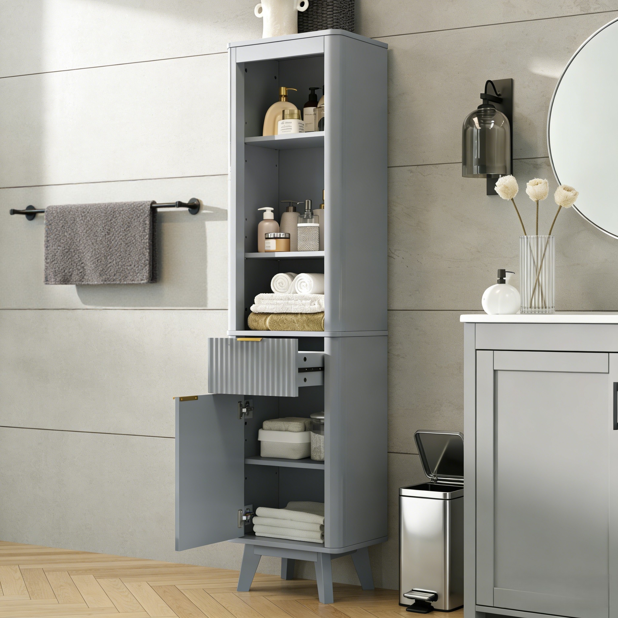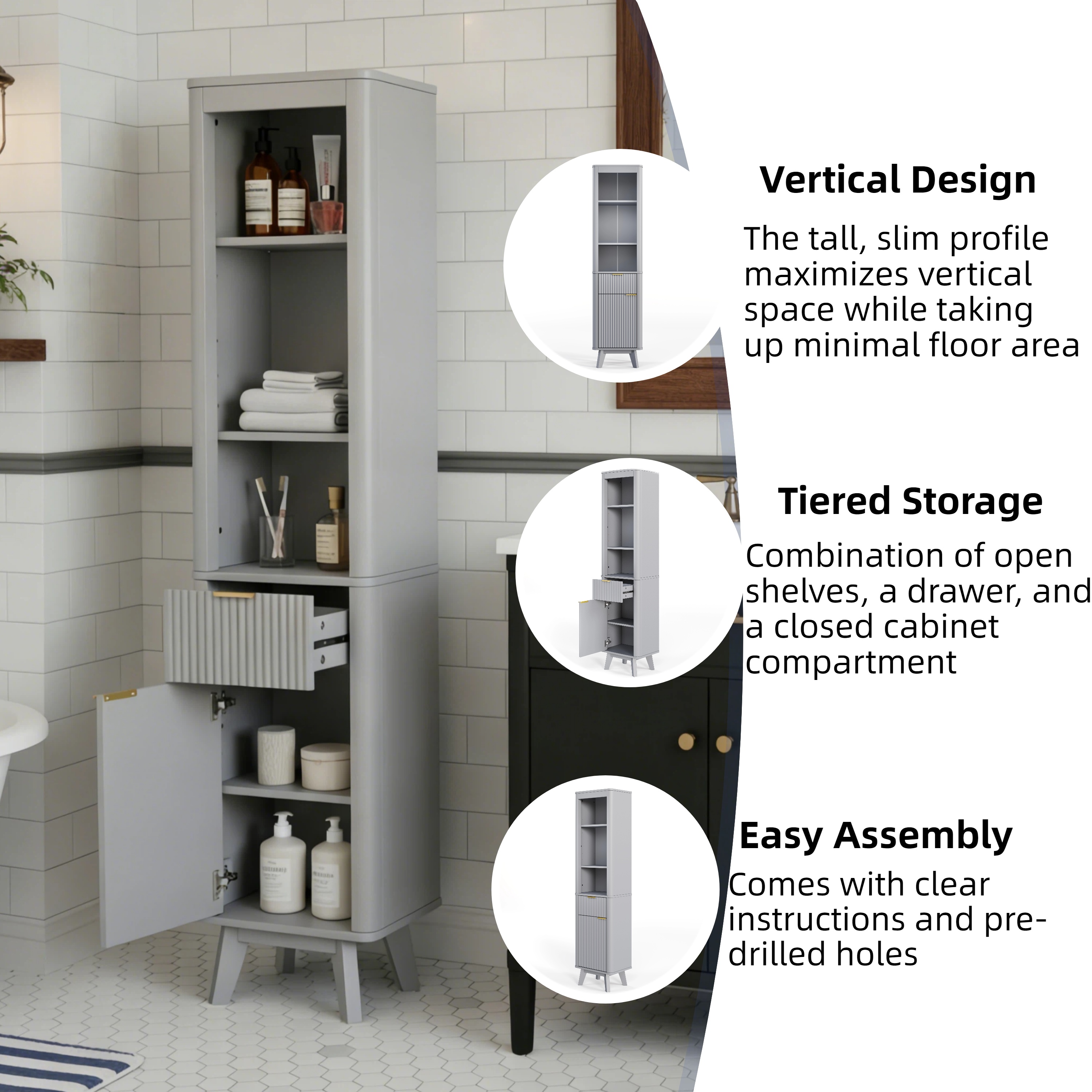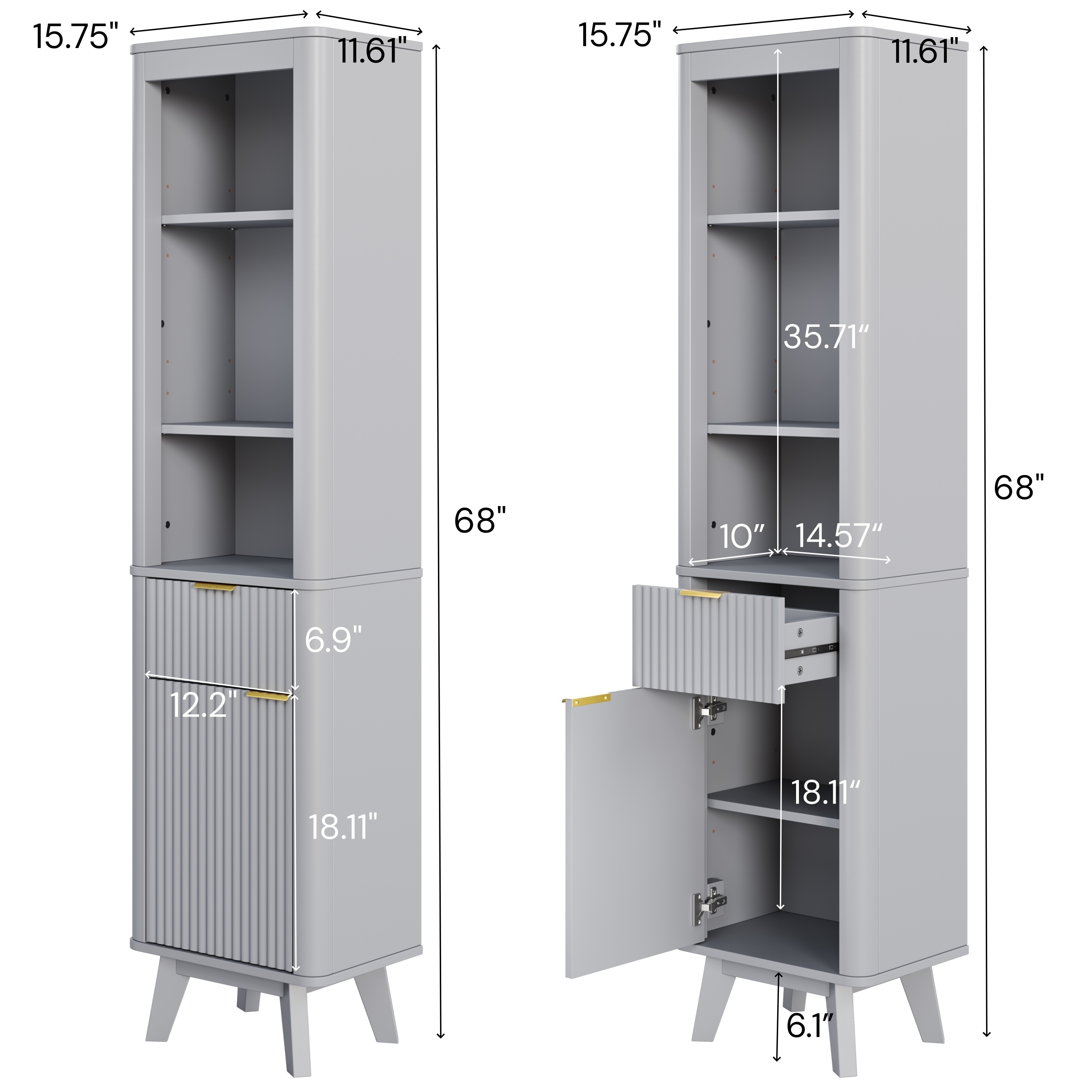 NH-ECHO 68" H Tall Bathroom Storage Cabinet with Adjustable Shelves and One Drawer & Door, Storage Cabinet for Bathroom, Living Room, Entryway & Kitchen, Gray. Designed as a practical decorative lighting piece that supports everyday use while helping complete the look of the space. Material: Particle Board+MDF. Product dimensions and weight: length 40.35, width 15.75, height 9.06, weight 54.45.