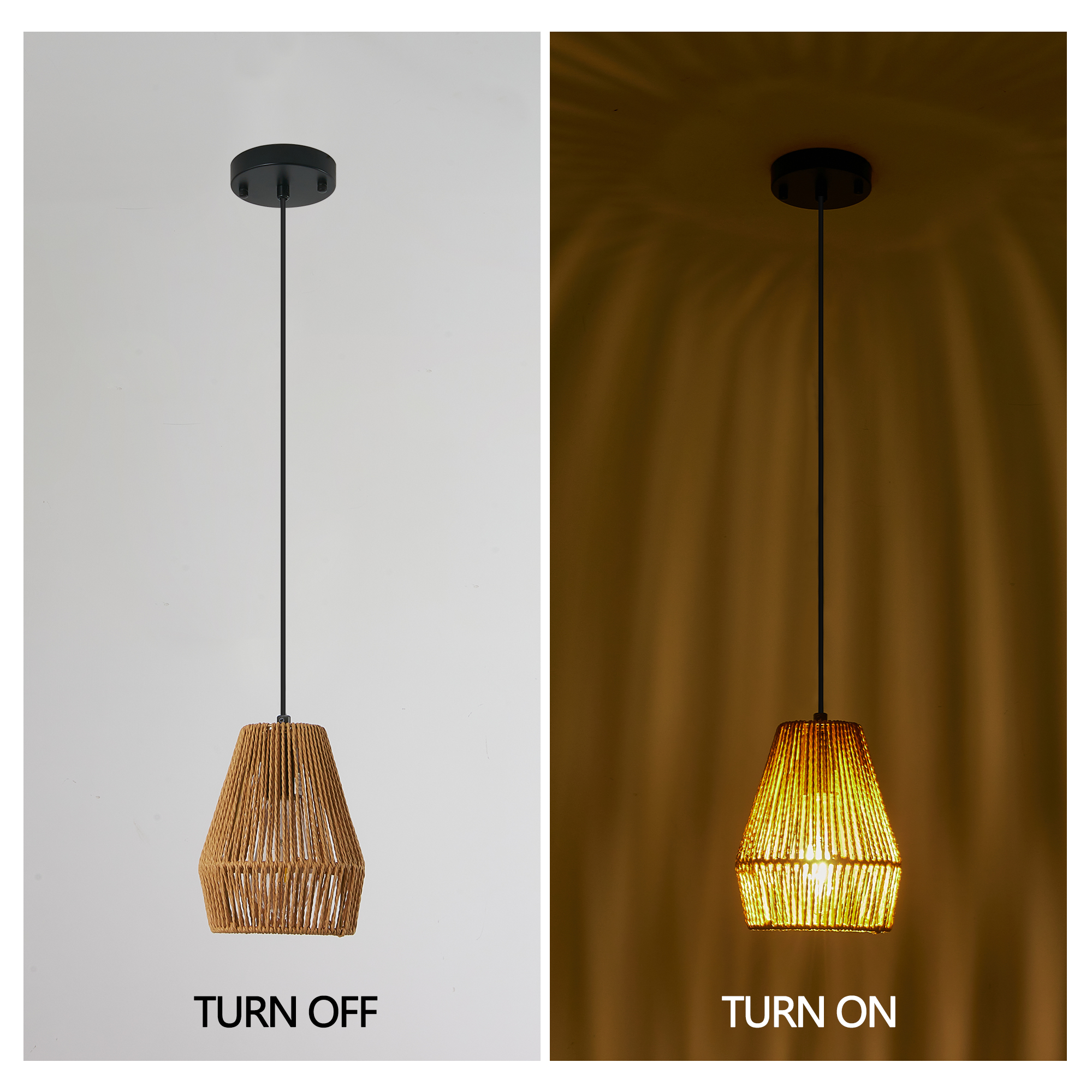 NEOSGO 7" Set of 3 Rustic Hemp Rope Pendant Light, Handcrafted Farmhouse Hanging Light Fixture, Adjustable Height Ceiling Lamp for Kitchen Island, Dining Room, or Living Room, Natural Woven Design (No Bulbs) is intended to deliver focused overhead light while also strengthening the decorative identity of the space. Pendant-style fixtures are especially useful over kitchen islands, sinks, breakfast areas, counters, and compact dining spaces where customers want targeted light and a visible design element. Based on the product presentation, it suits interiors that need a more finished overhead feature without overwhelming the rest of the room. It is a good option for shoppers who want everyday function together with a clean decorative upgrade. Overall size is approximately 17.3 x 7.1 x 10.6 inches with a listed weight of 5.1. The current listing includes 12 product images, which help clarify the product shape, proportions, and visual placement in a real room setting.