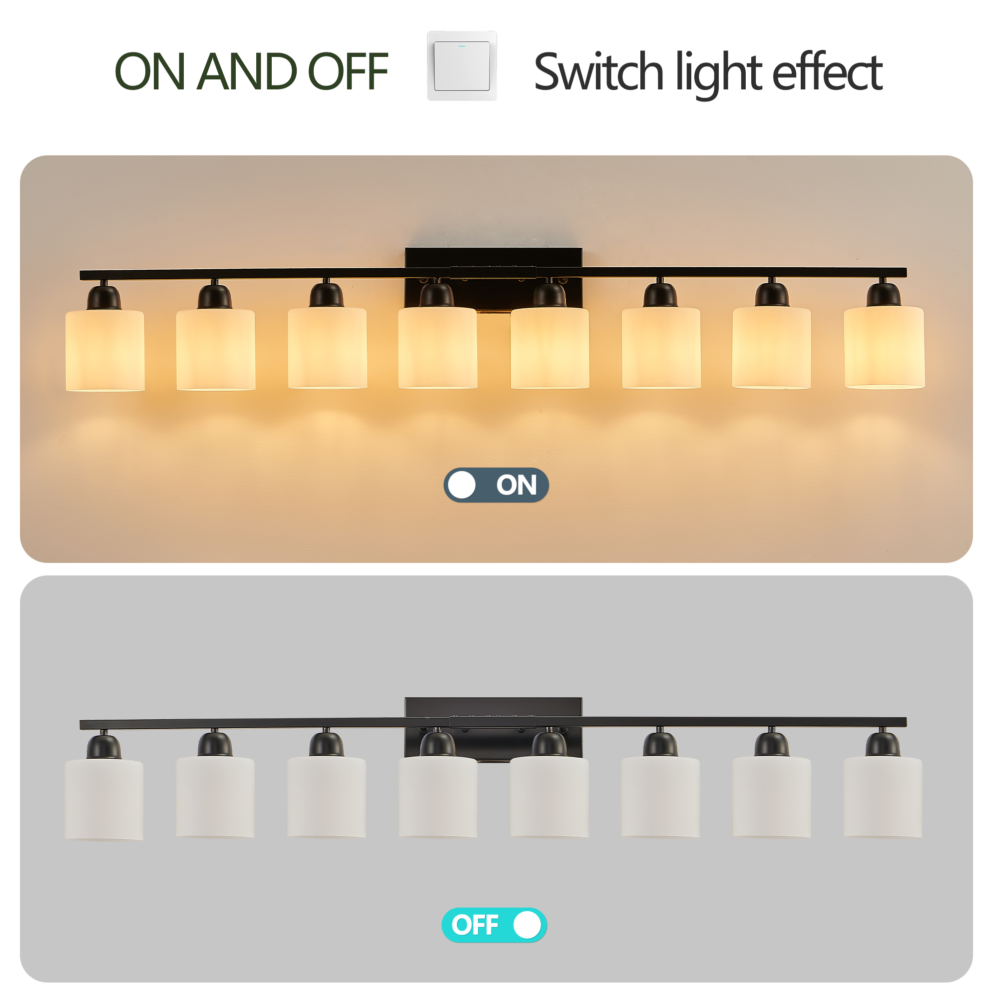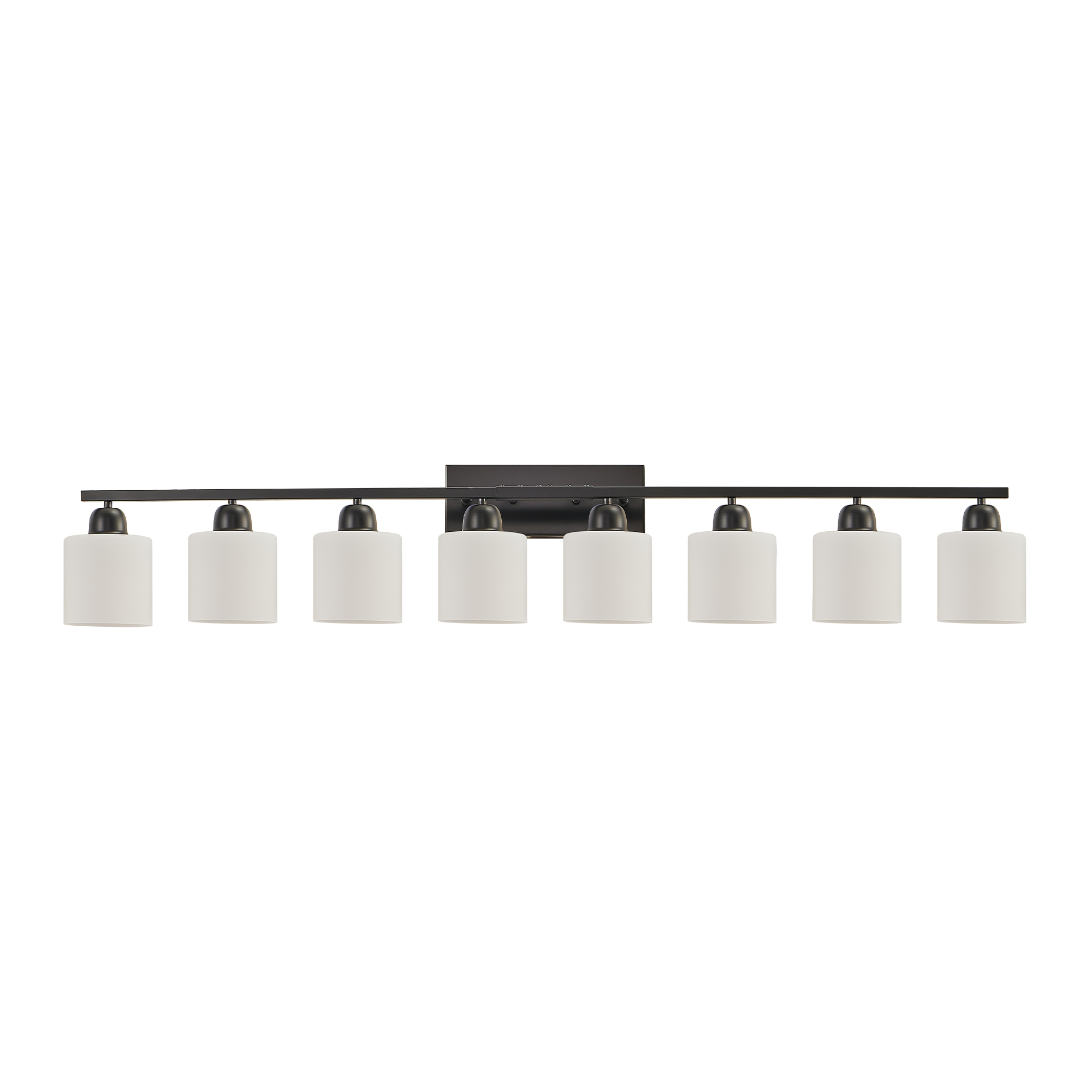 8-Light Bathroom Light Fixtures Over Mirror, 52inch Modern Matte Black Vanity Lights with White Frosted Glass Shade, Bathroom Wall Lamp Sconces for Mirror Bedroom, Living Room Hallway