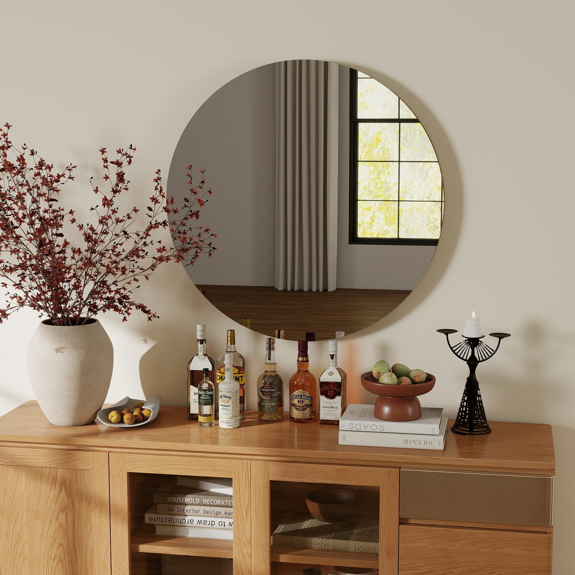 80cm bathroom mirror, round mirror, wall mount