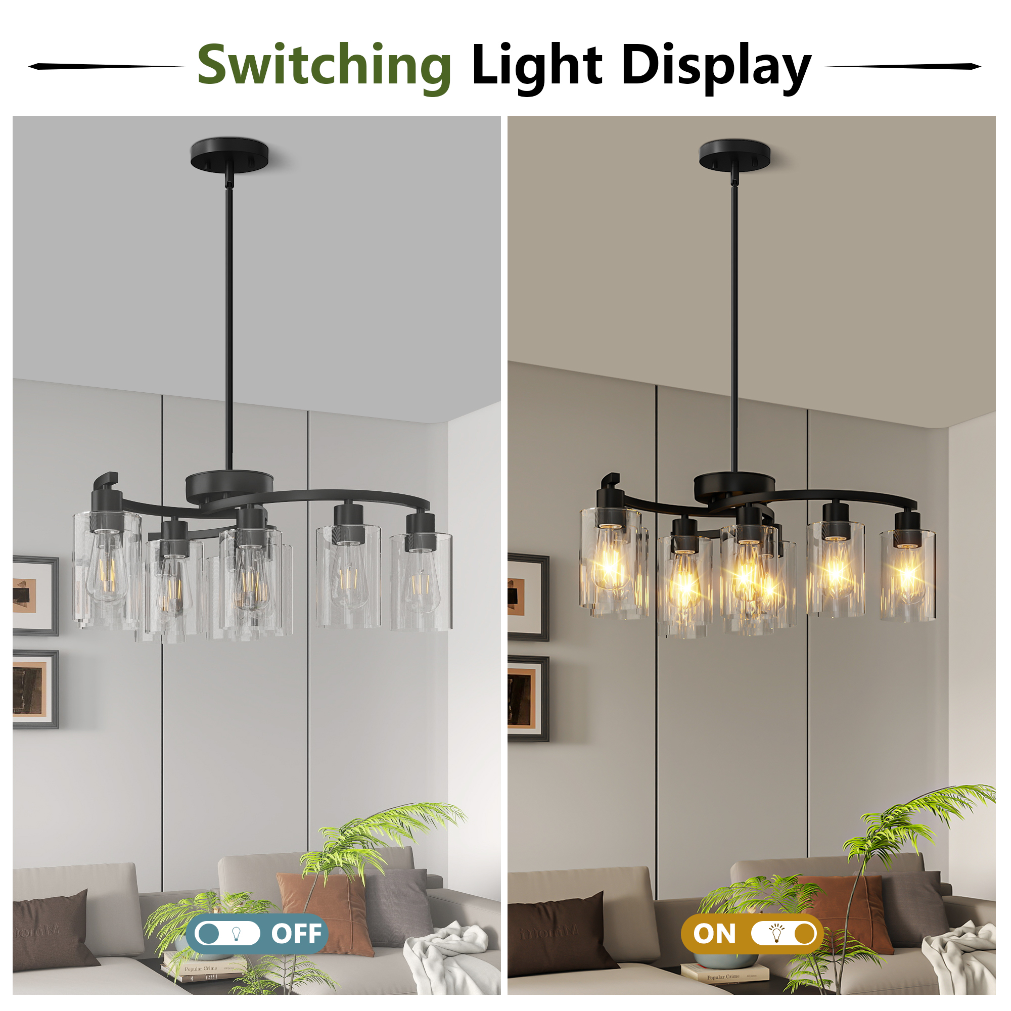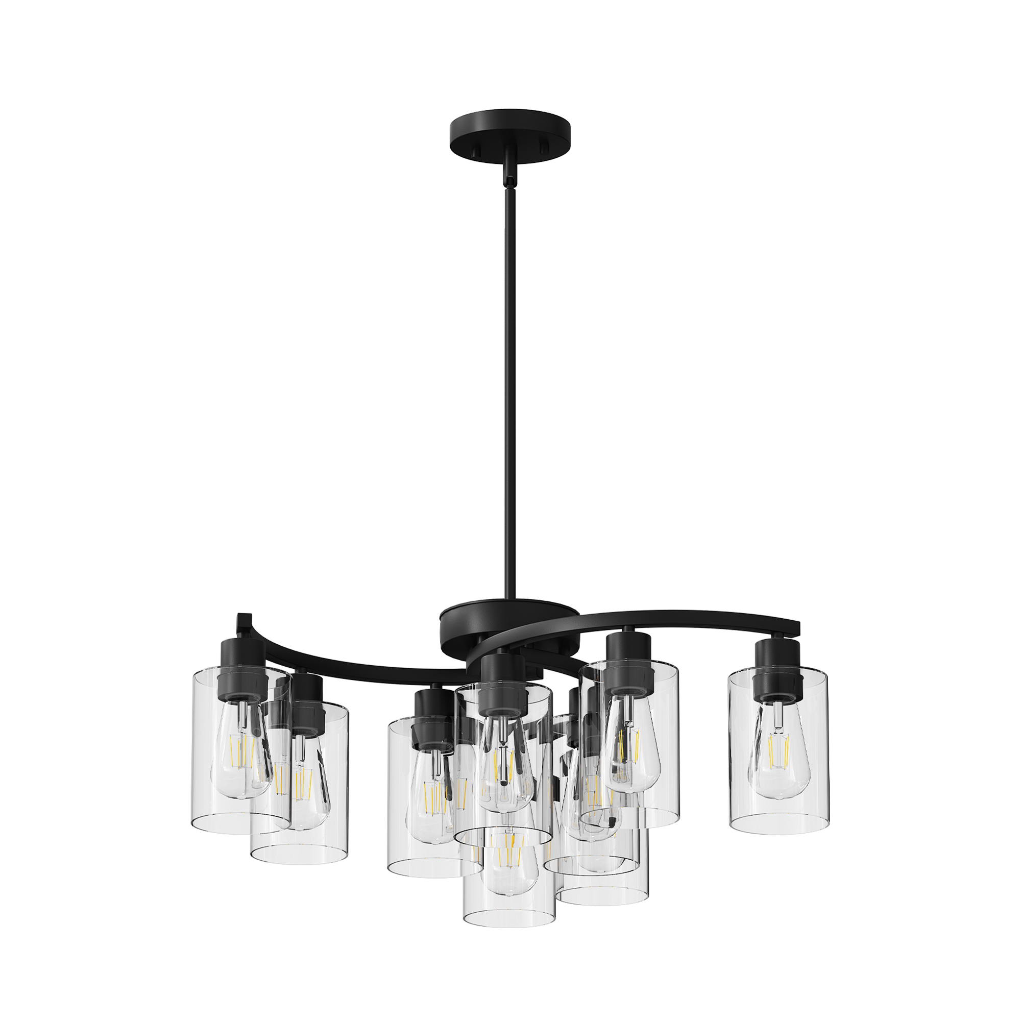 NEOSGO 9-Light Black Modern Chandeliers for Dining Room, Adjustable Height Farmhouse Kitchen Island Lighting, Industrial Hanging Light Fixtures for Living Room Bedroom, Clear Glass Shade is designed to serve as both a lighting source and a decorative focal point within the room. This type of fixture is especially effective above dining tables, in entryways, and in living spaces where the customer wants overhead light with stronger visual impact. The product presentation suggests a style-driven fixture that helps define the ceiling area and gives the space a more elevated, finished character. It is a strong fit for customers who want lighting that contributes to the overall look of the room rather than functioning as a utility piece alone. Overall size is approximately 26.57 x 24.61 x 8.27 inches with a listed weight of 13.6. The current listing includes 8 product images, which help clarify the product shape, proportions, and visual placement in a real room setting.