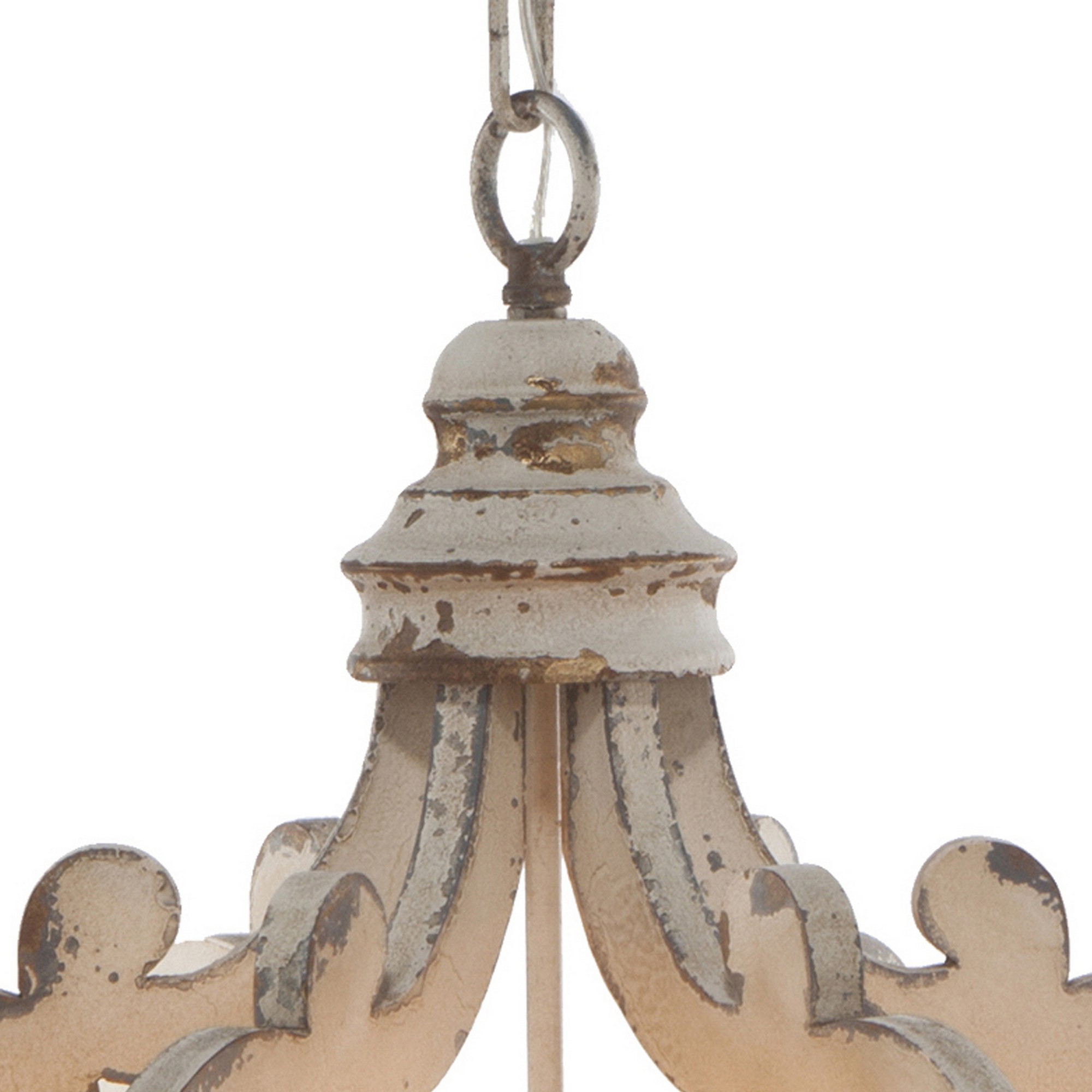Aki 21 Inch 6 Light Chandelier, Carved Wood Frame, Classic, Vintage, White