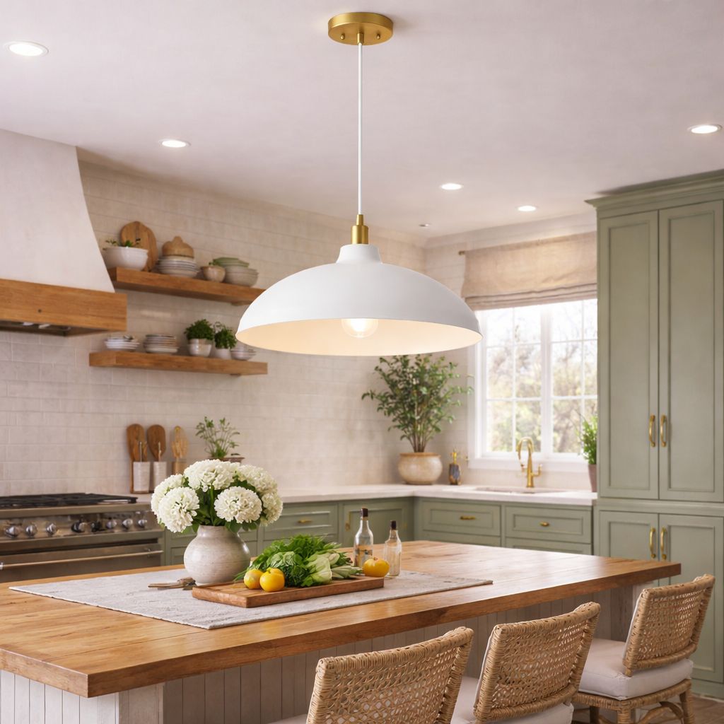 A practical guide to sizing, spacing, and hanging pendant lights over a kitchen island.