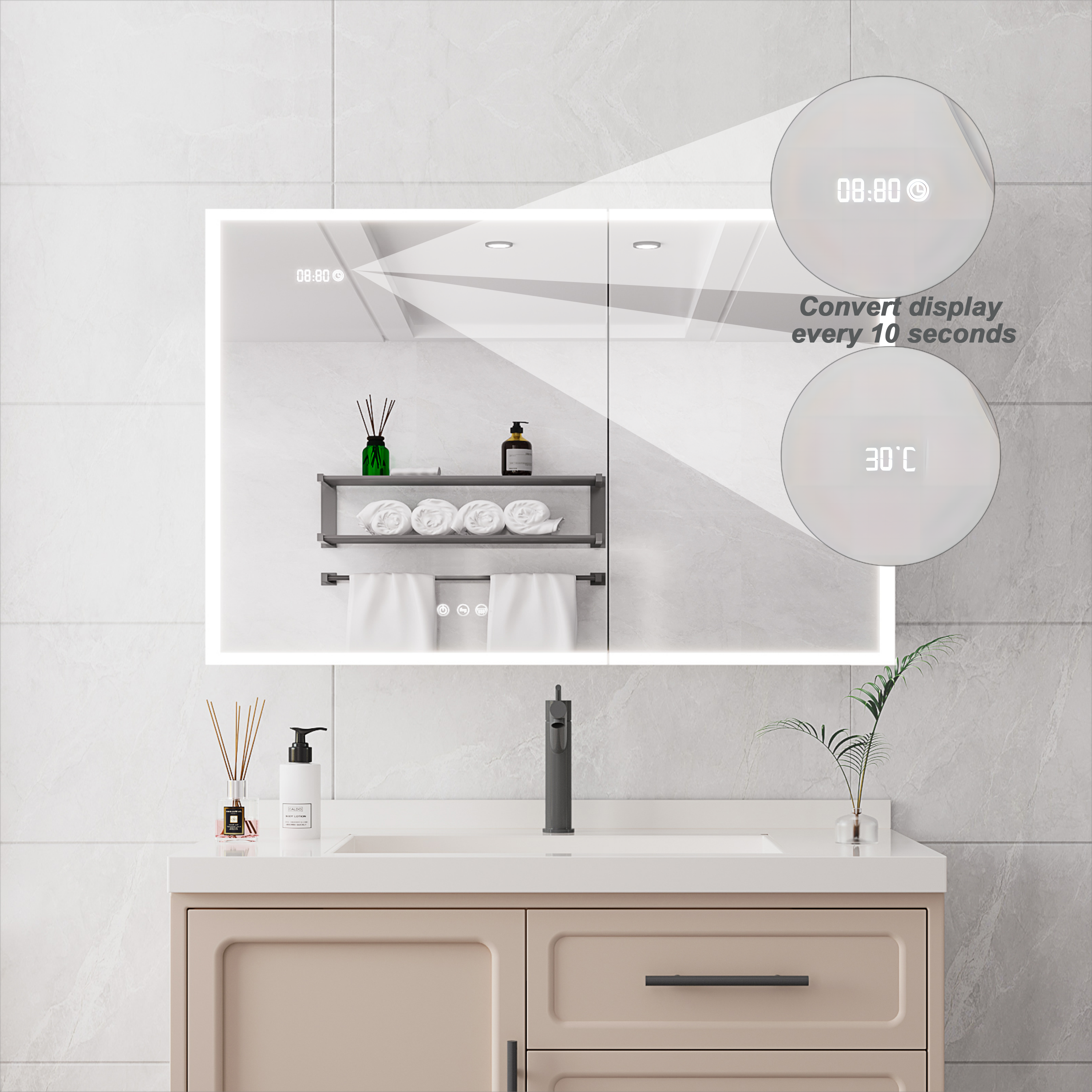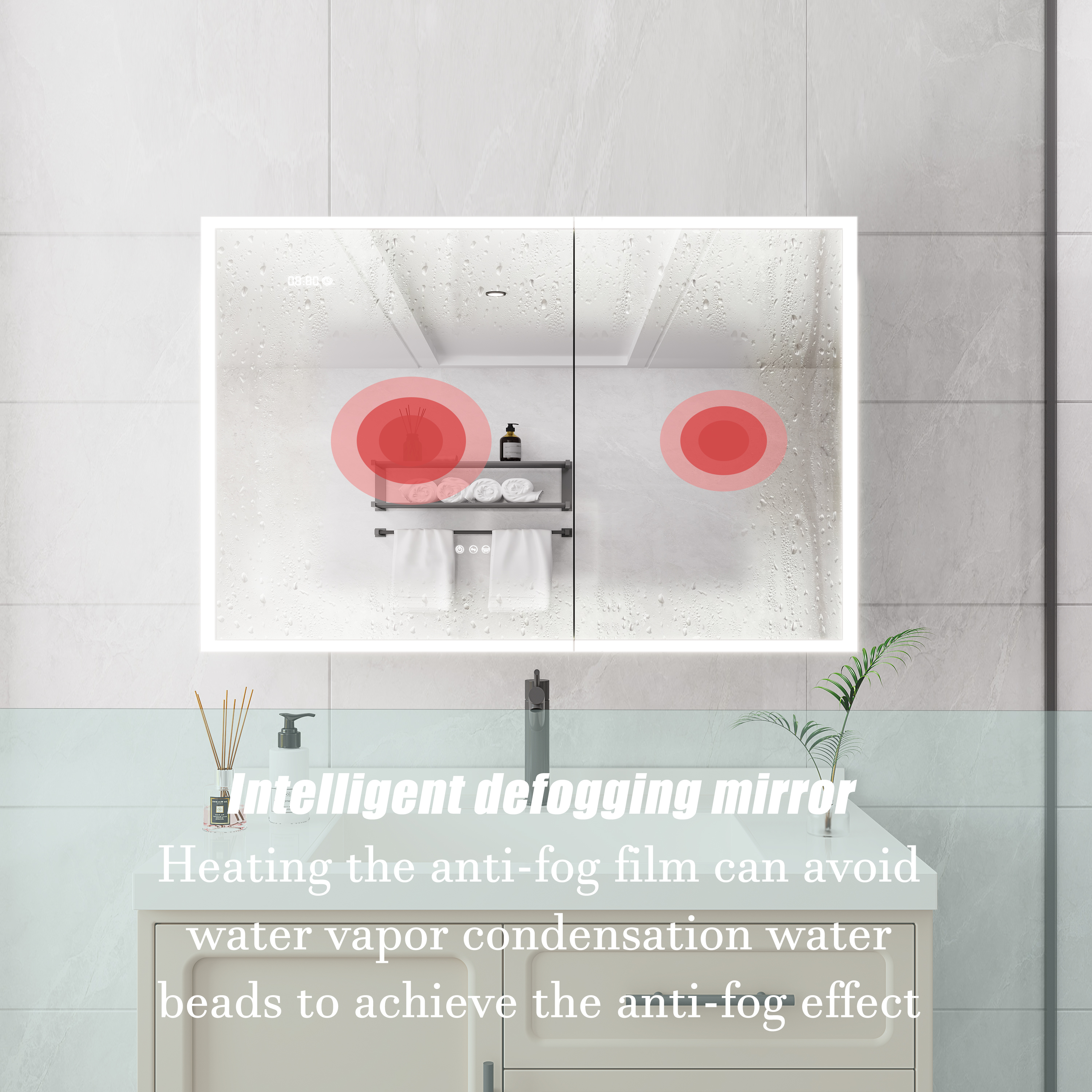 W1738 Bathroom Medicine Cabinet with Lights, 36×24 Inch LED Medicine Cabinet with Mirror, Double Door Lighted Medicine Cabinet with Defogger, Dimmer, Clock & Temp Display, 2 Outlets & USB Ports. Designed to provide practical task lighting around a vanity or bathroom mirror while supporting everyday grooming routines. Material: Aluminum. Product dimensions and weight: length 41, width 29, height 9.6, weight 78.